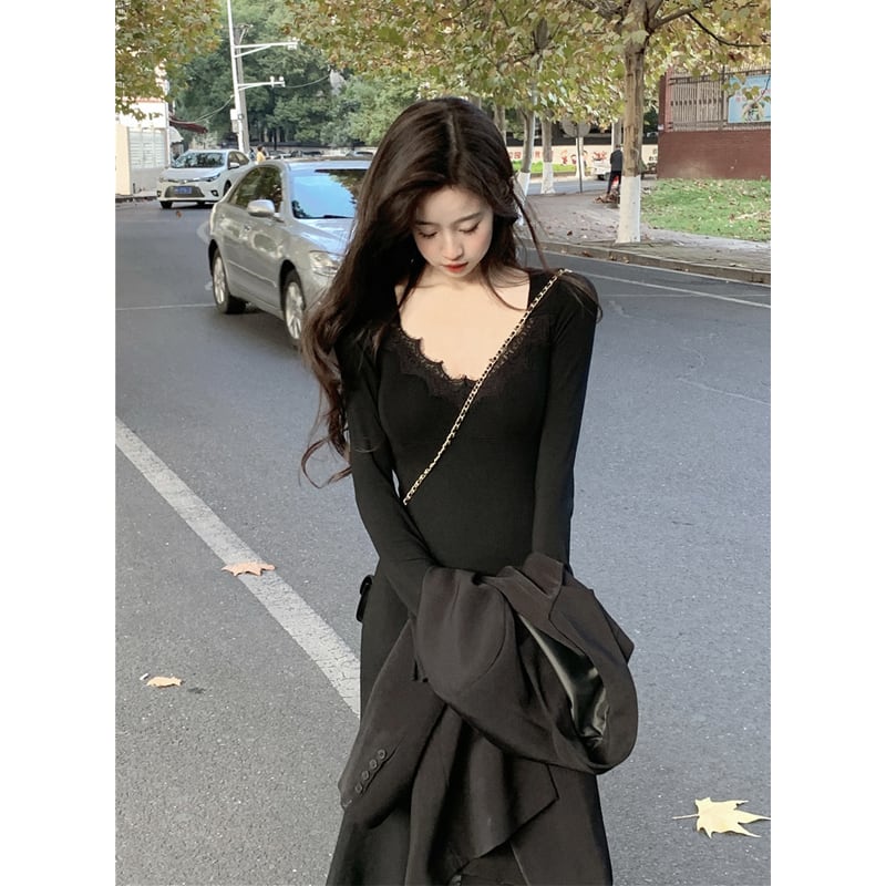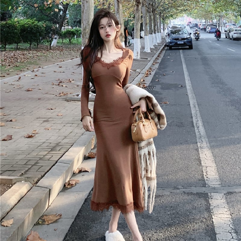 【1.9〜1.15|期間限定・60%OFF】2colors ワンピース レース 薄手 シルエット ライトコーヒー色 ブラック