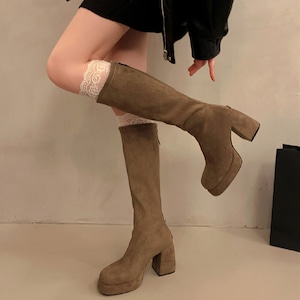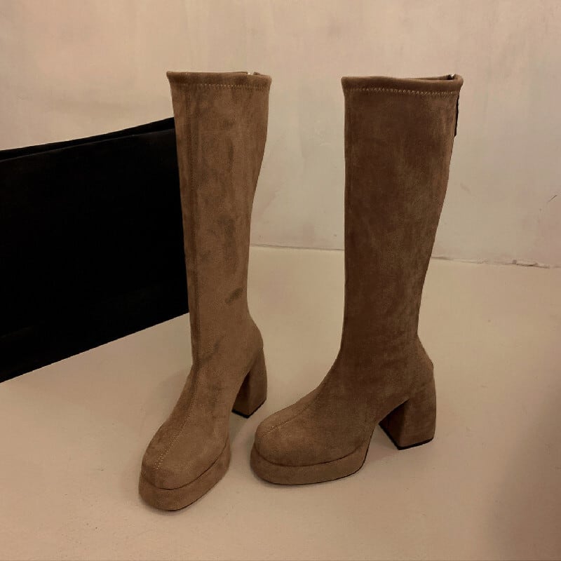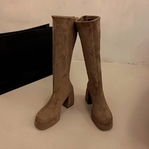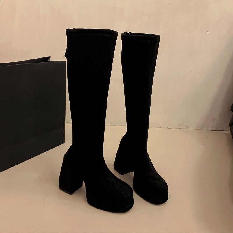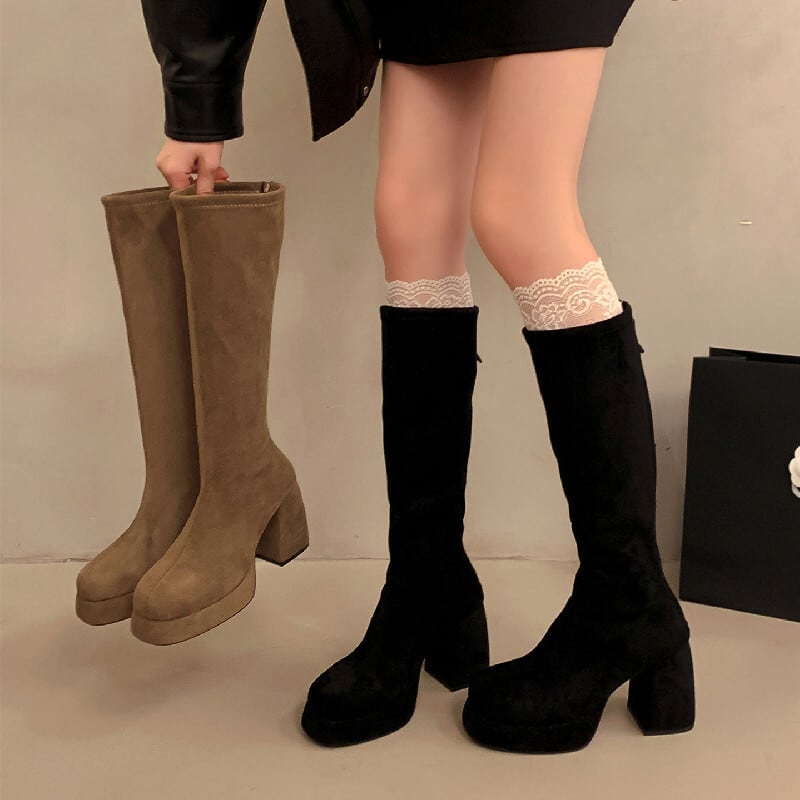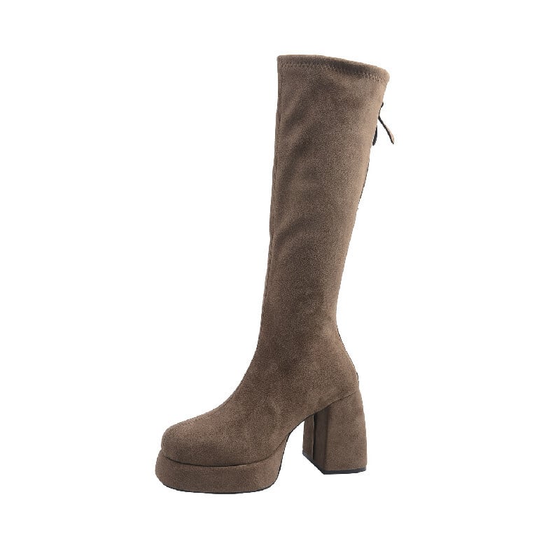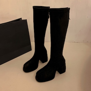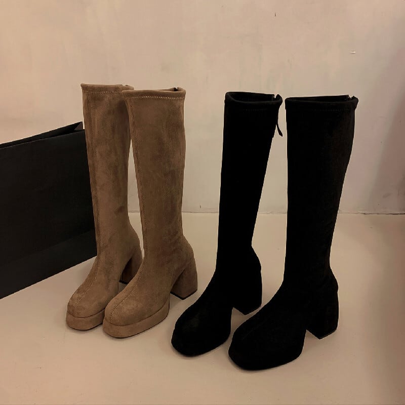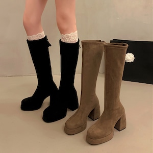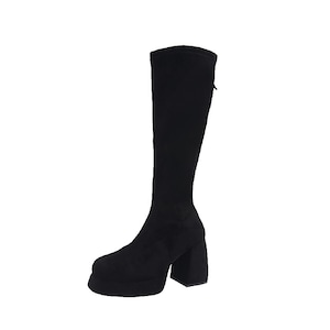 シューズ ロングブーツ 厚底 プラットフォーム 太めヒール ブラック ブラウン 8CM