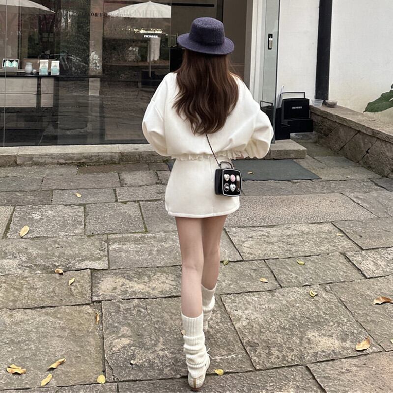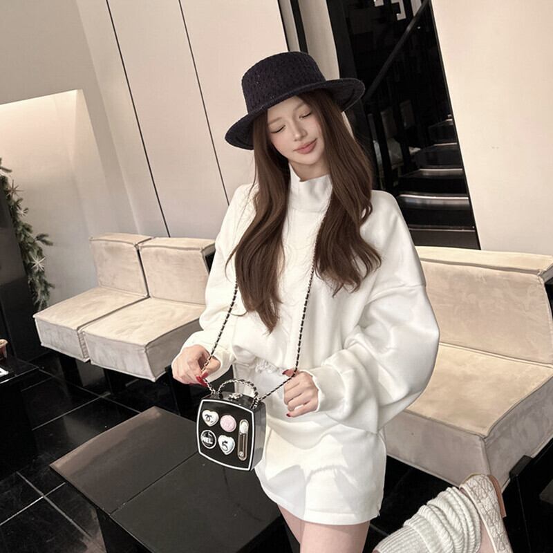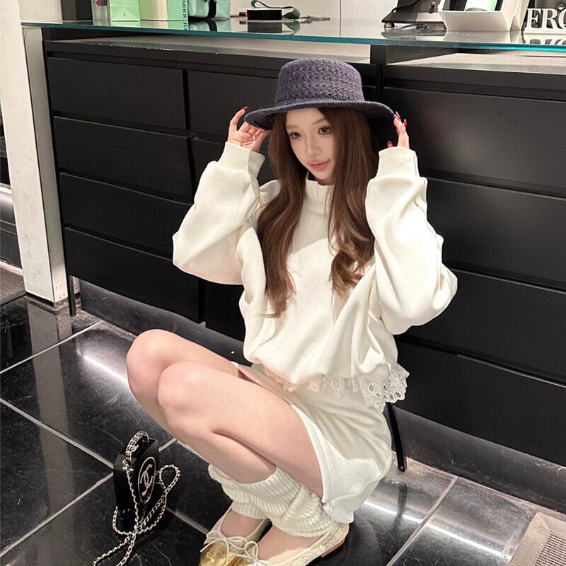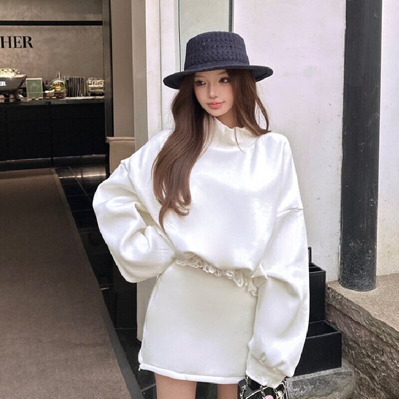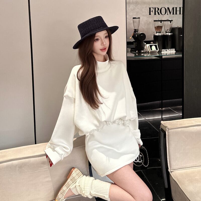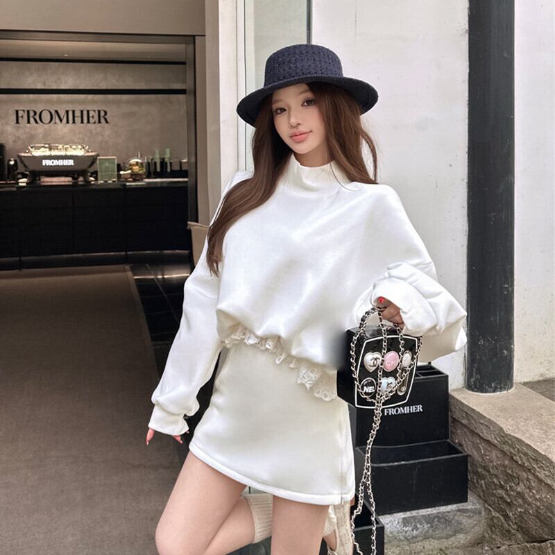 セットアップ ハイネック 長袖 レース付きトップス+ボディコンミニスカート S M L