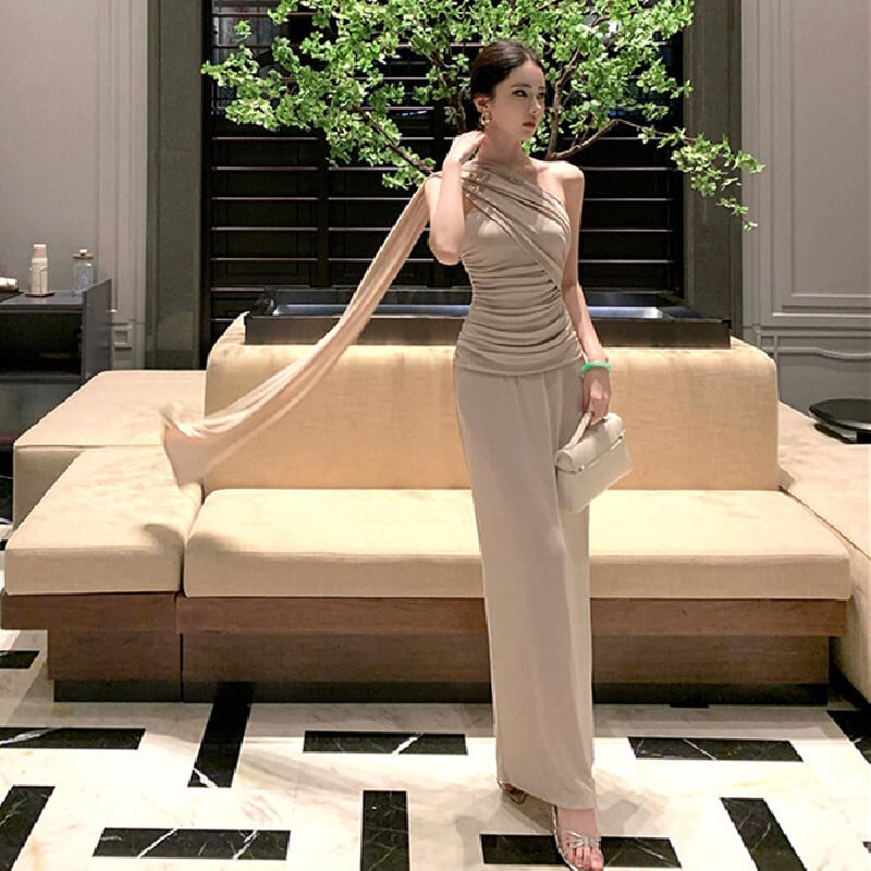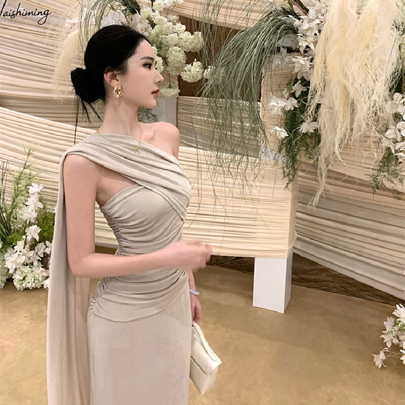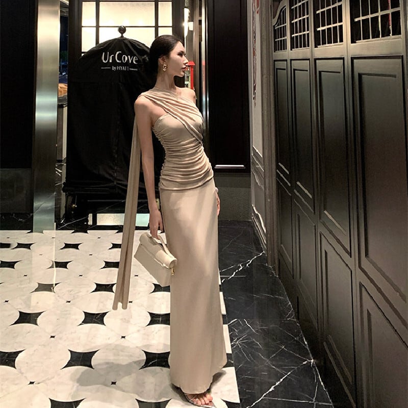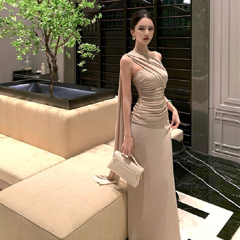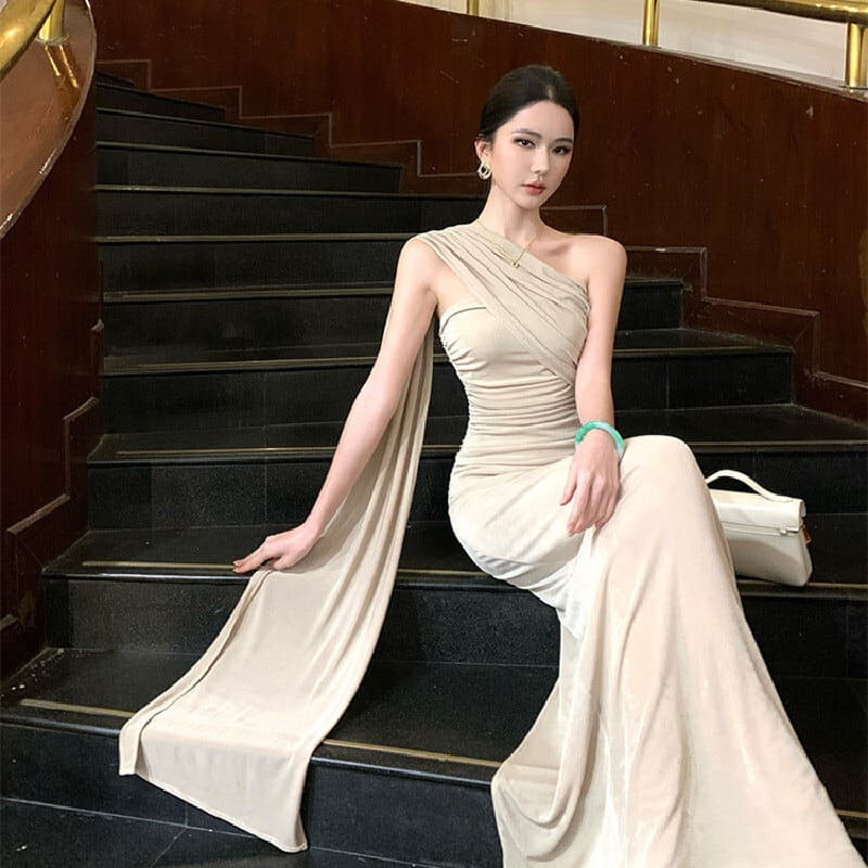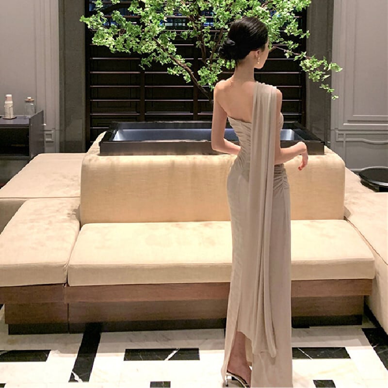ロングドレス 片肩デザイン セクシー リボン マキシドレス 目を奪われる