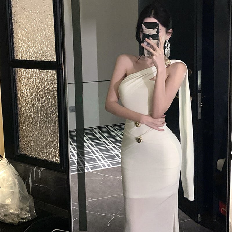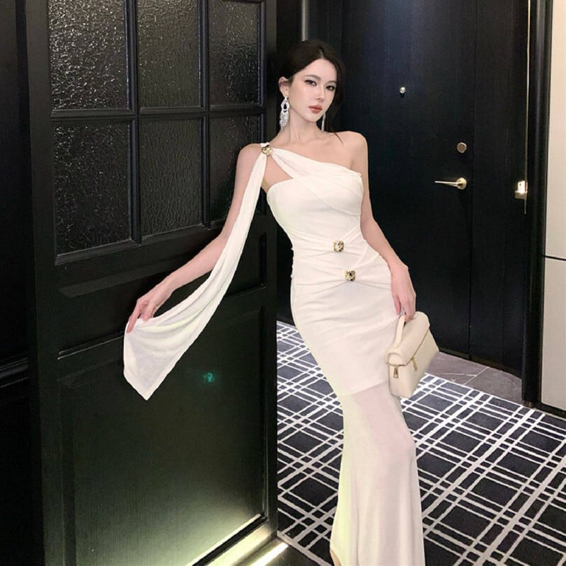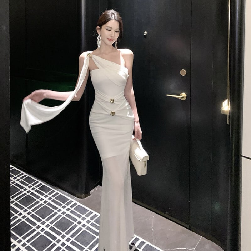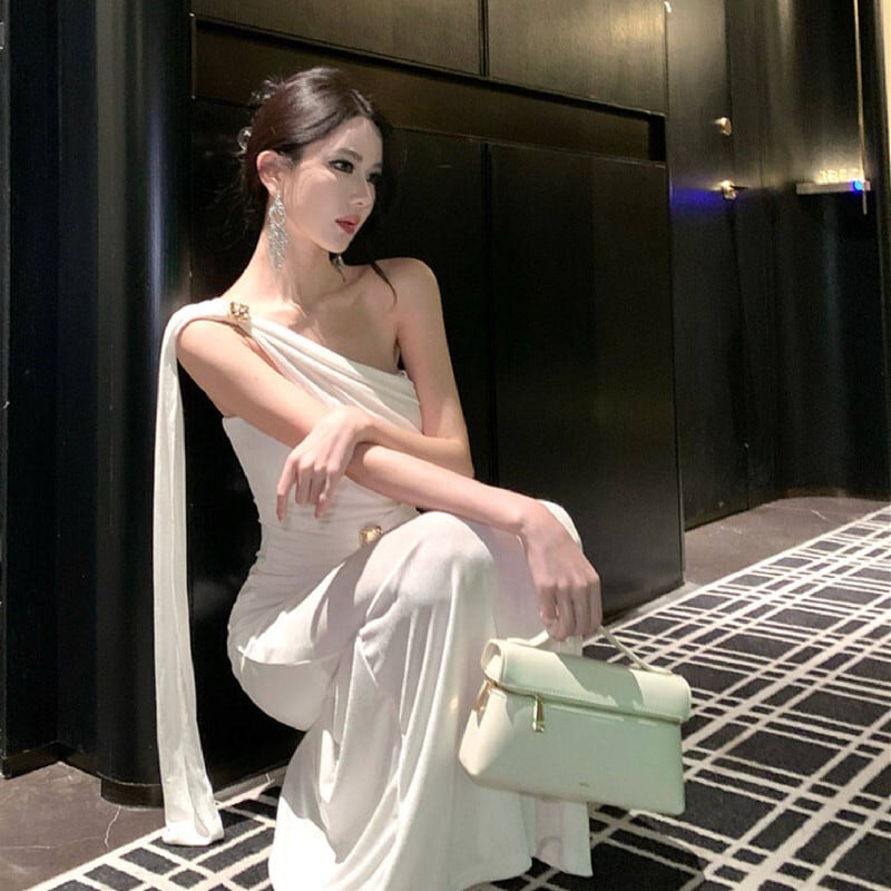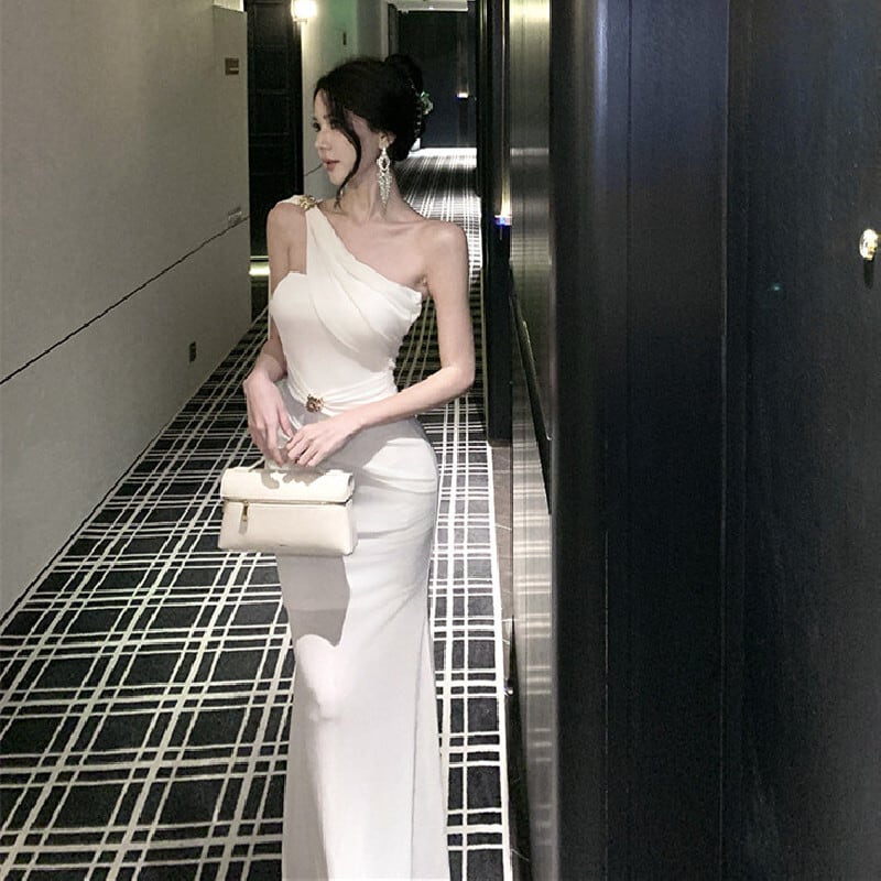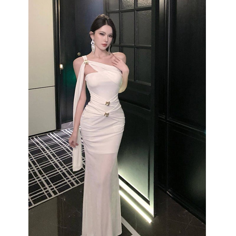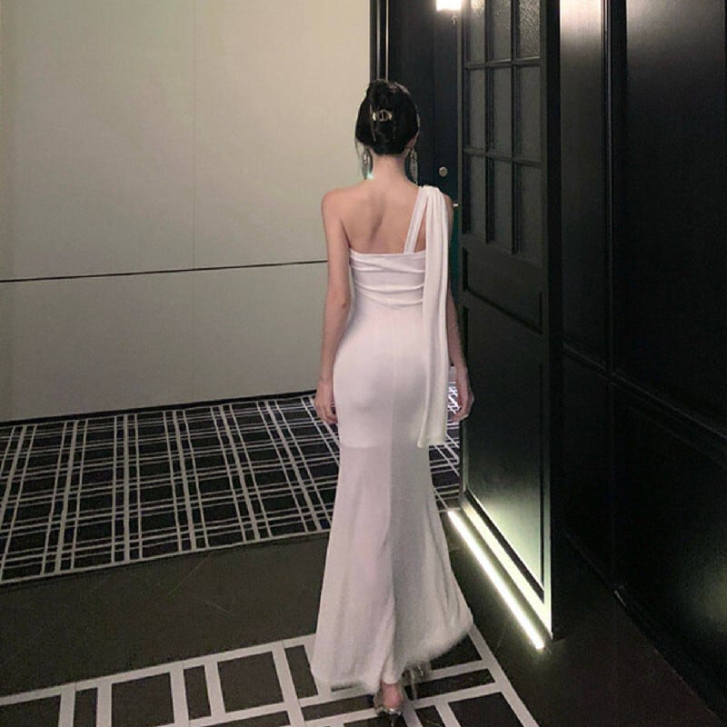 パーティードレス ロング丈 オフショルダー セクシー リボン ホワイト S M L