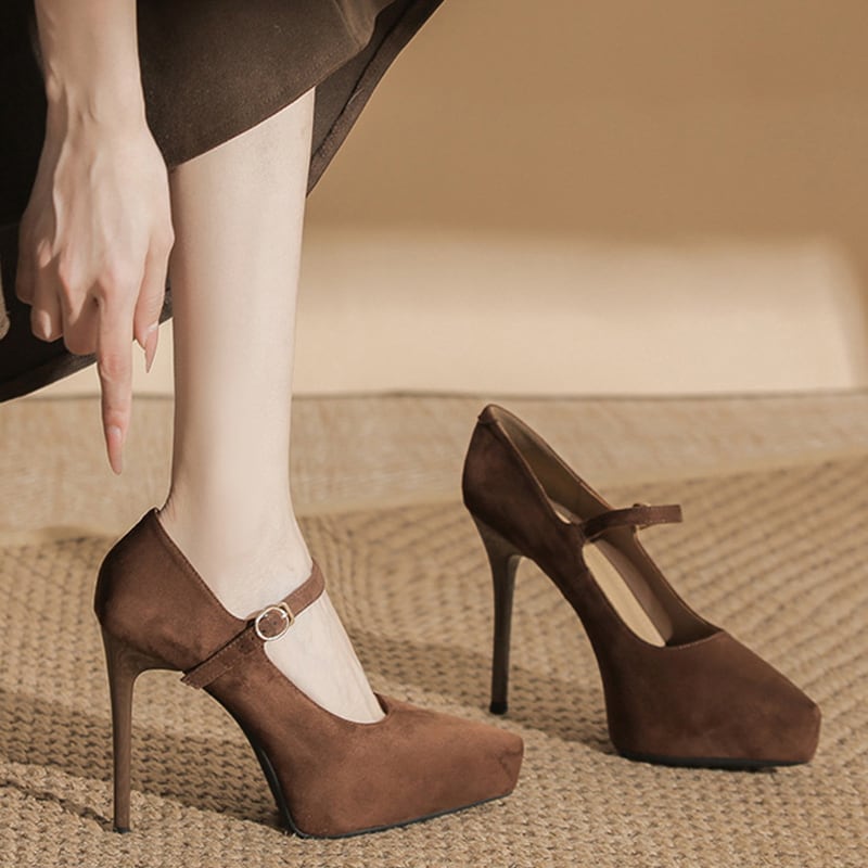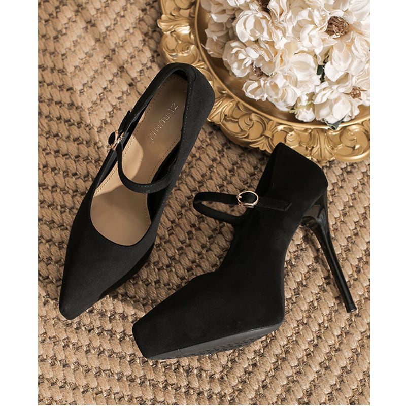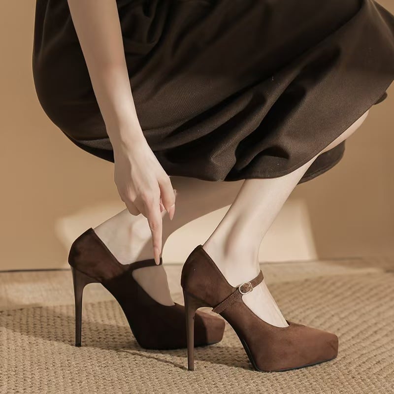 シューズ 2色展開 パンプス ストラップピンヒール コーヒー色 ブラック 12CM