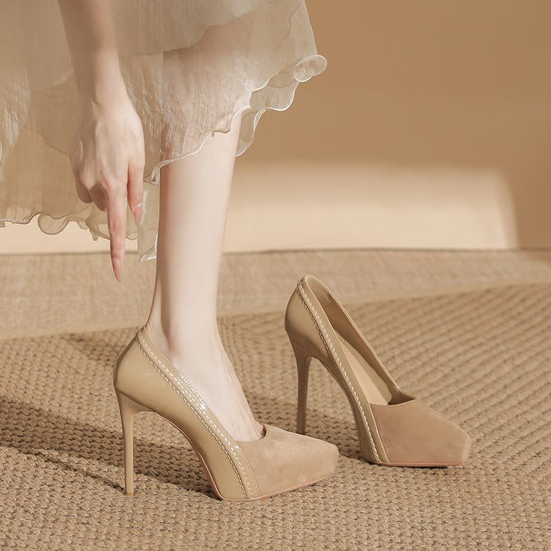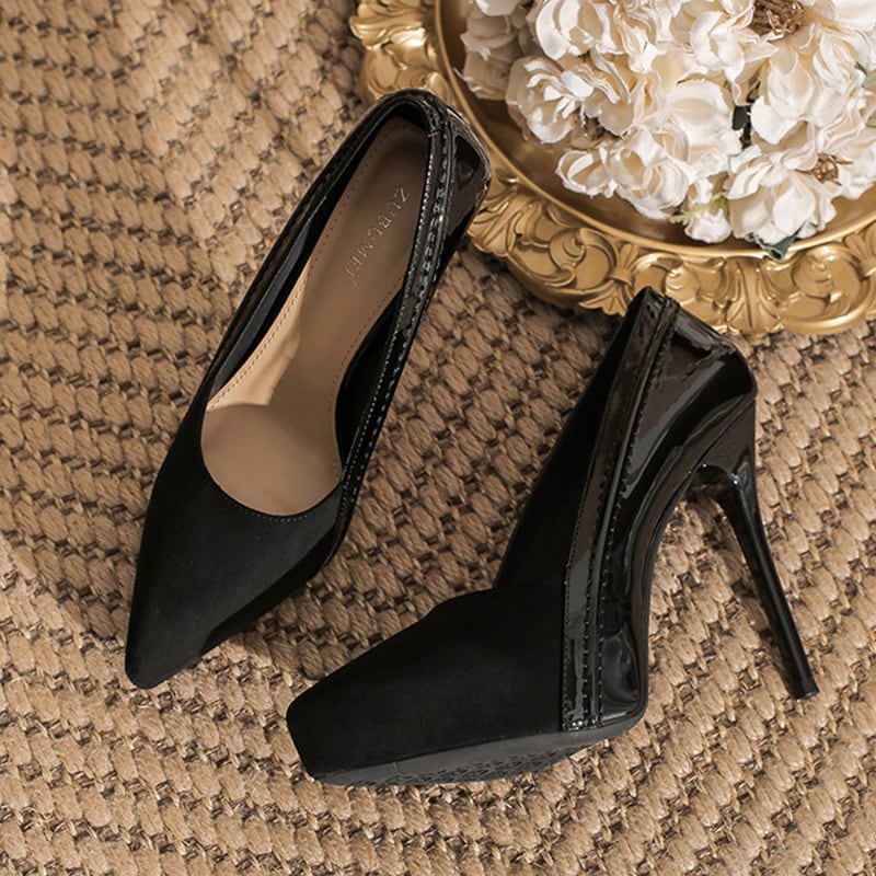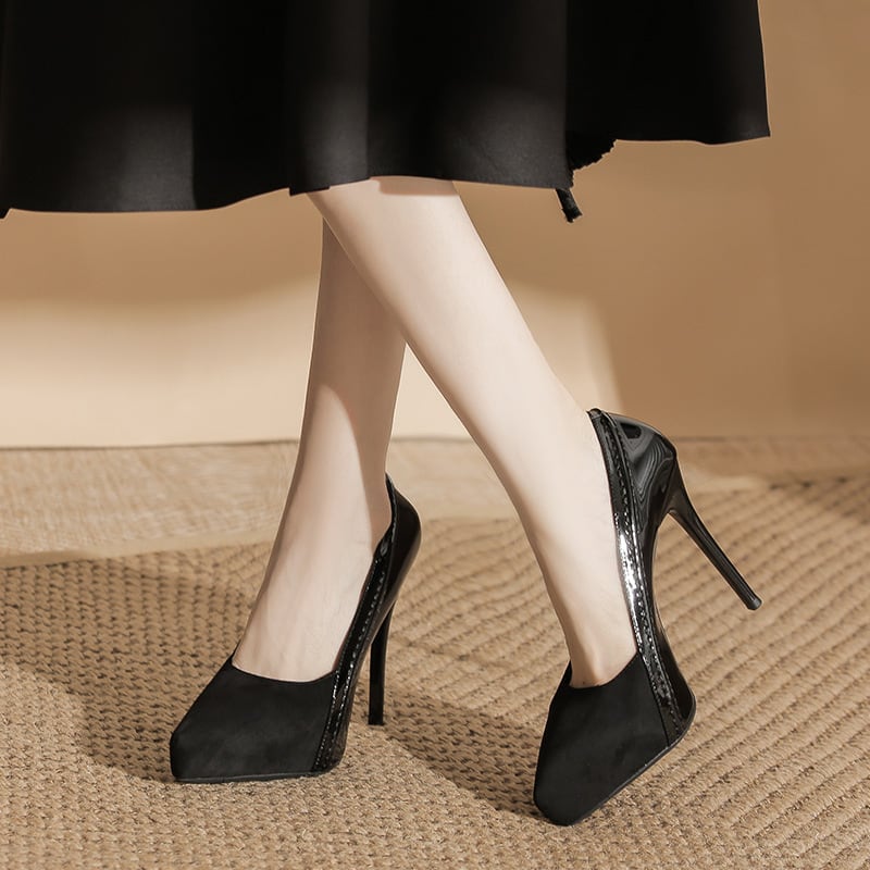 シューズ 2色展開 パンプス スエード シック ライトブラウン ブラック 12CM