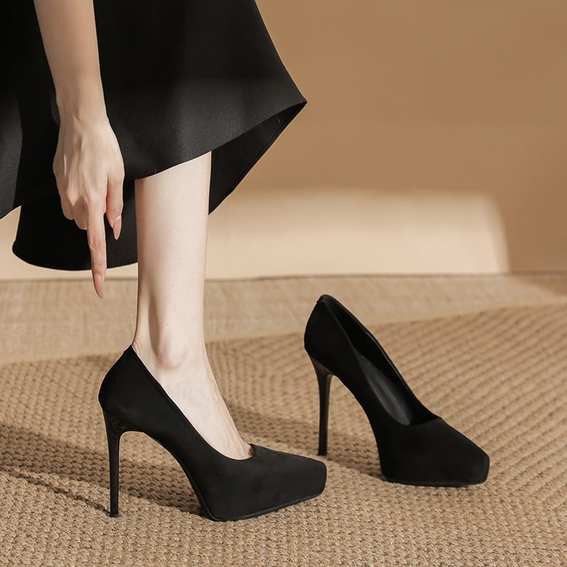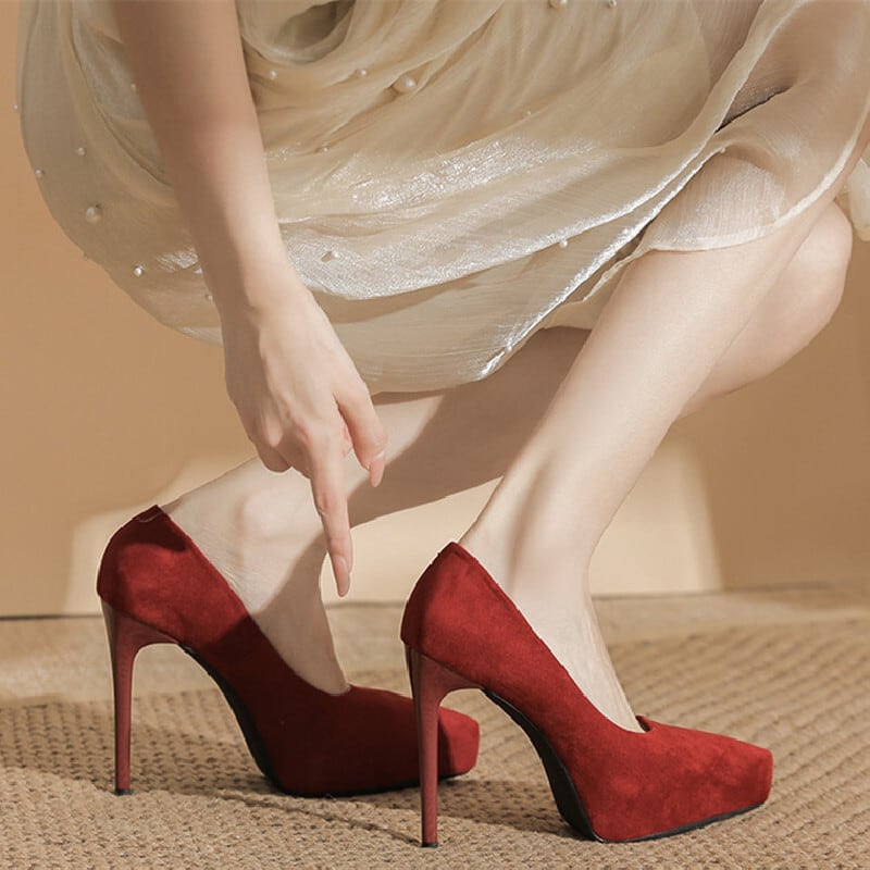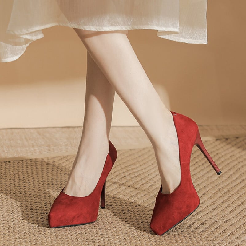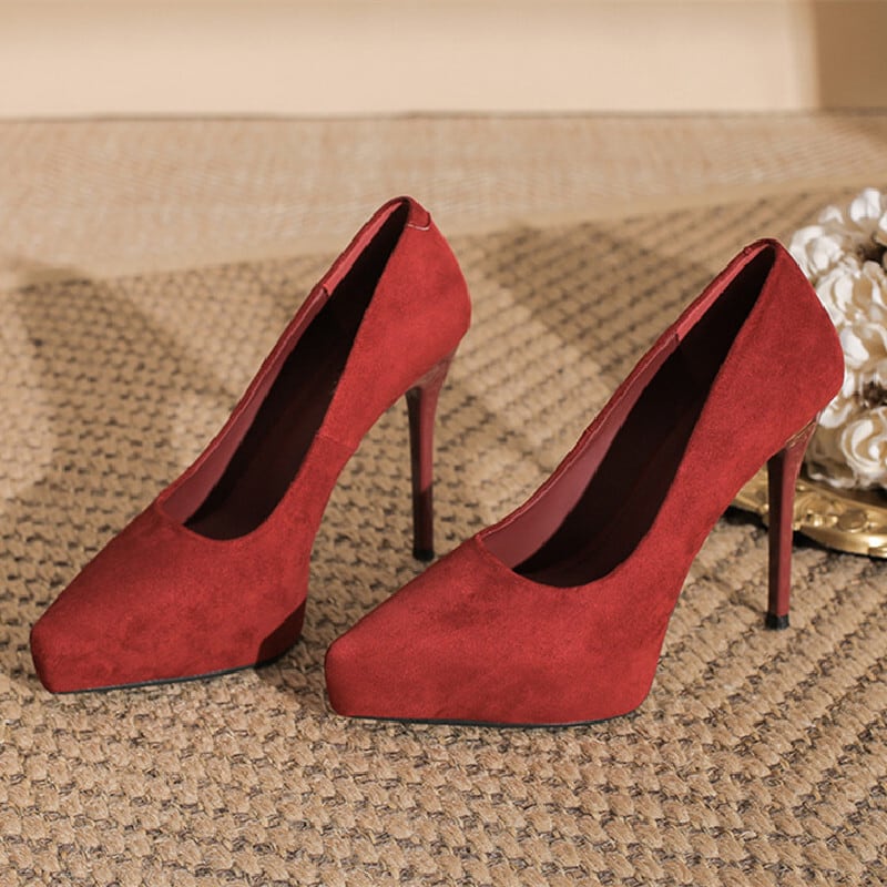 シューズ 2色展開 パンプス 無地 ハイヒール 気質満点 レッド ブラック 12CM