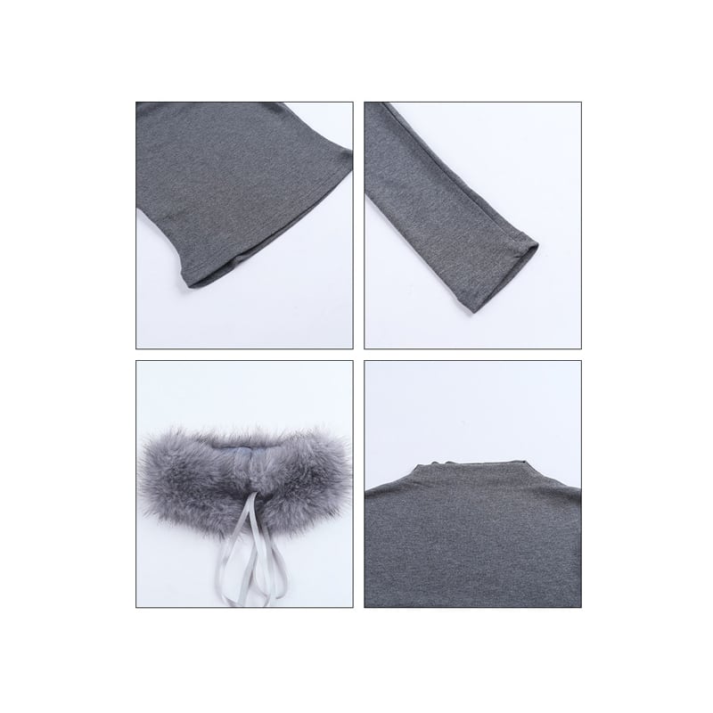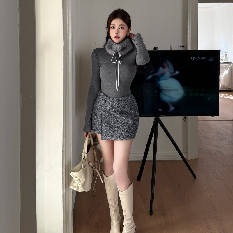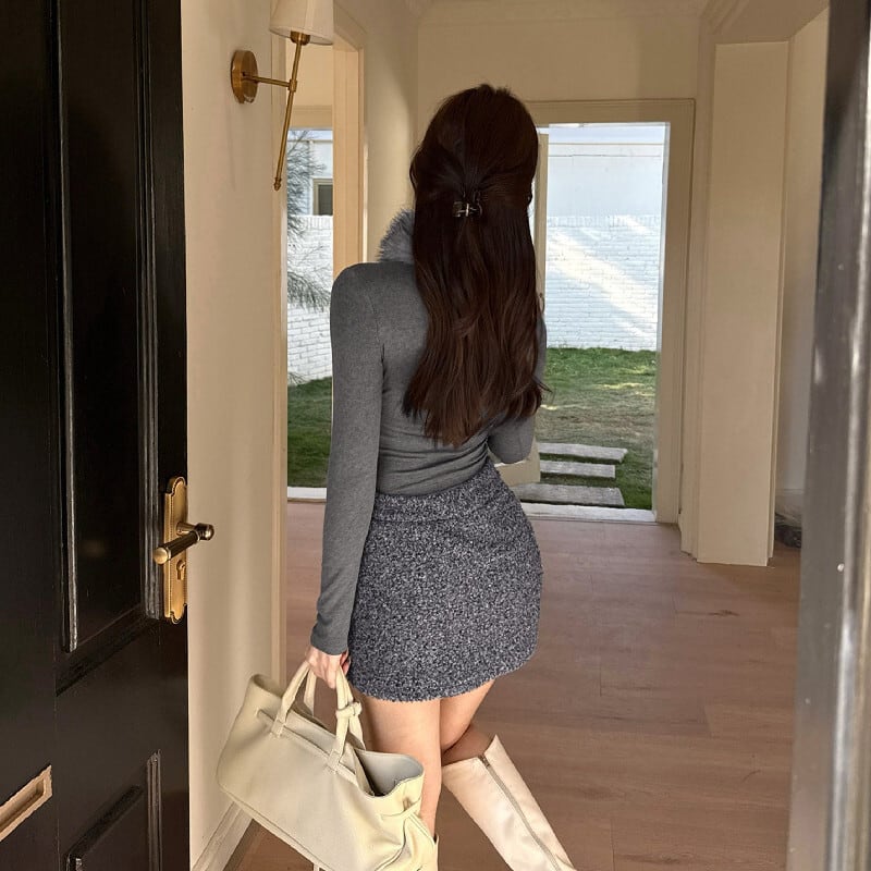 上品なグレーのコーデセット ~ムートンカラー トップス と シルエット スカート