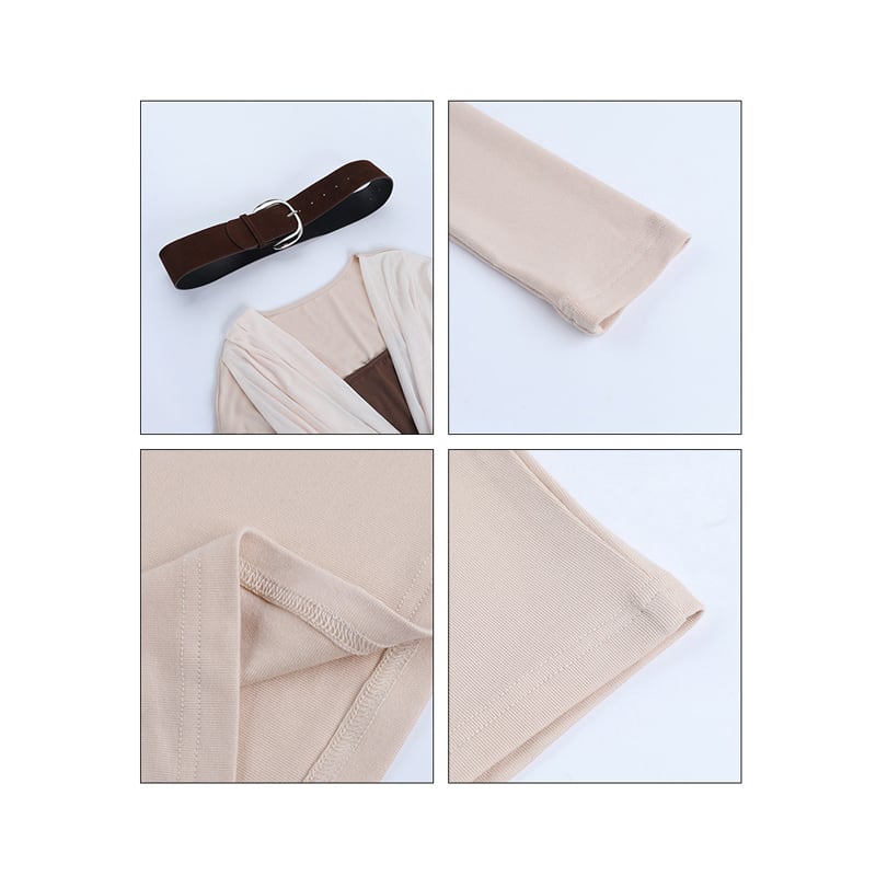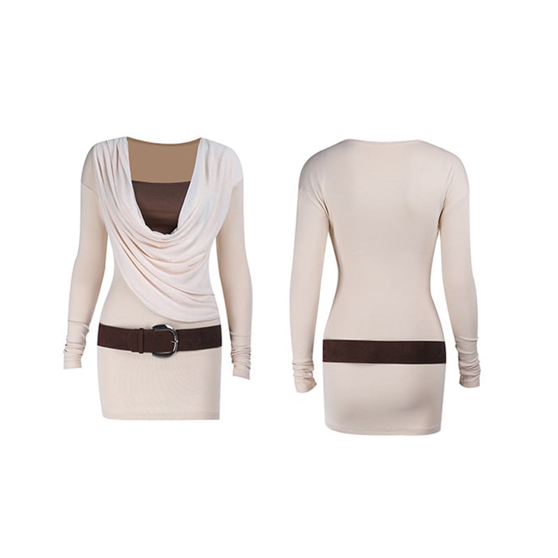 ドレープネック フェイクレイヤード 長袖 タイト ボディコン ミニワンピース S M L