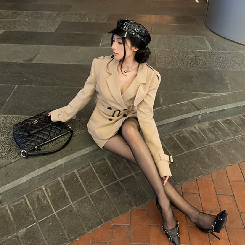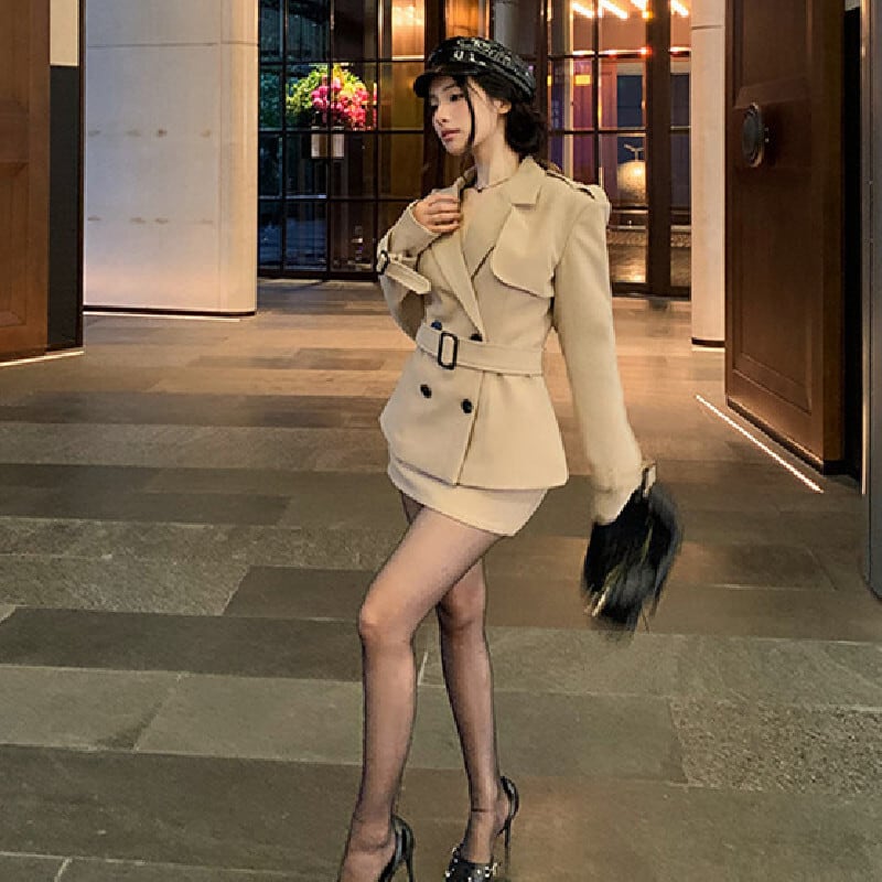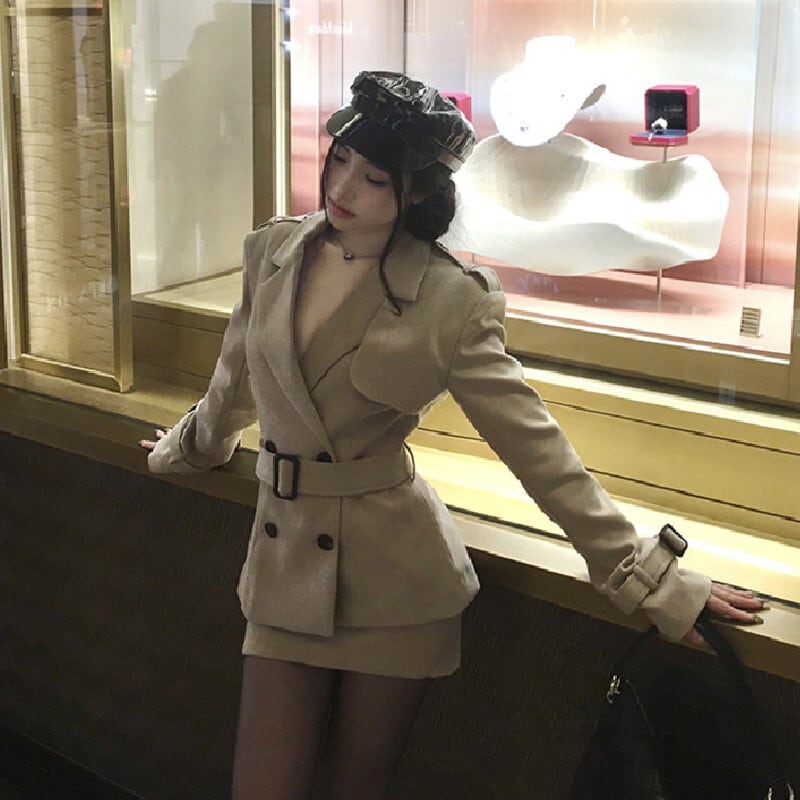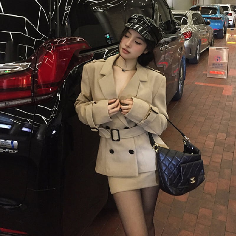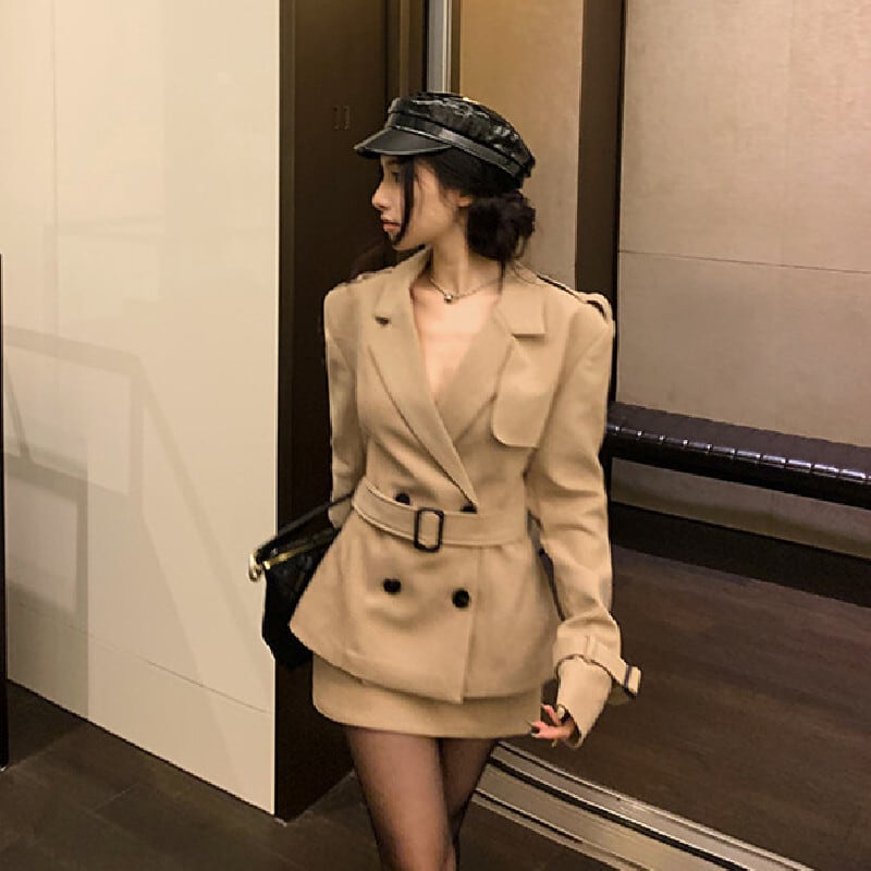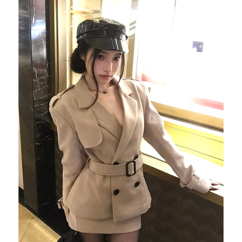 セットアップ クラシック ダブルブレスト トレンチコート +タイトスカート S M