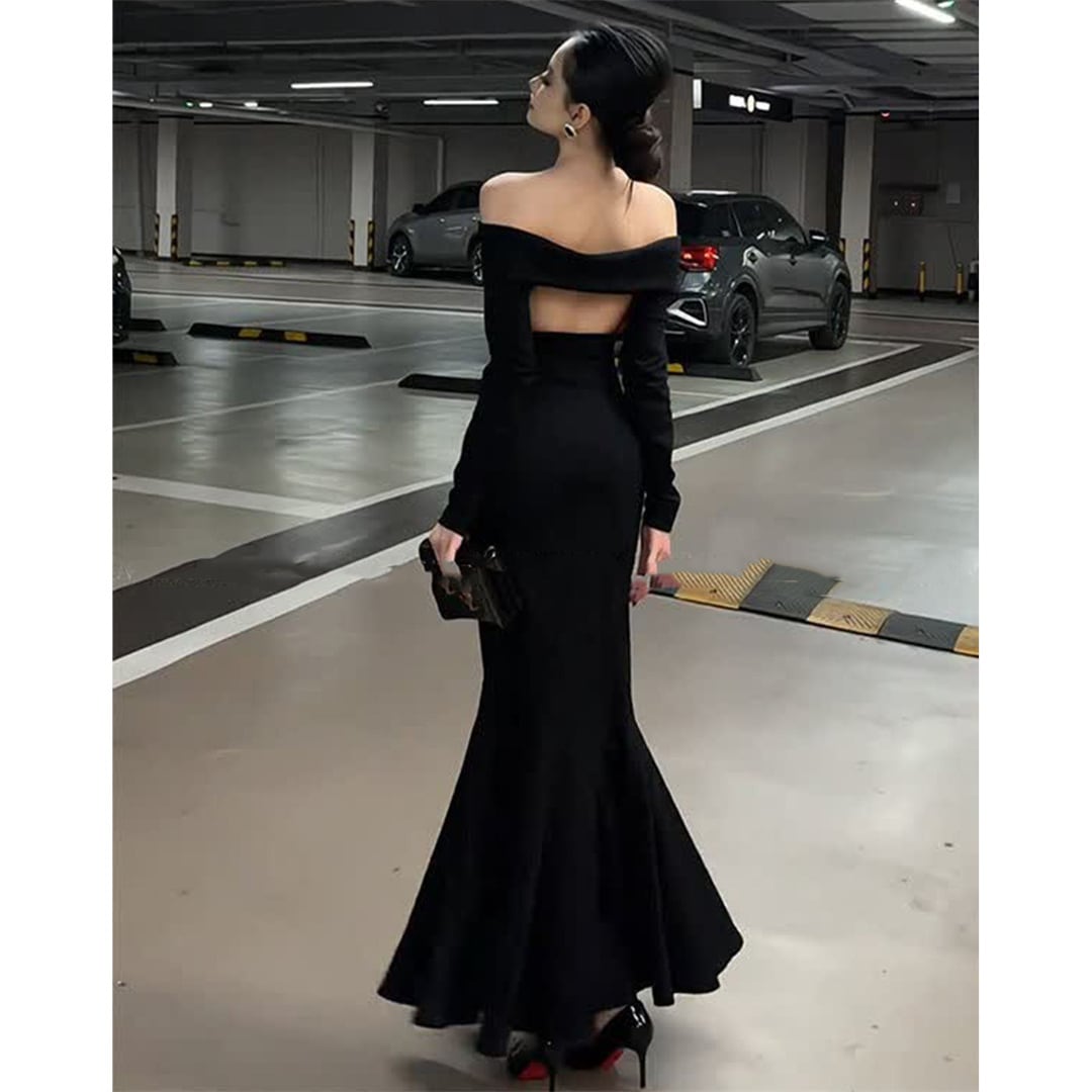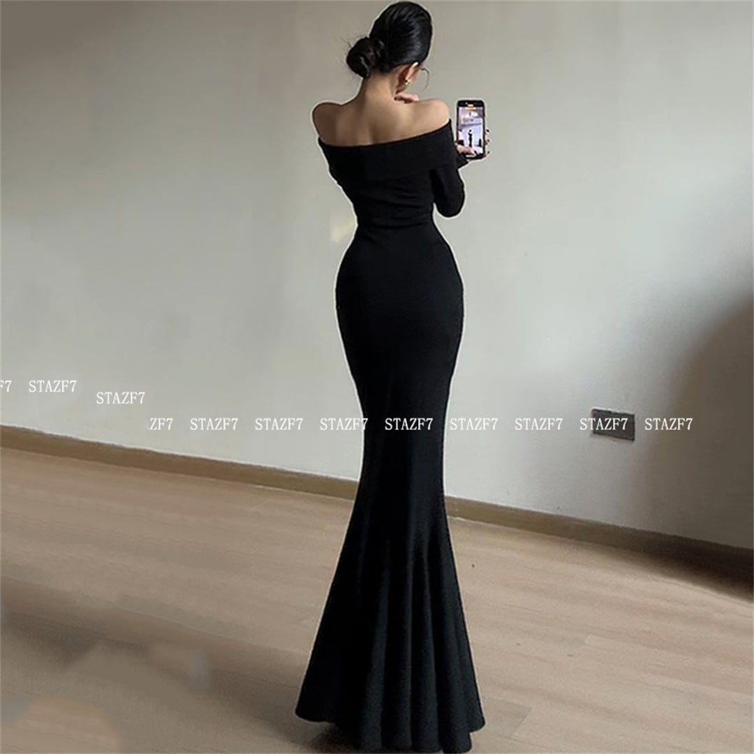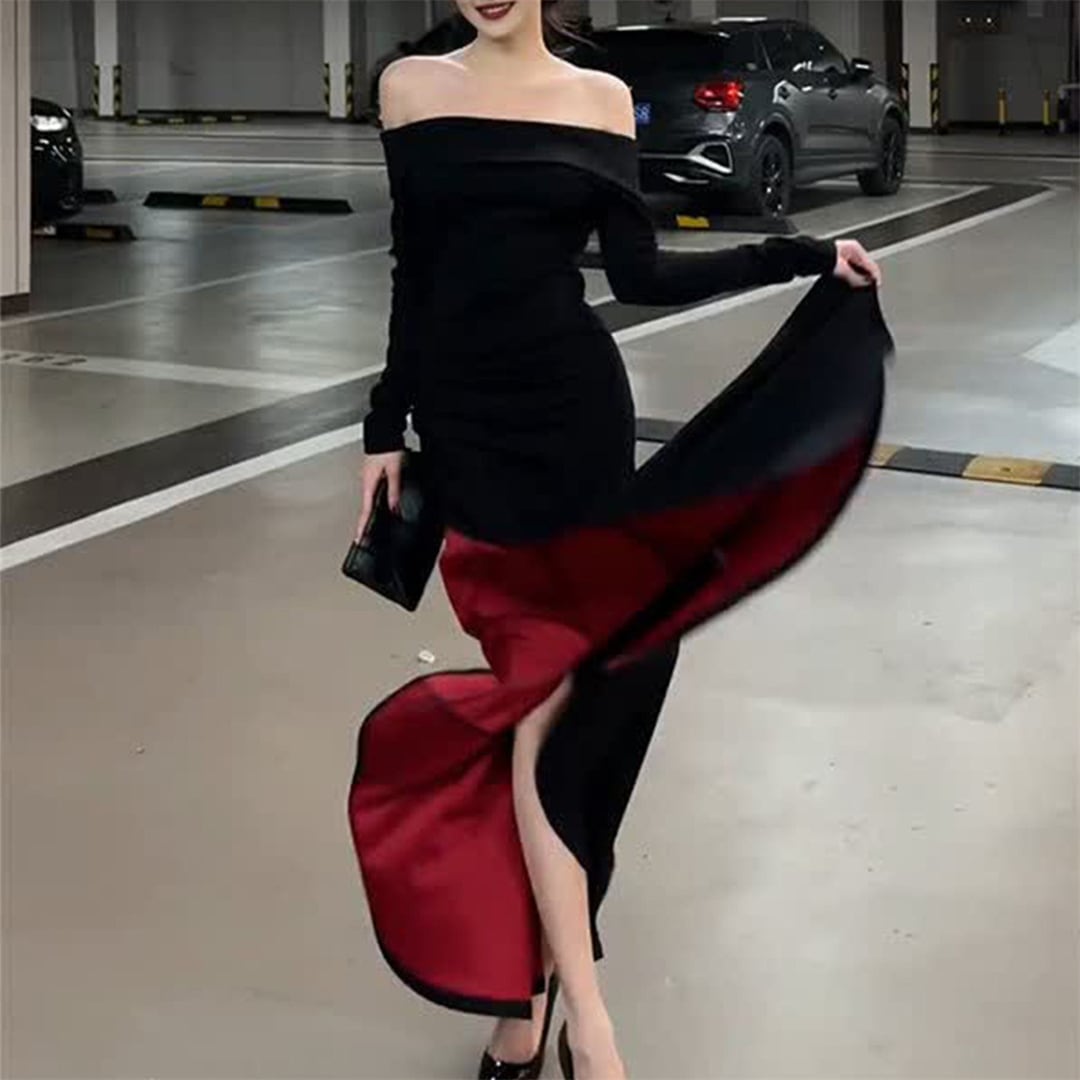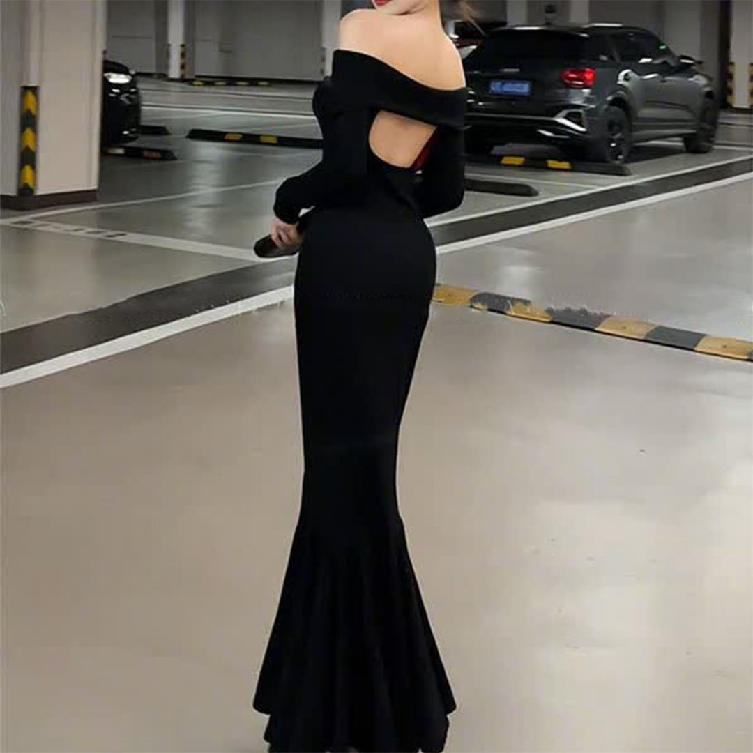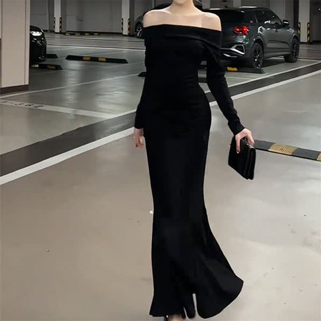 ワンピース エレガント オフショルダー ノンバックレス/バックレス 美人度アップ ブルー S M L XL 2XL