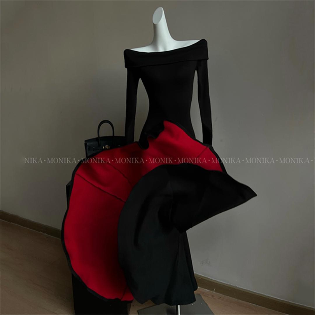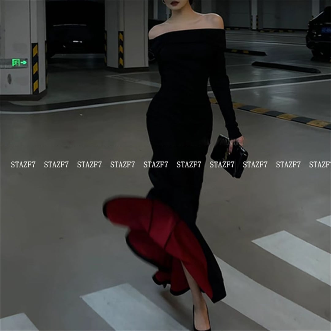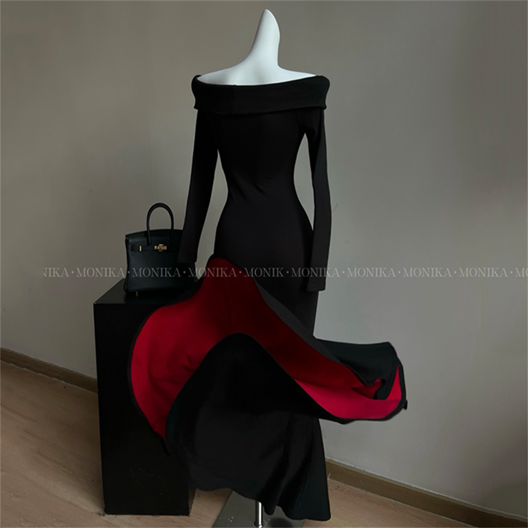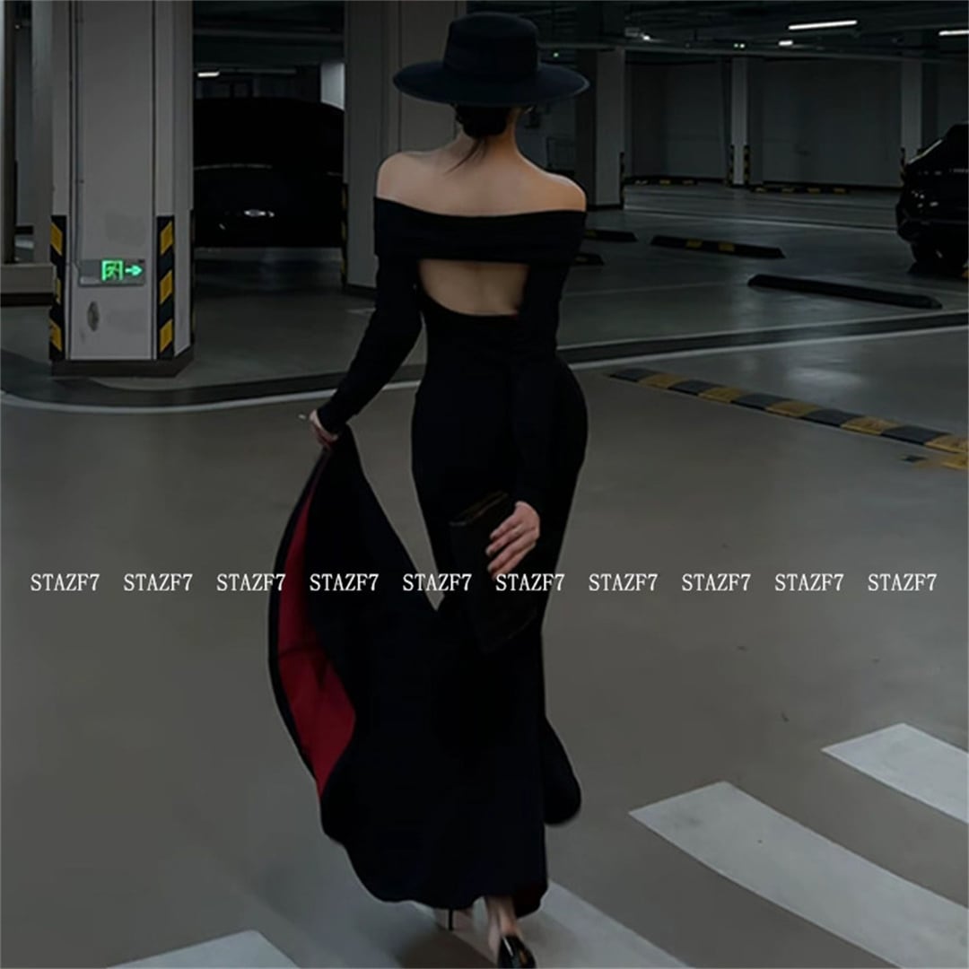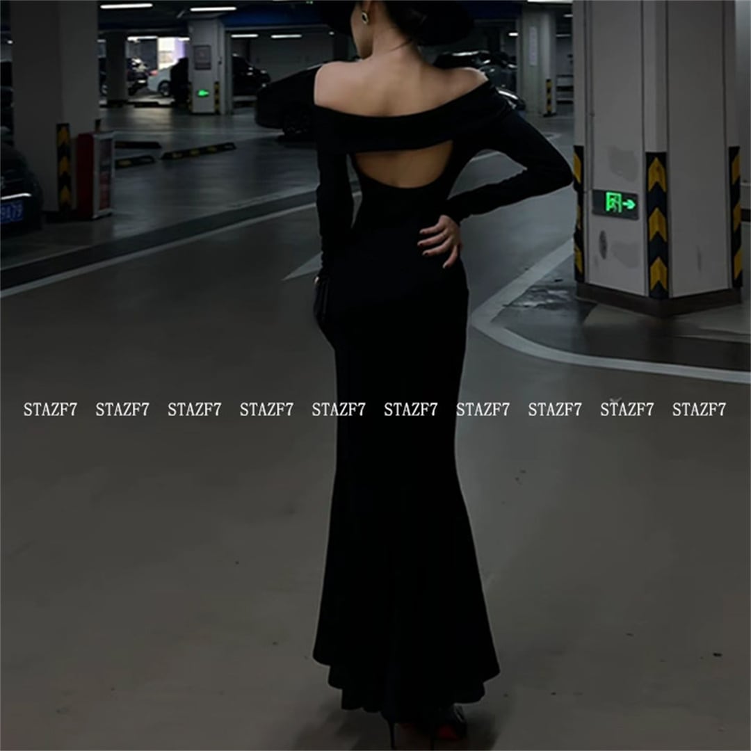ワンピース エレガント オフショルダー ノンバックレス/バックレス 美人度アップ ブルー S M L XL 2XL