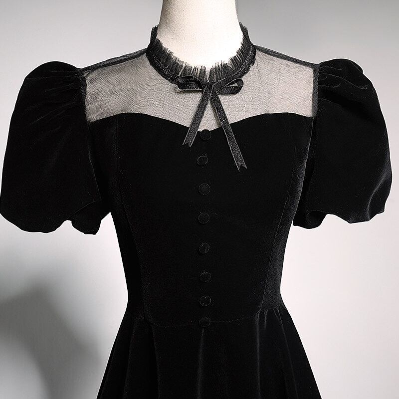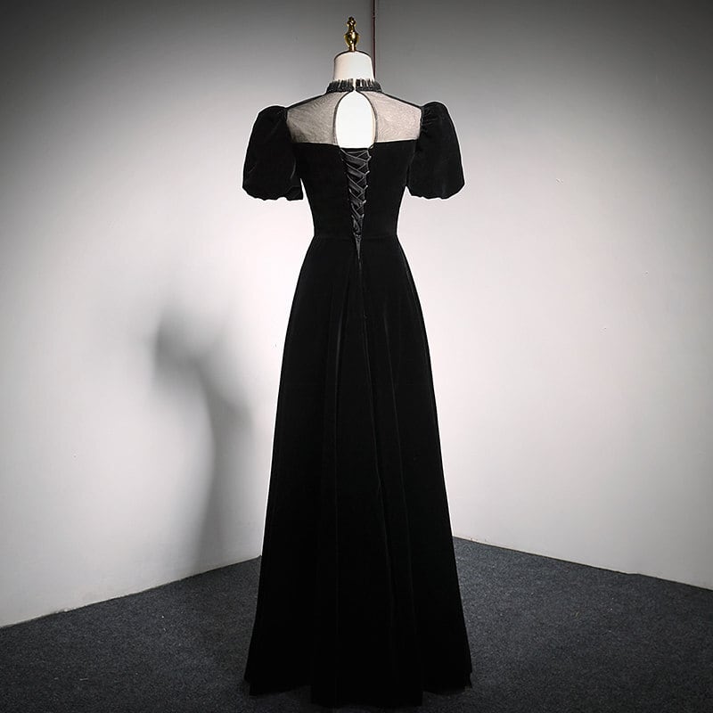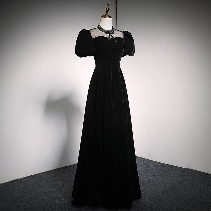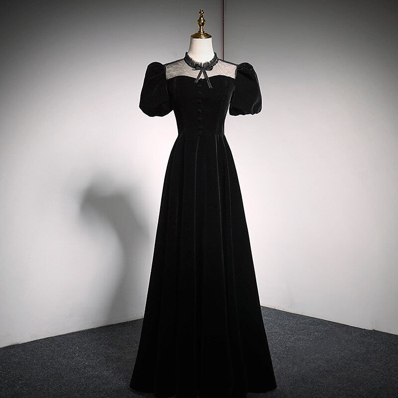 パーティードレス ベルベット パフスリーブ 演奏会 ロング丈 ブラック
