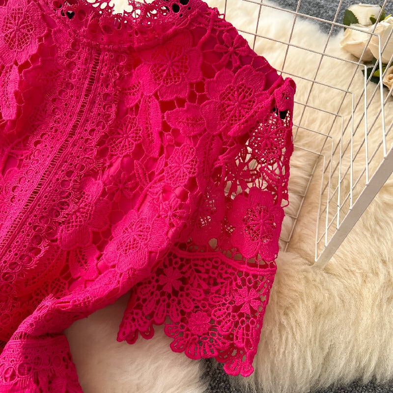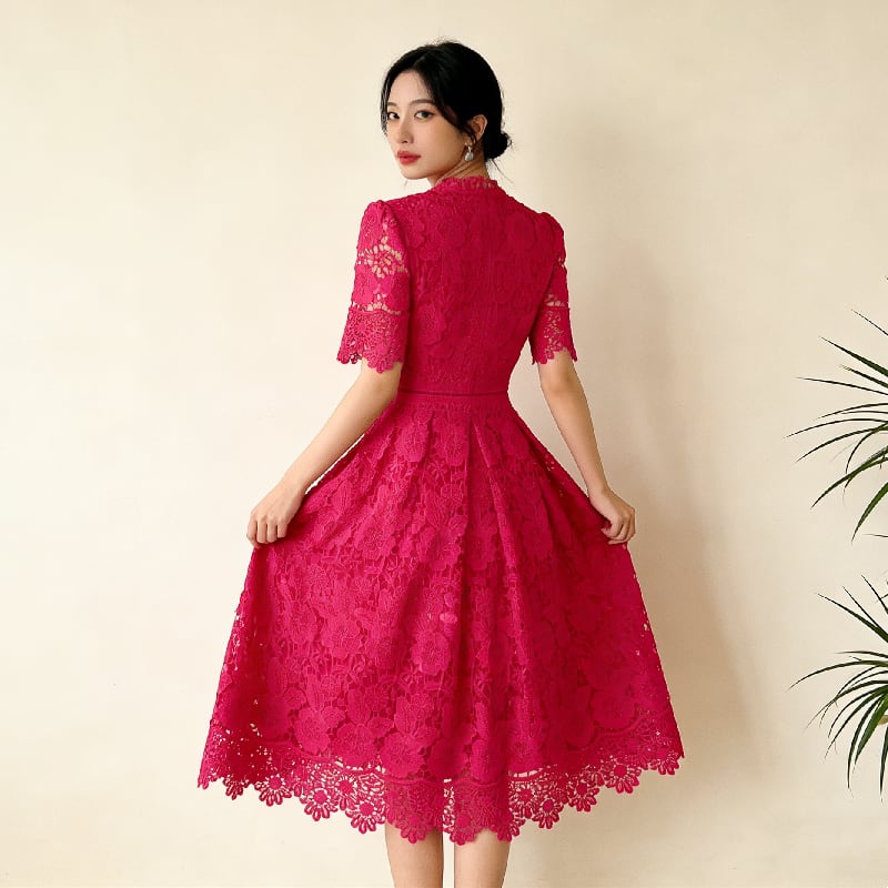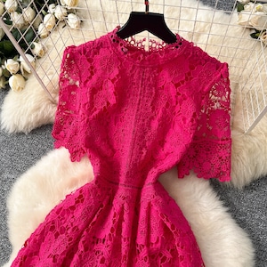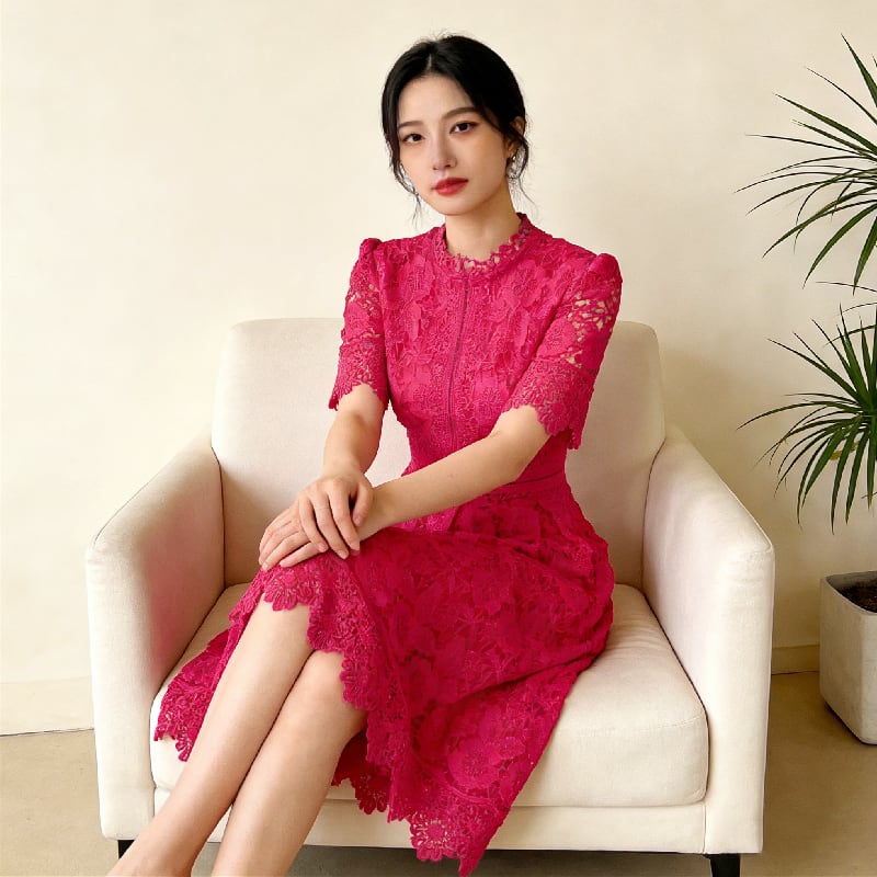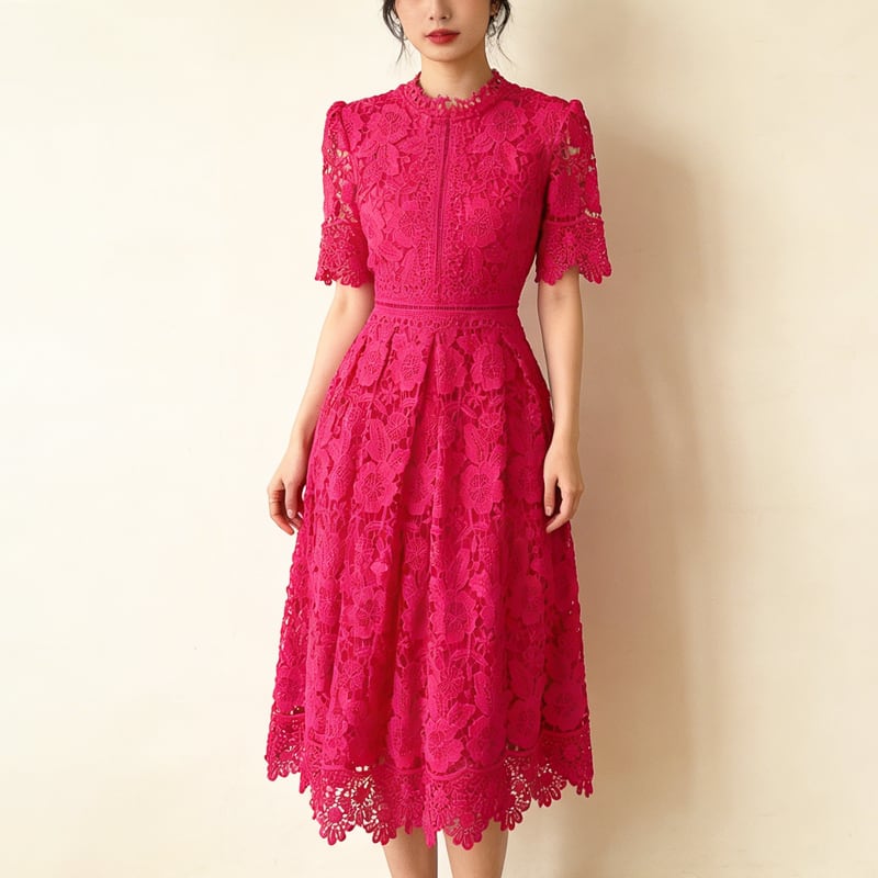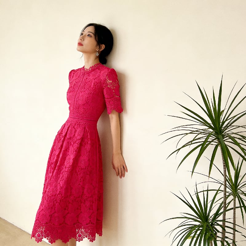 ワンピース レース 気質アップ フィットウエスト ローズピンク