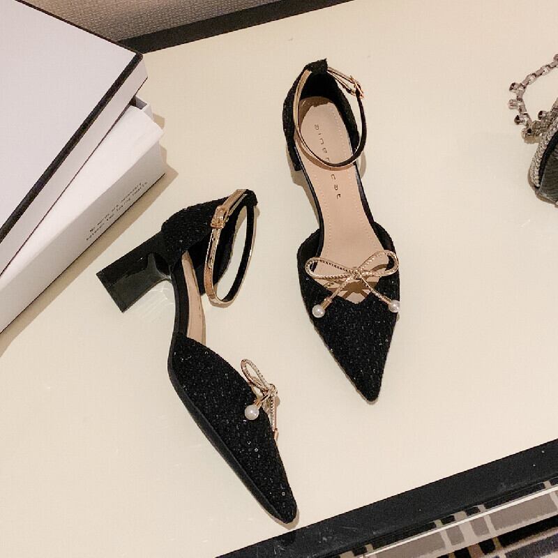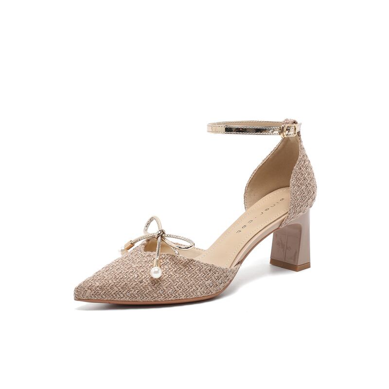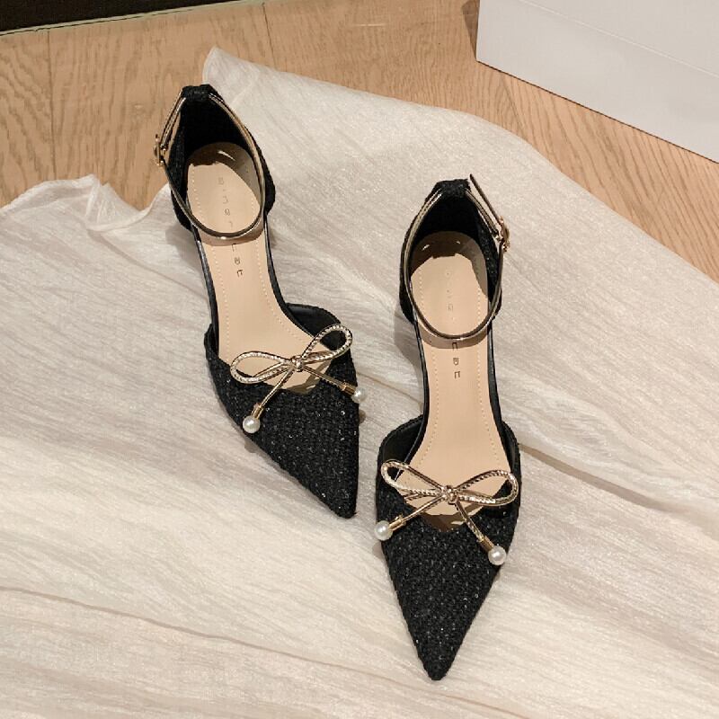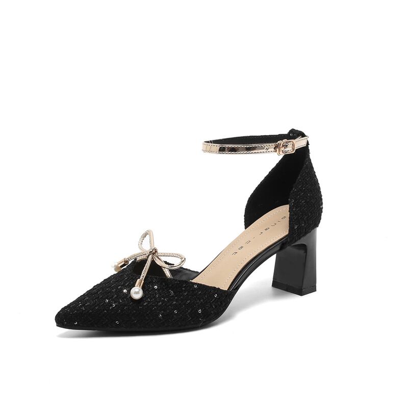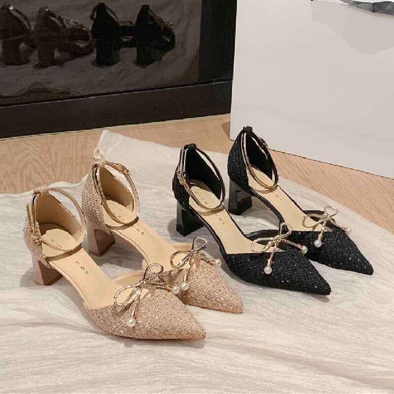 2colors シューズ パンプス ツイード ストラップ&蝶リボン ローヒール ブラック ライトブラウン 6CM
