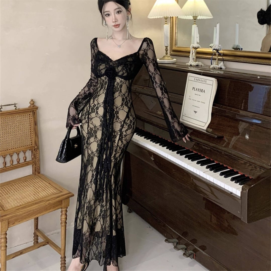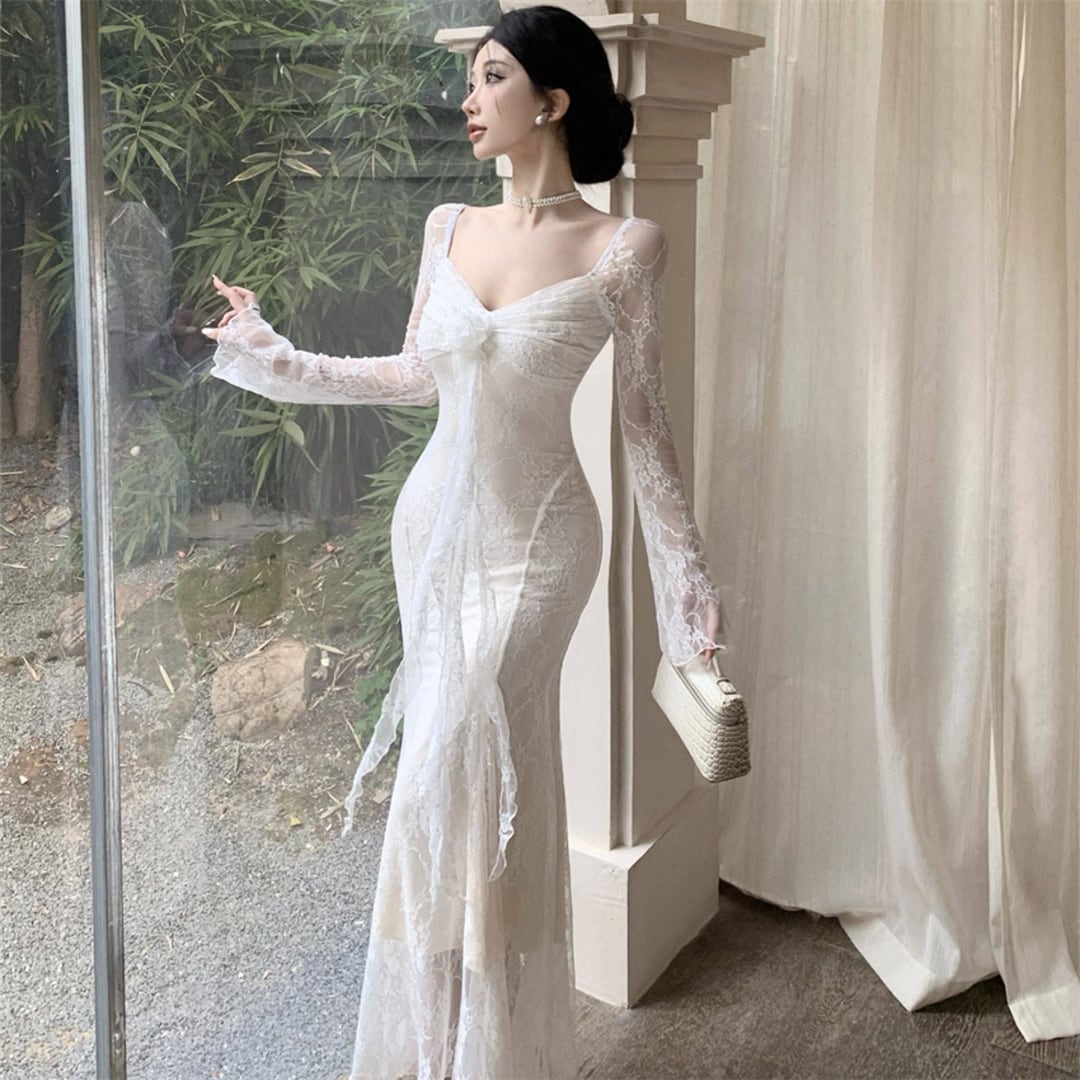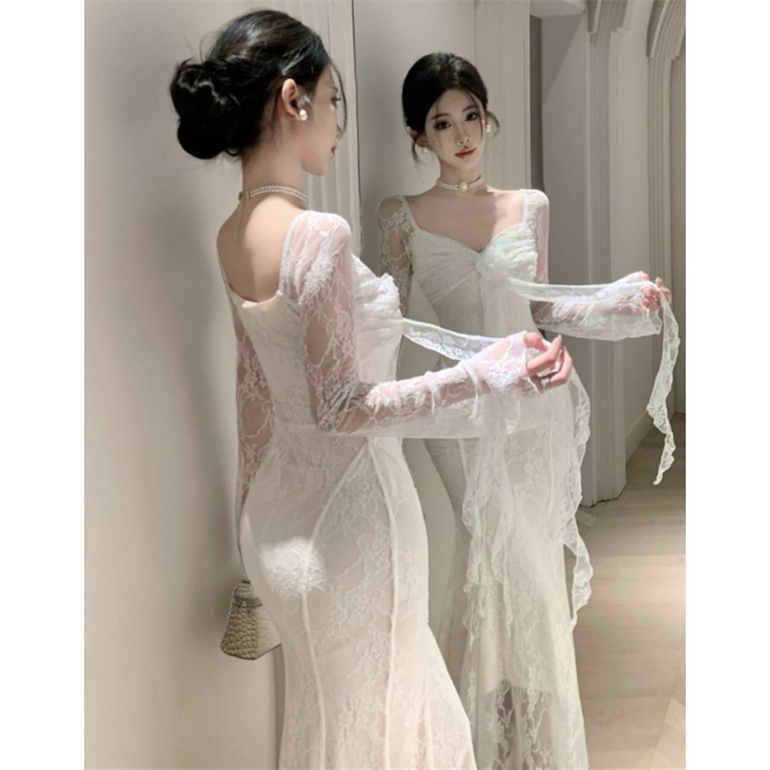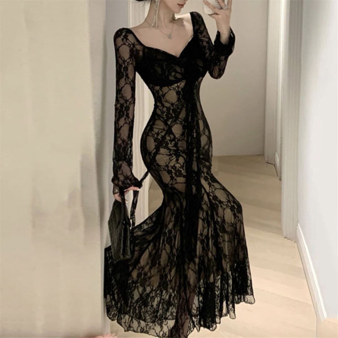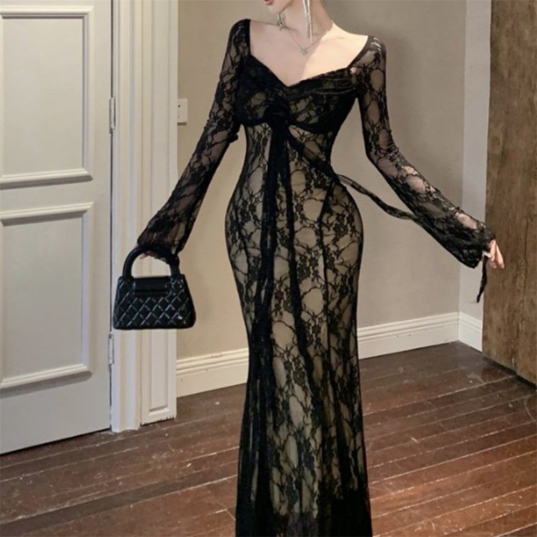 ワンピース 美人度アップ 透け感 レース セクシー ブラック ホワイト S M L