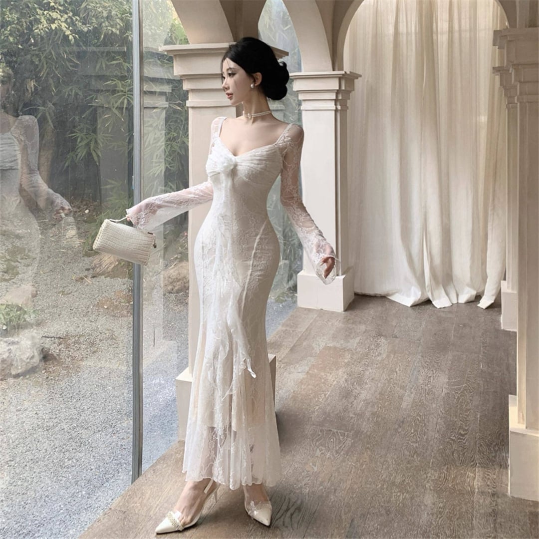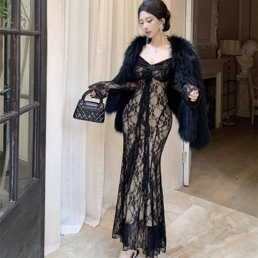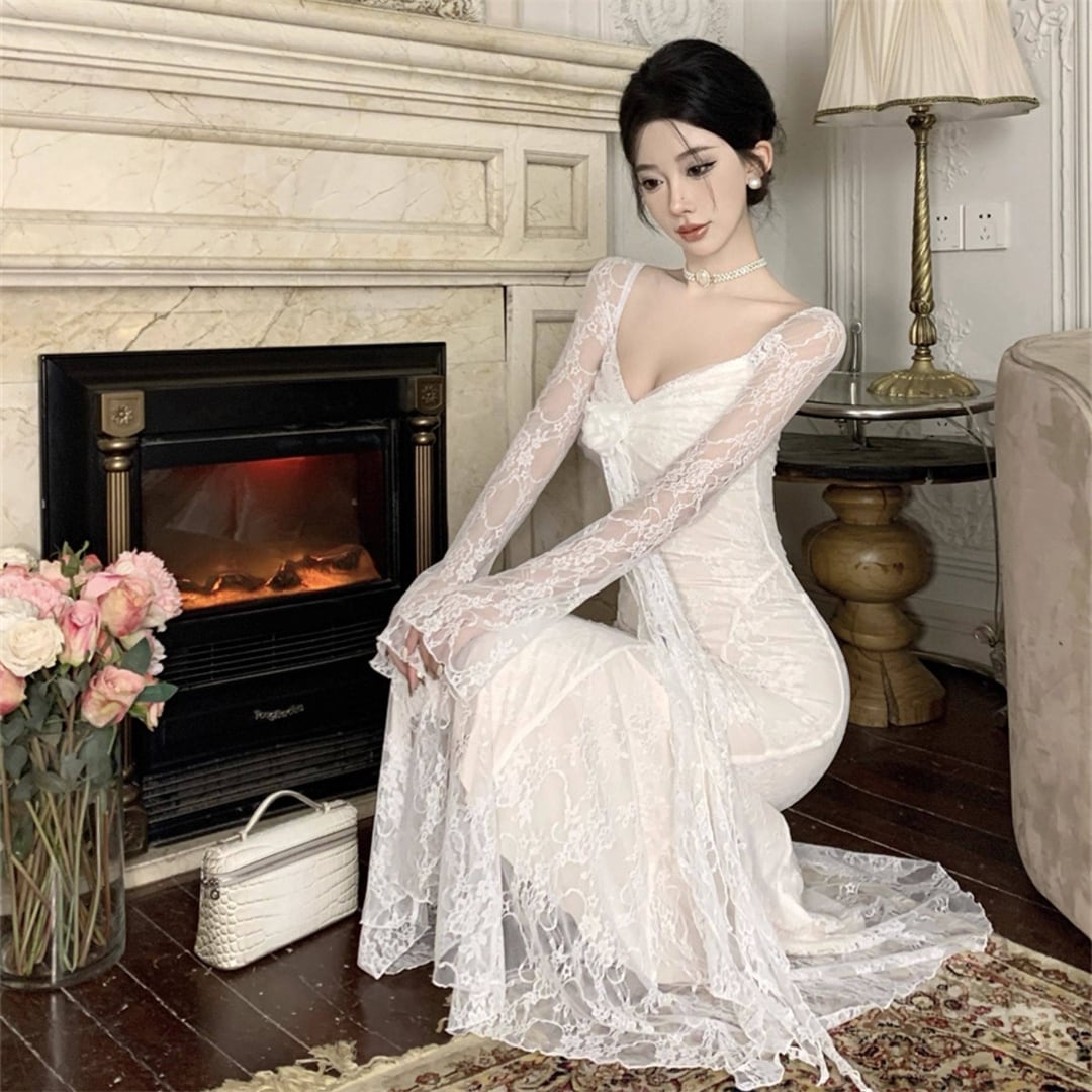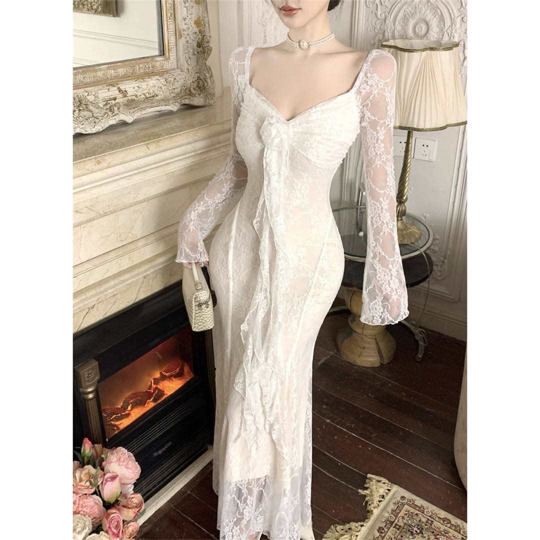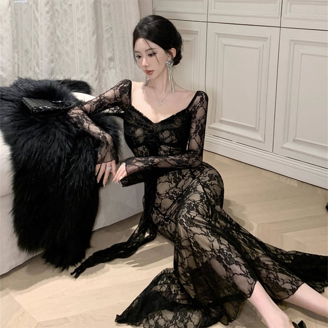 ワンピース 美人度アップ 透け感 レース セクシー ブラック ホワイト S M L