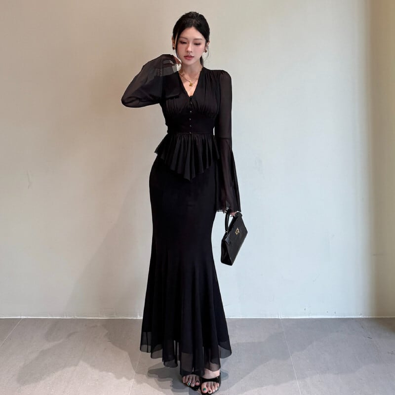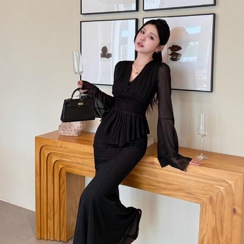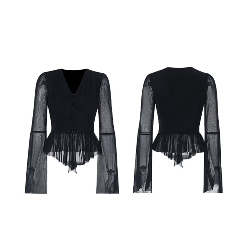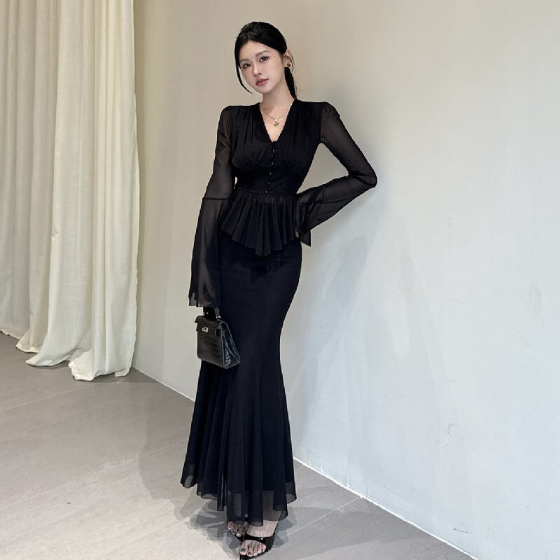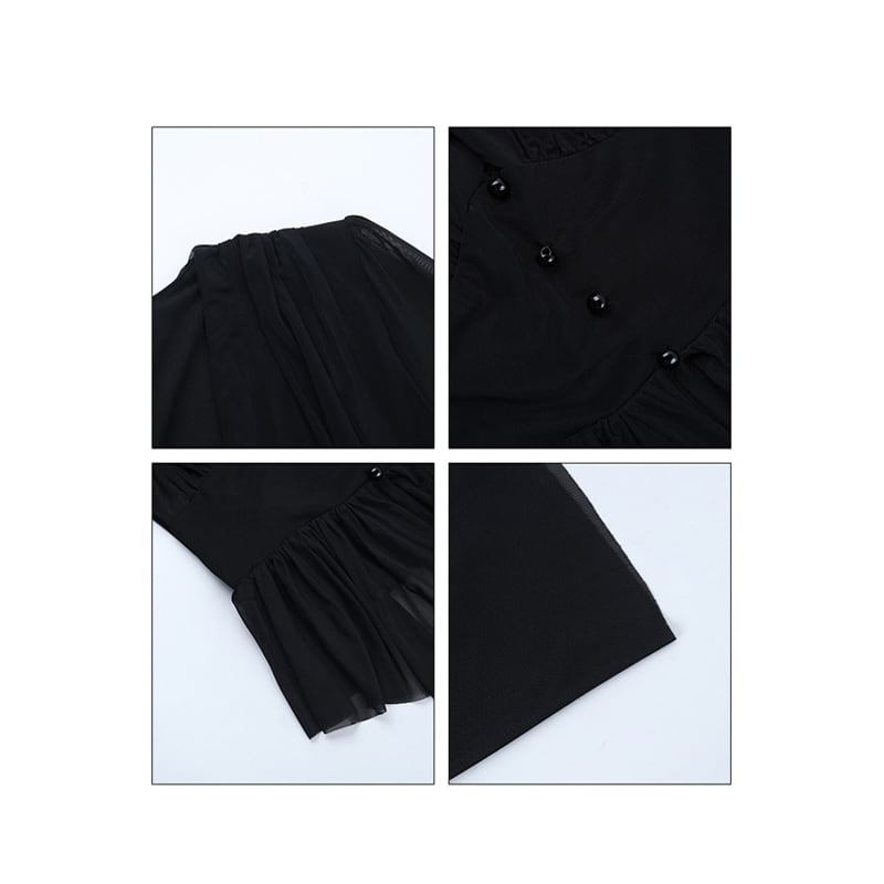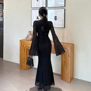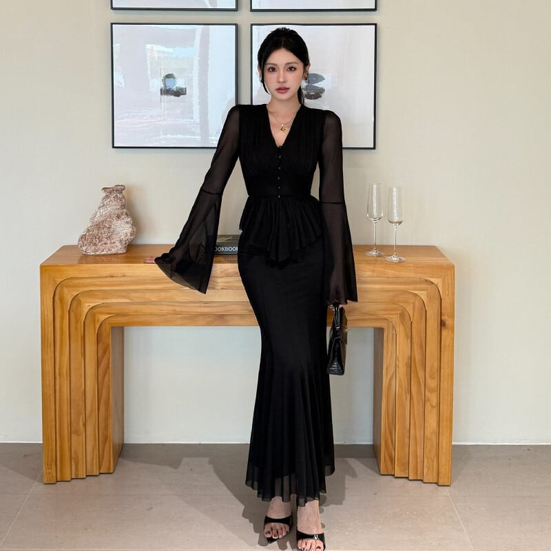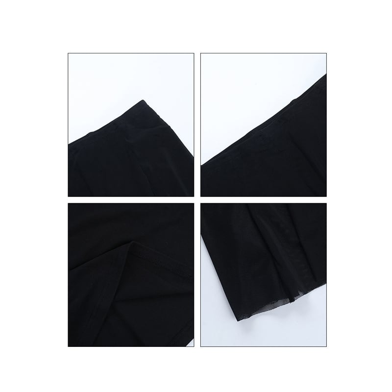 セットアップ トップス+スカート ドルマンスリーブ メッシュ ブラック S M L