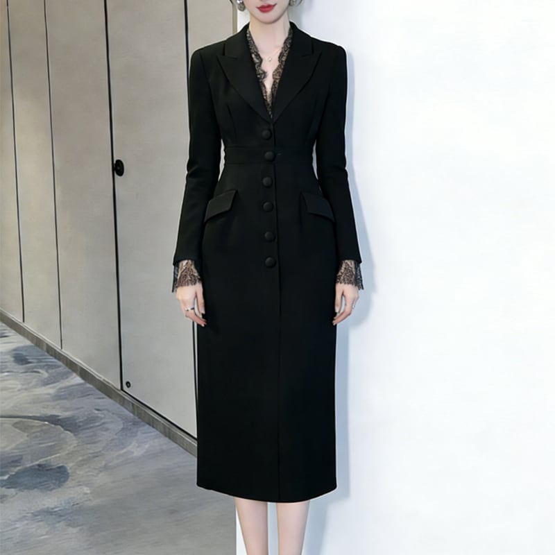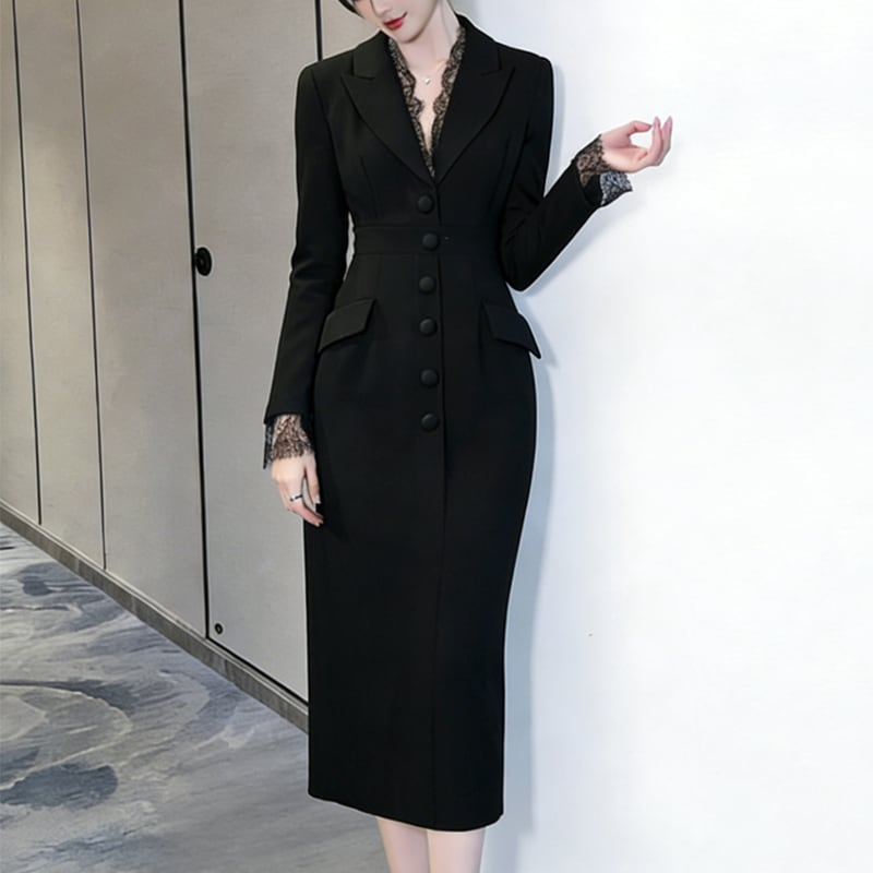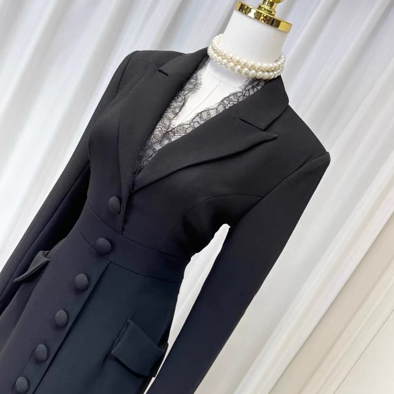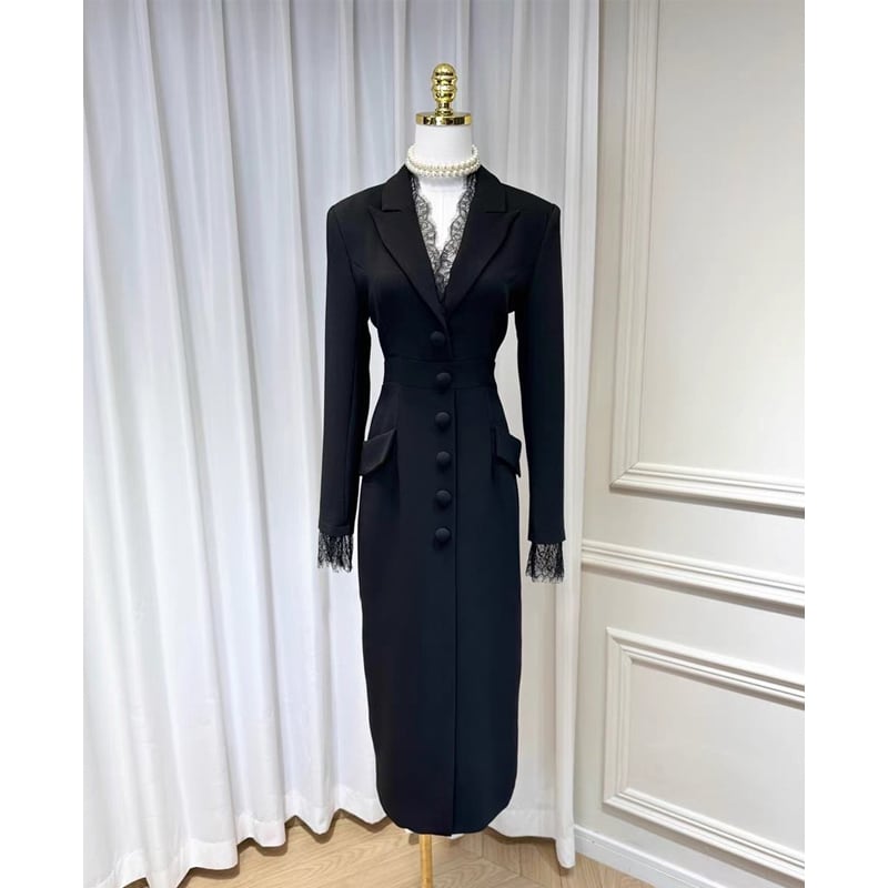 フレンチ レースデザイン 上品 ブラック ジャケットワンピース S M L XL