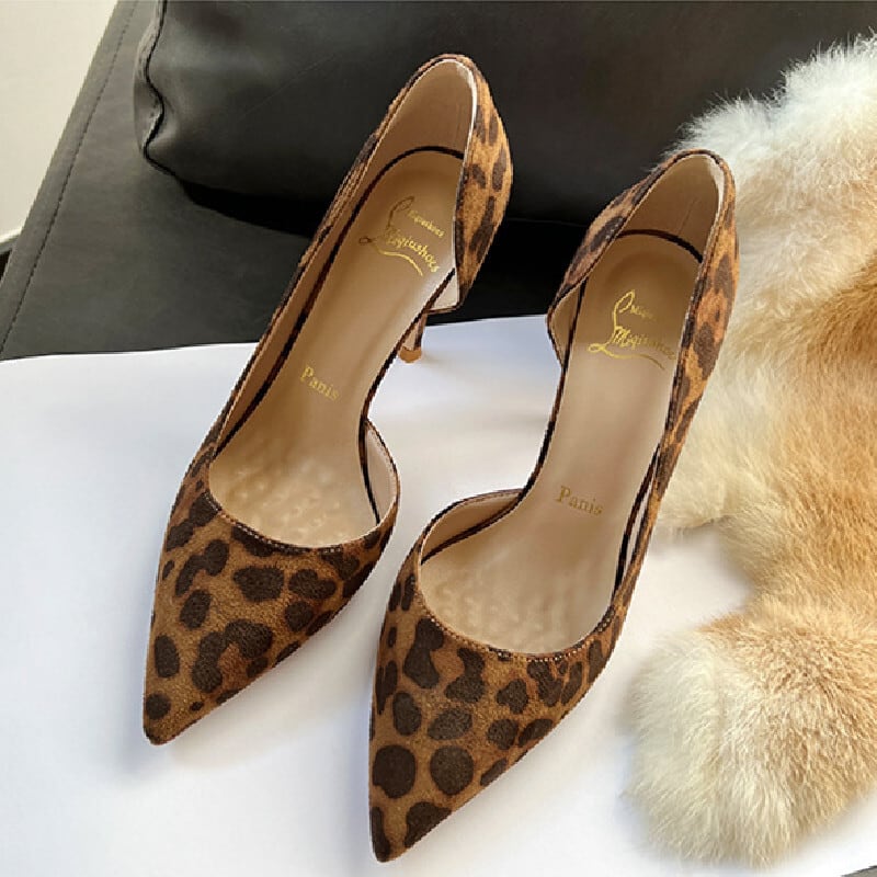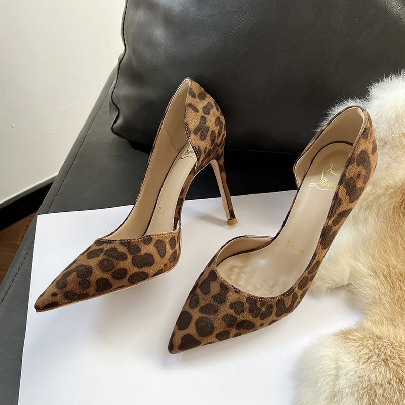 シューズ パンプス 高さ2種 サイドオープン スエード ヒョウ柄 8CM/10CM