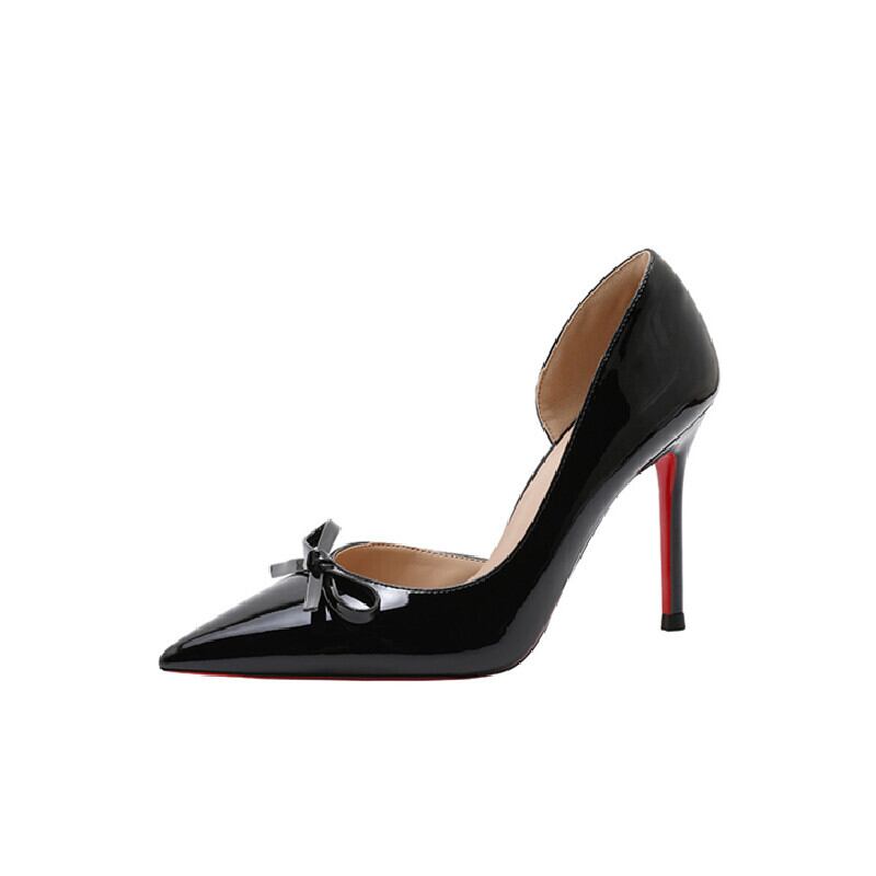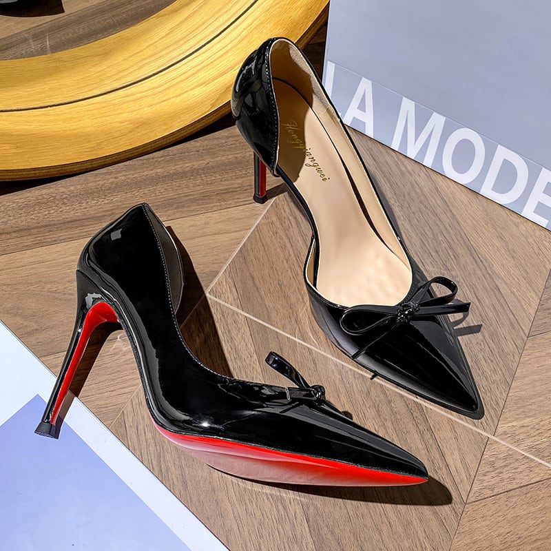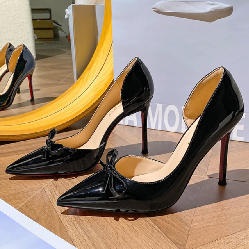 シューズ パンプス 2色展開 サイドオープン 蝶リボン ブラック ベージュ 8CM/10CM