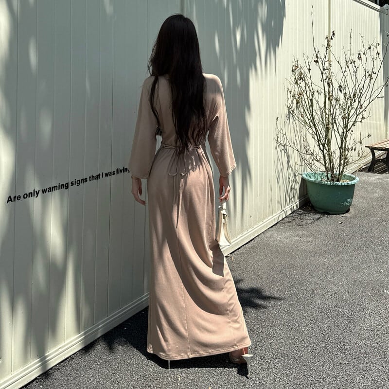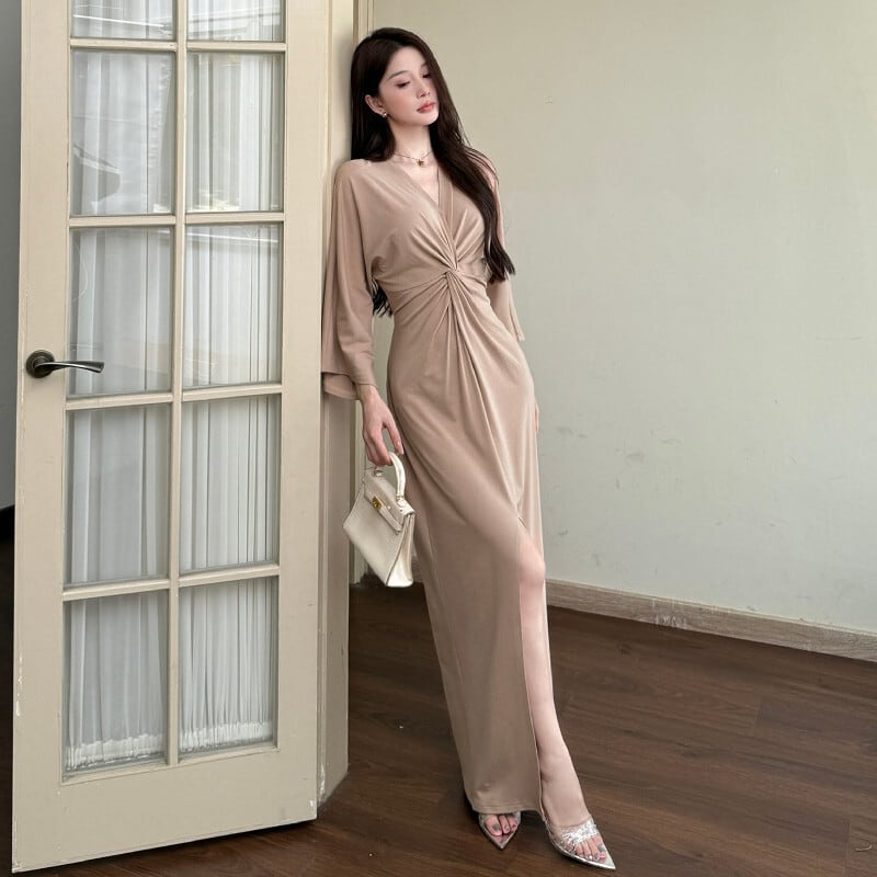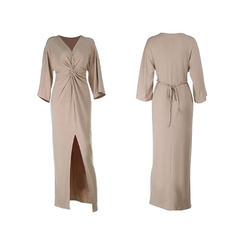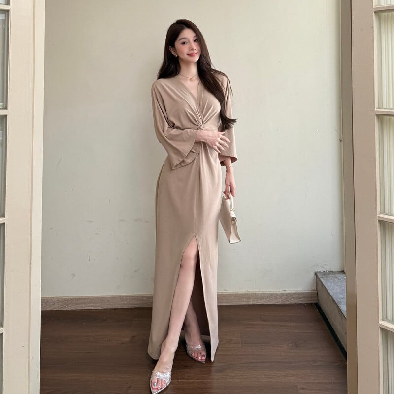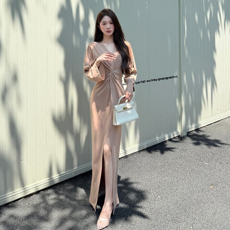 ワンピース Vネック 前スリット レトロ デート デザイン感 S M L