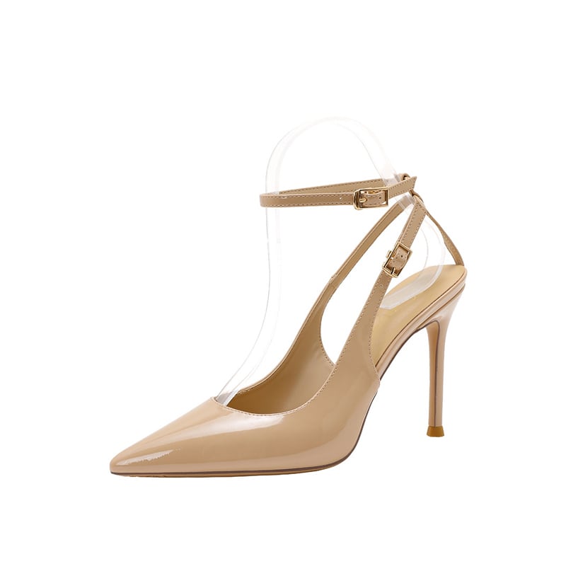 シューズ パンプス 高さ2種 ストラップ 無地 ヌードベージュ 8CM/10CM