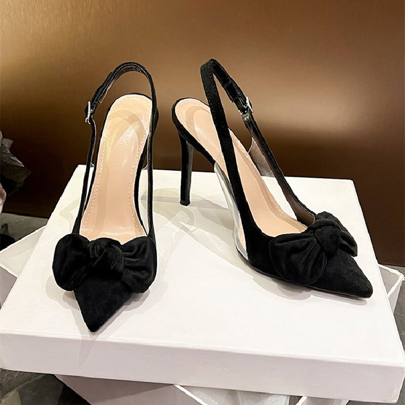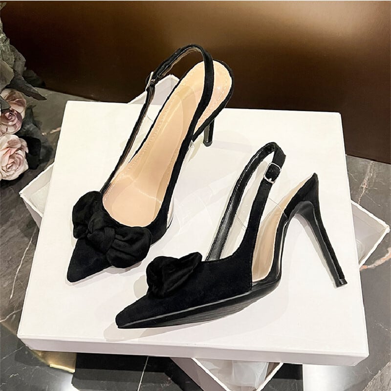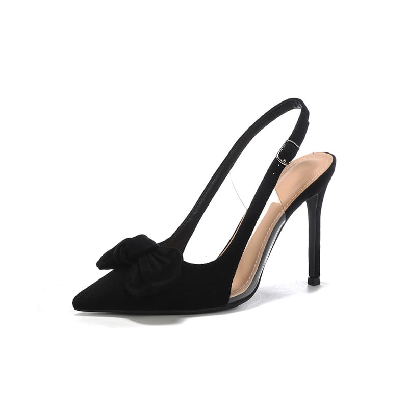 シューズ パンプス 高さ2種 スエード 蝶リボン ブラック 8CM/10CM