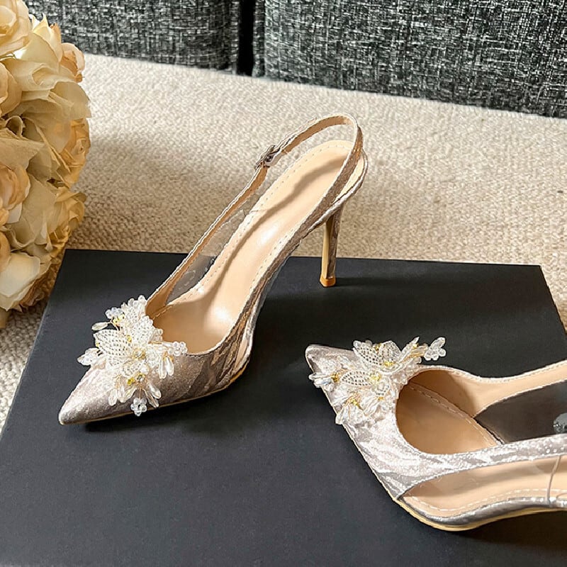 シューズ パンプス 2色展開 披露宴 女っぽさが漂う シルバー色 シャンパン色 8CM/10CM