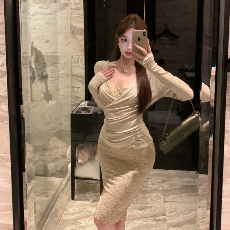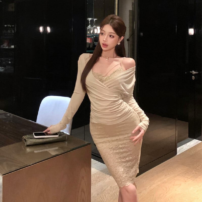 2点セット バックレス ウエストシェイプカバーアップ + セクシー レース ワンピース S M