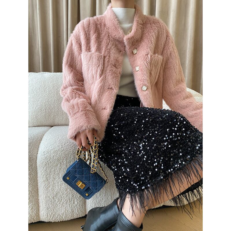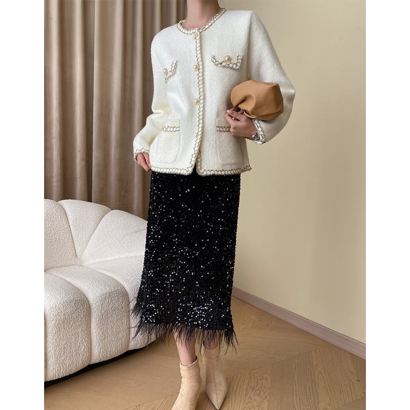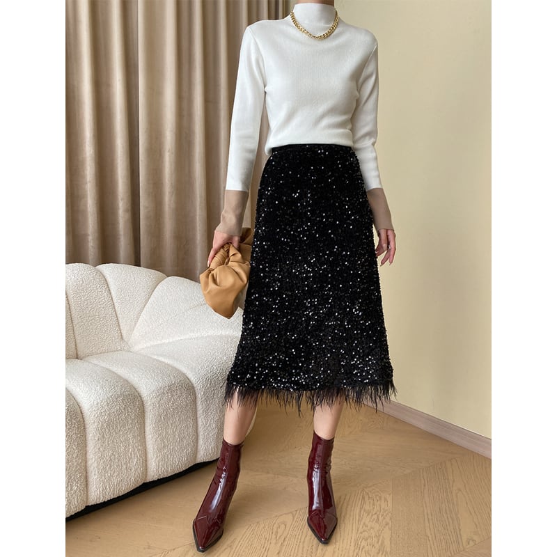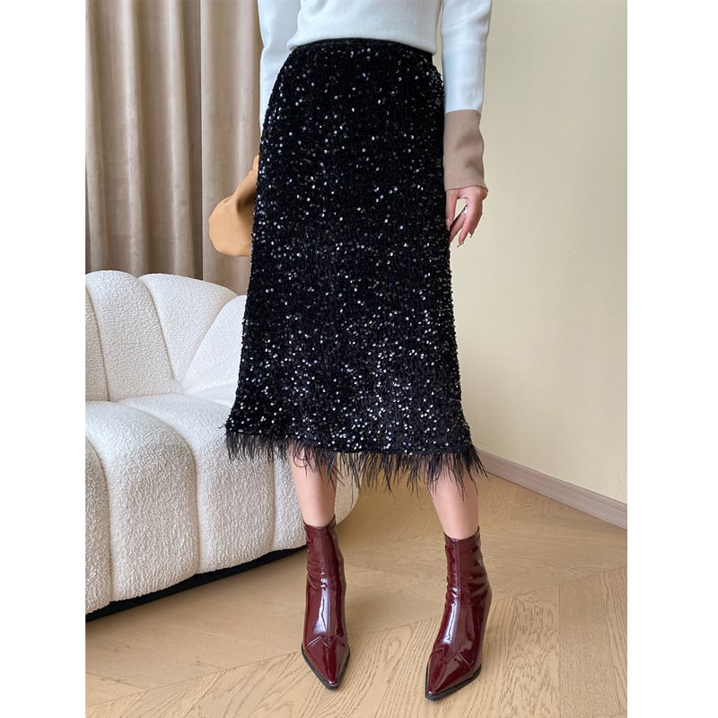 ボトムス スカート ベルベット スパンコール フェザーフリンジ ブラック S M L XL