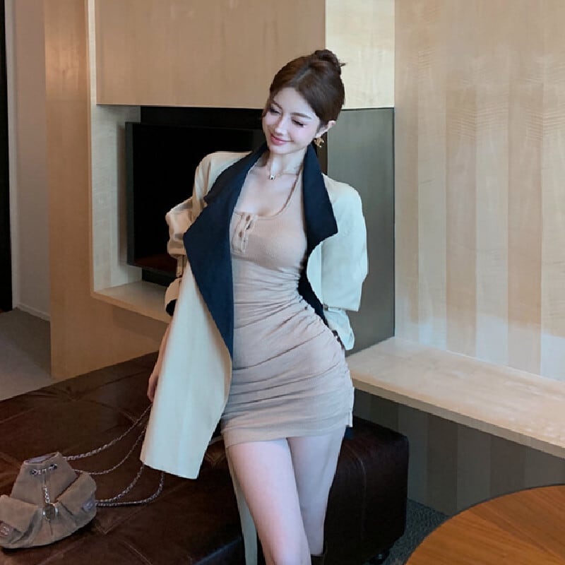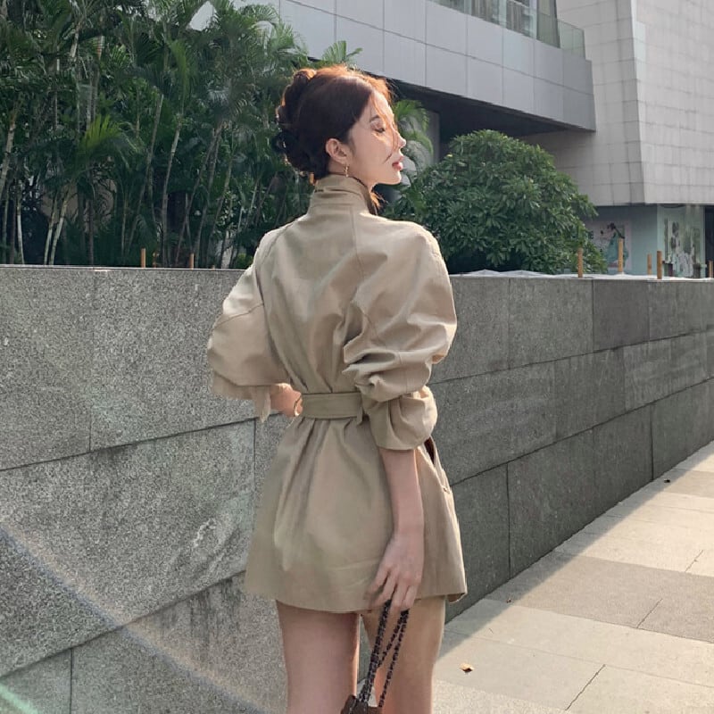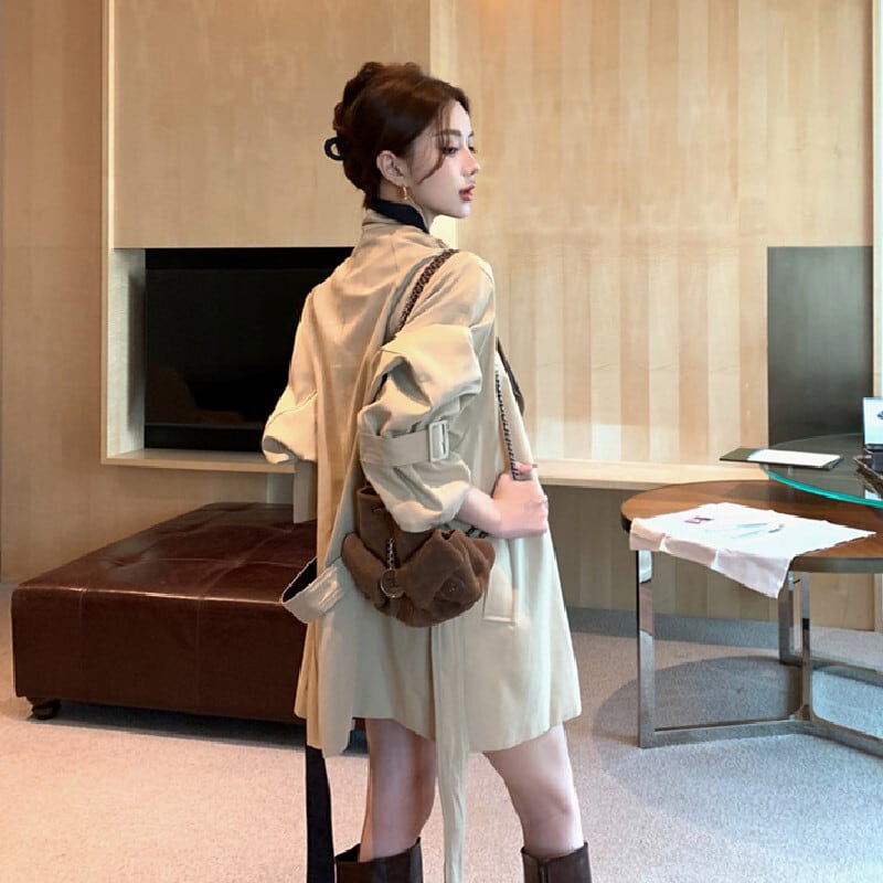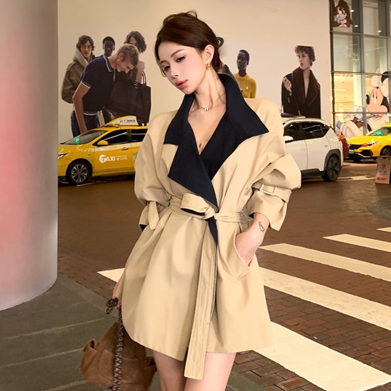 アウター トレンチコート 配色 バイカラー ミドル丈 カジュアル S M