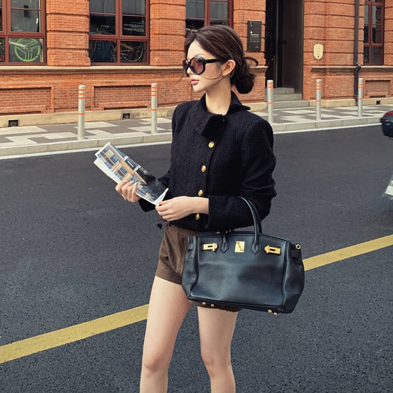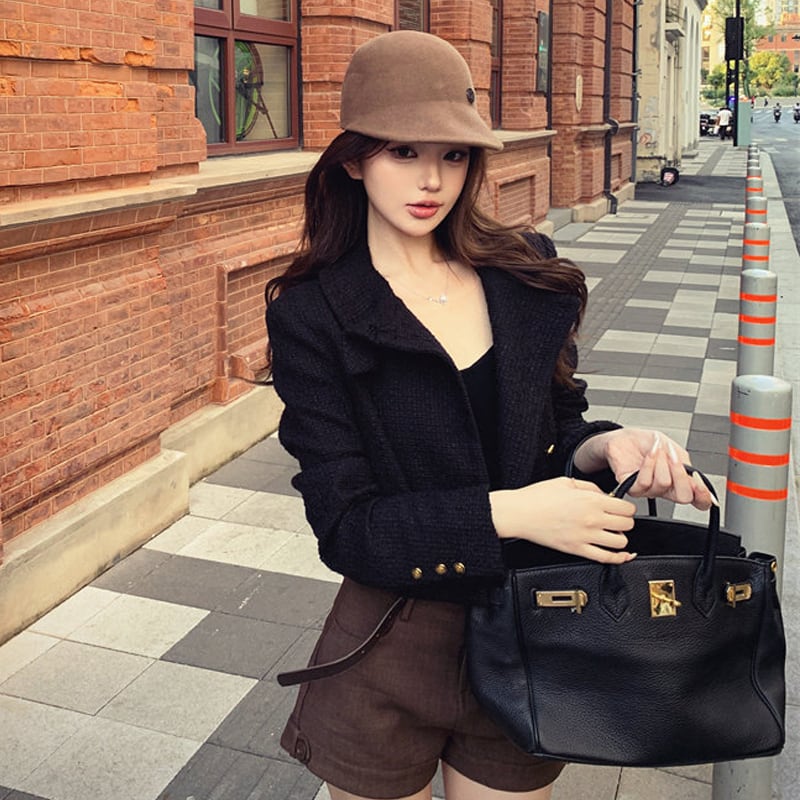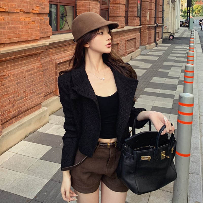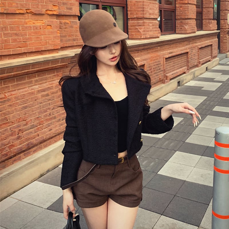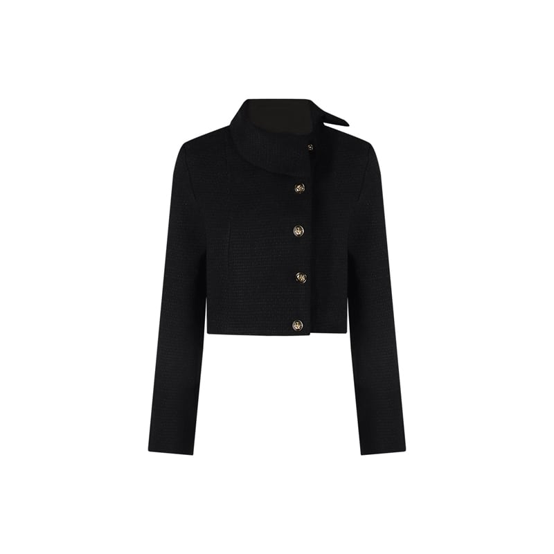 アウター ジャケット ターンダウンカラー ショート丈 フィット ブラック S M L