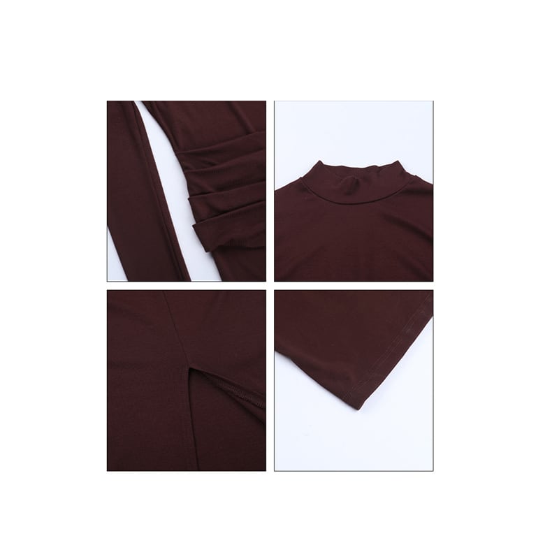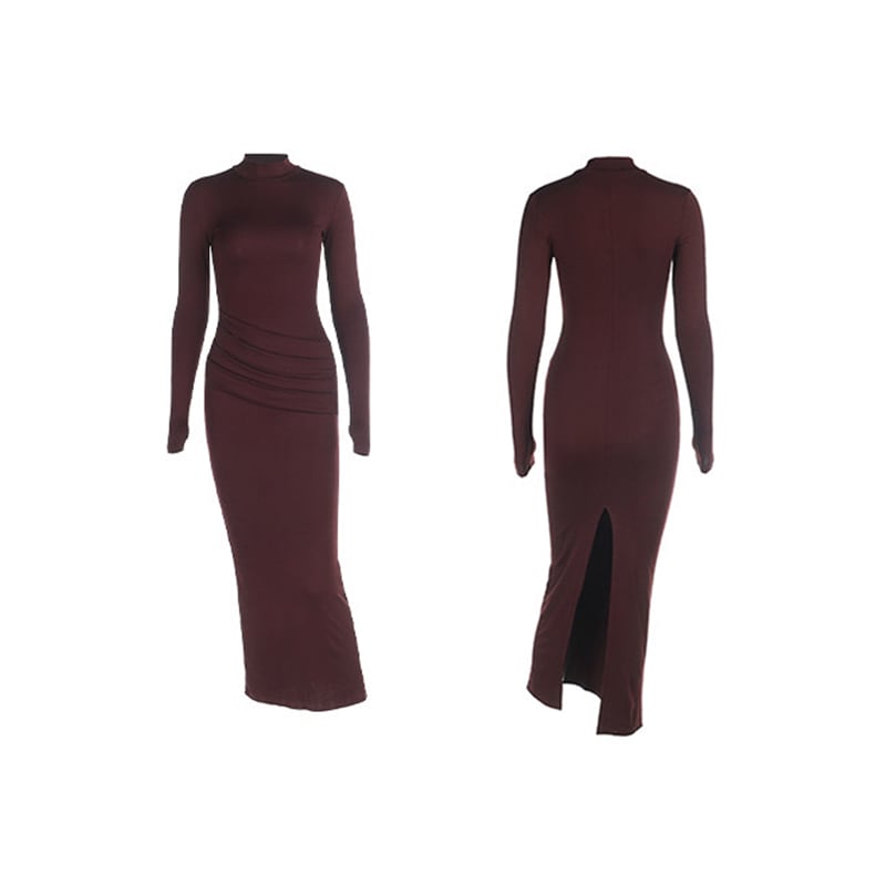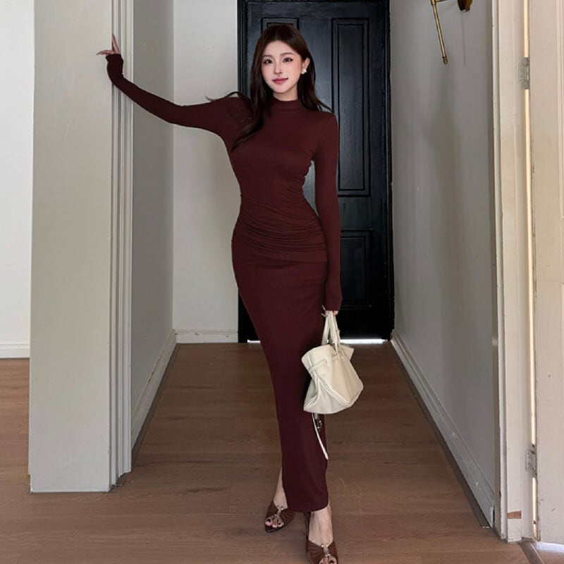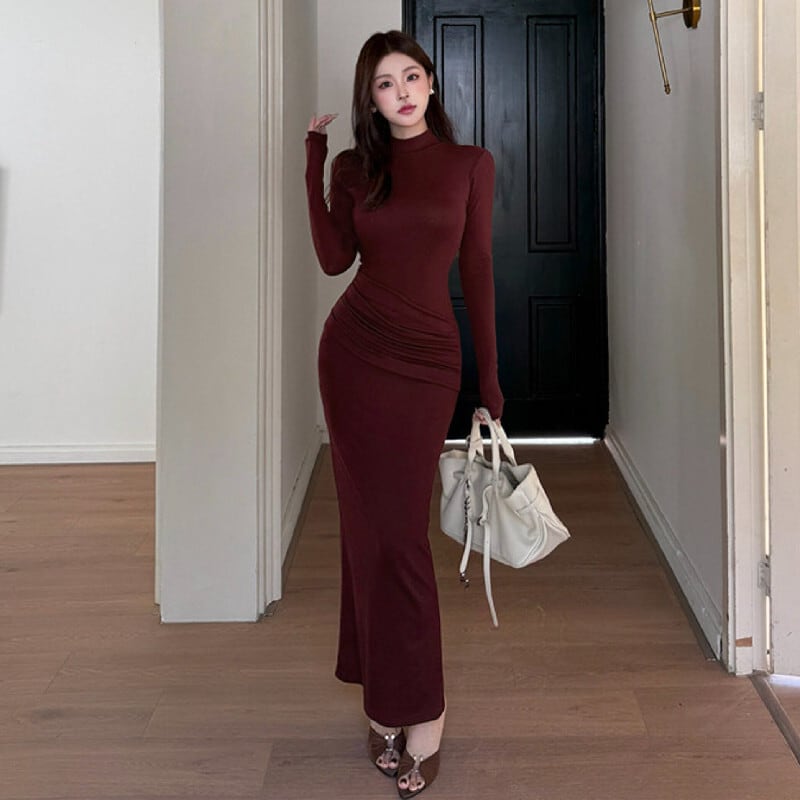ワンピース 無地 シルエット フェミニン バックスリット ワインレッド S M L