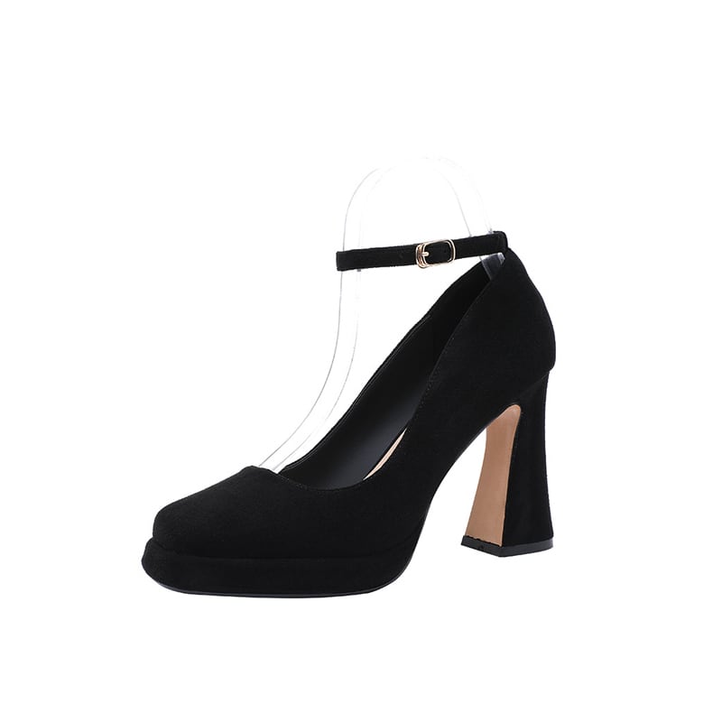 シューズ メリージェーンシューズ ストラップ プラットフォーム 太めヒール ブラック 9CM