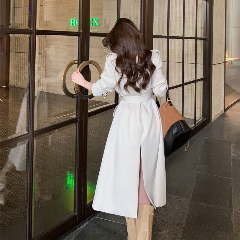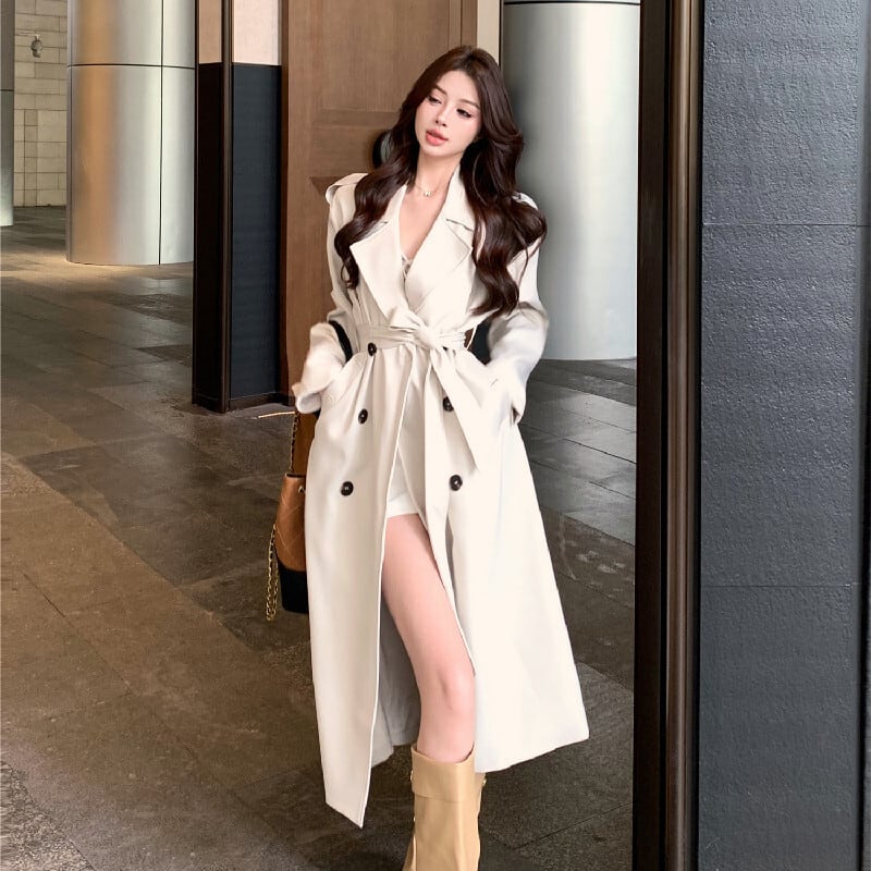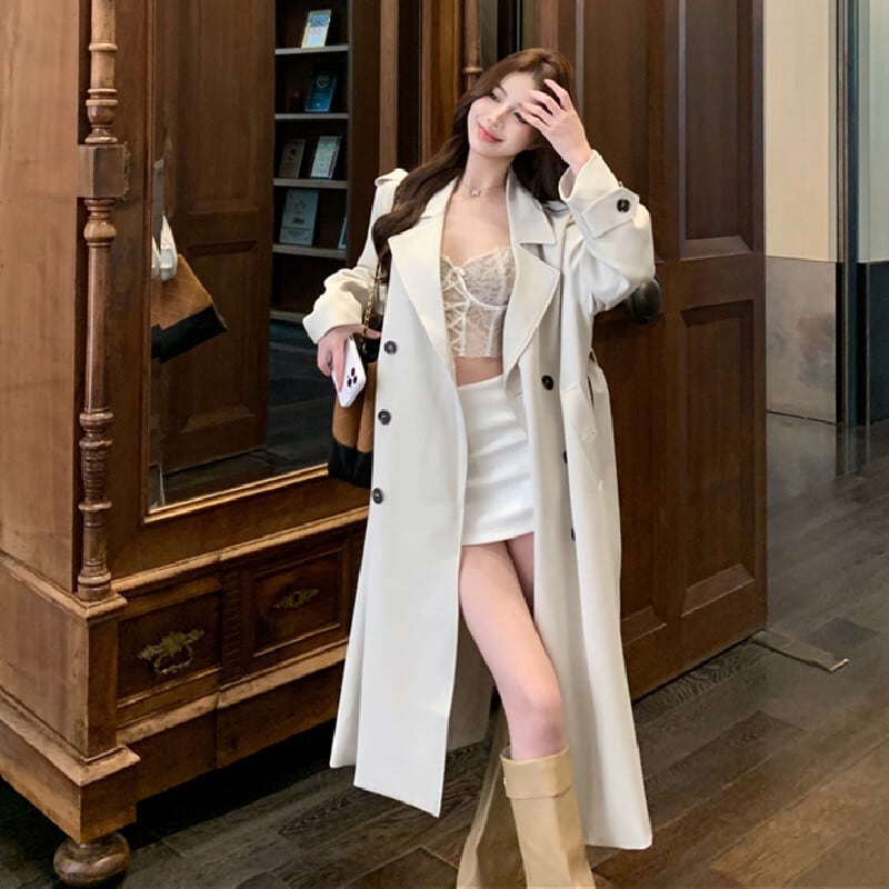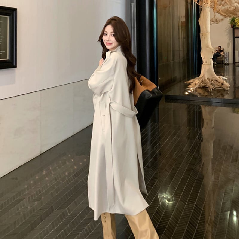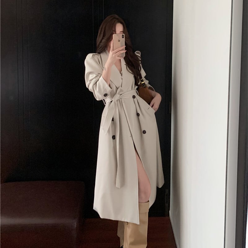 アウター トレンチコート ダブルボタン&ベルト付き 抜け感のある ロング丈 S M