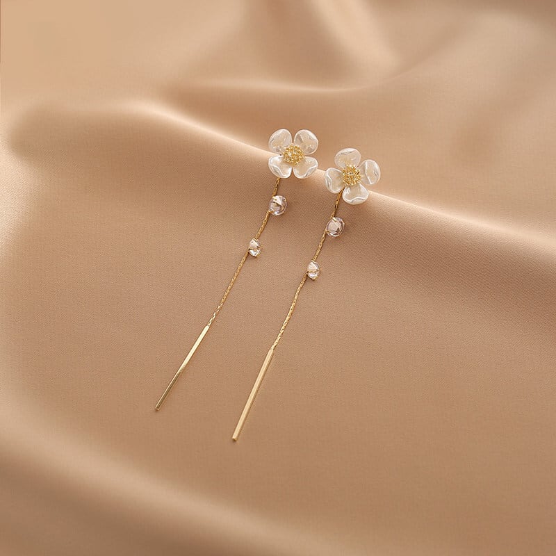 アクセサリー ピアス フラワー&タッセル 垂れる ゴールデン色