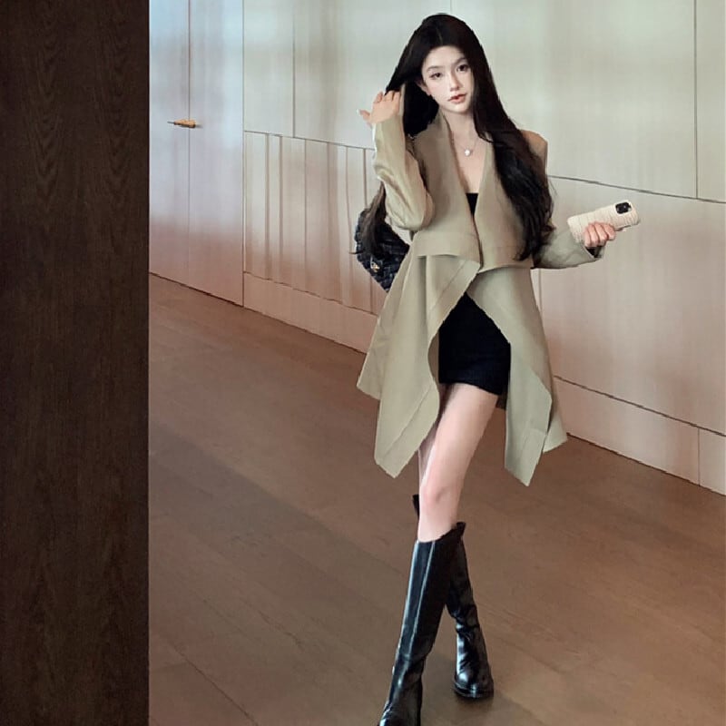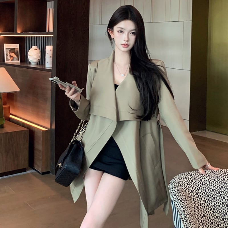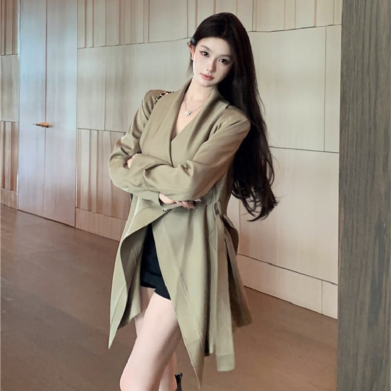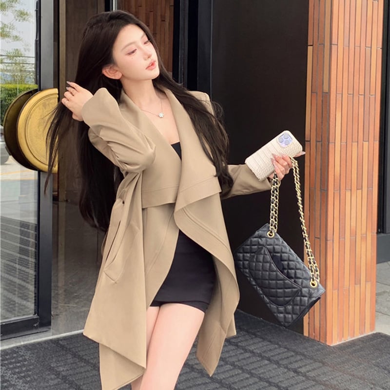 アウター トレンチコート ビッグラペル ミドル丈 抜け感 気質溢れる S M L
