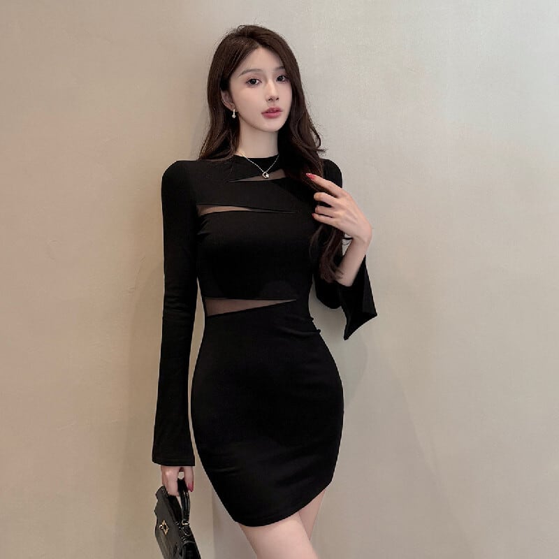 ワンピース セクシー 透け感 ミニ丈 ボディコンシャス ブラック S M L