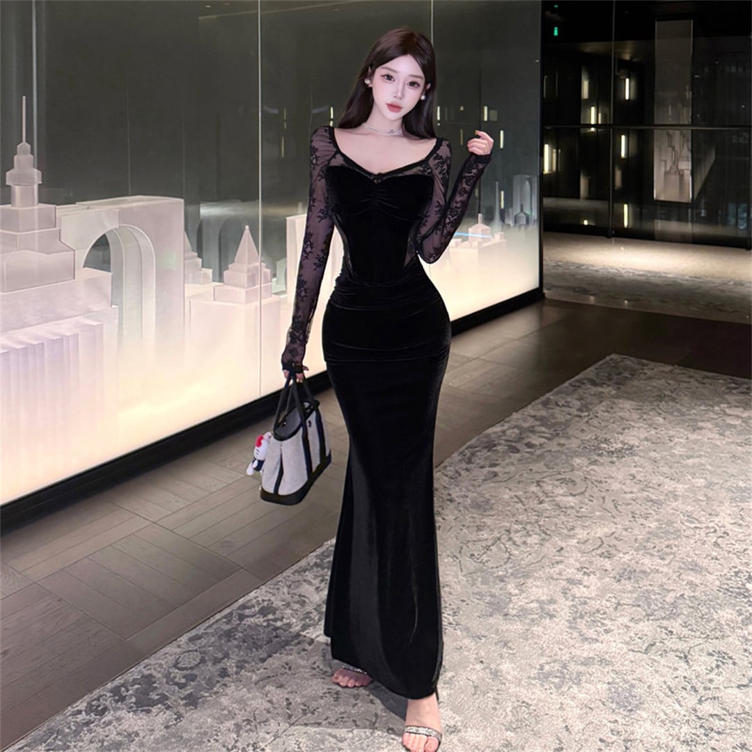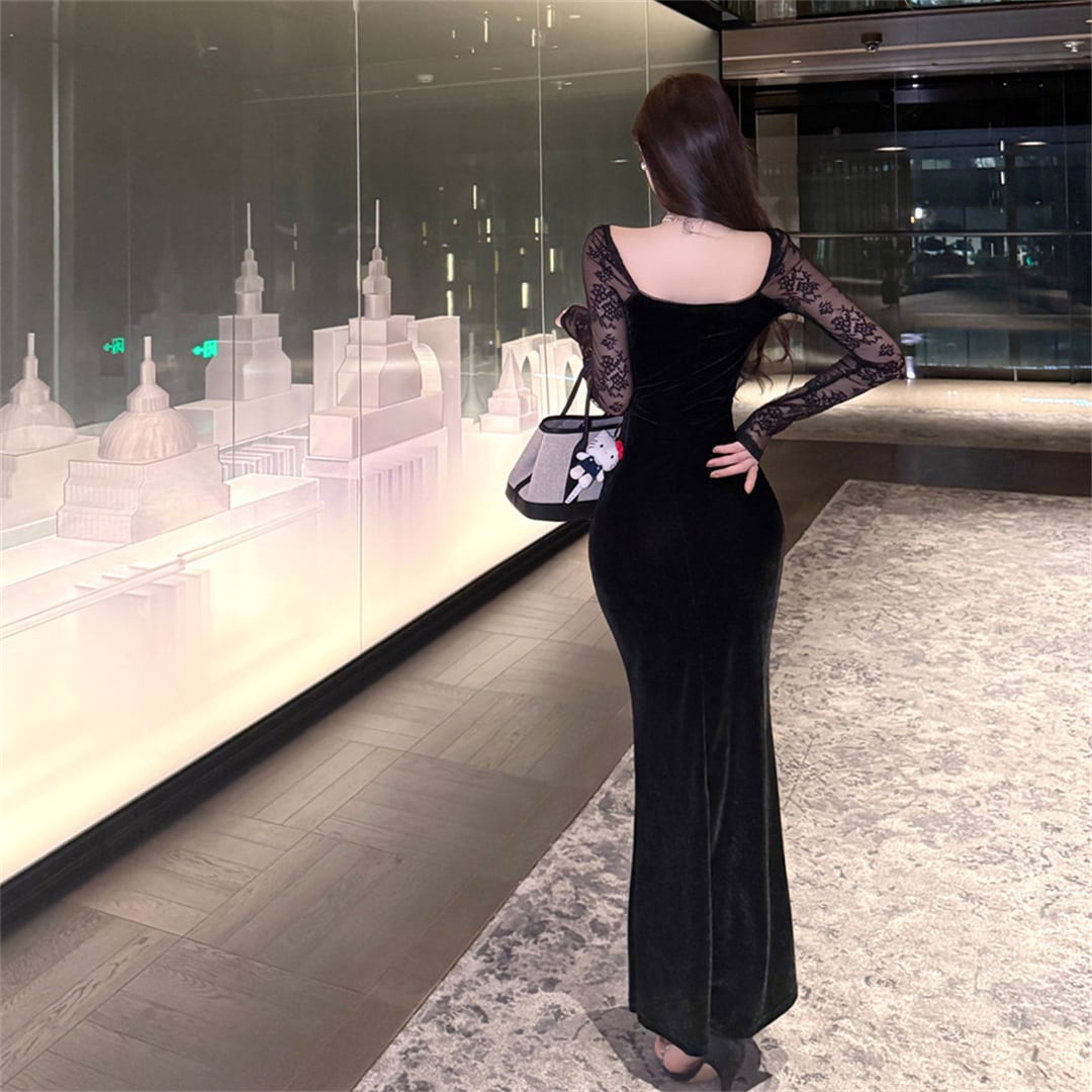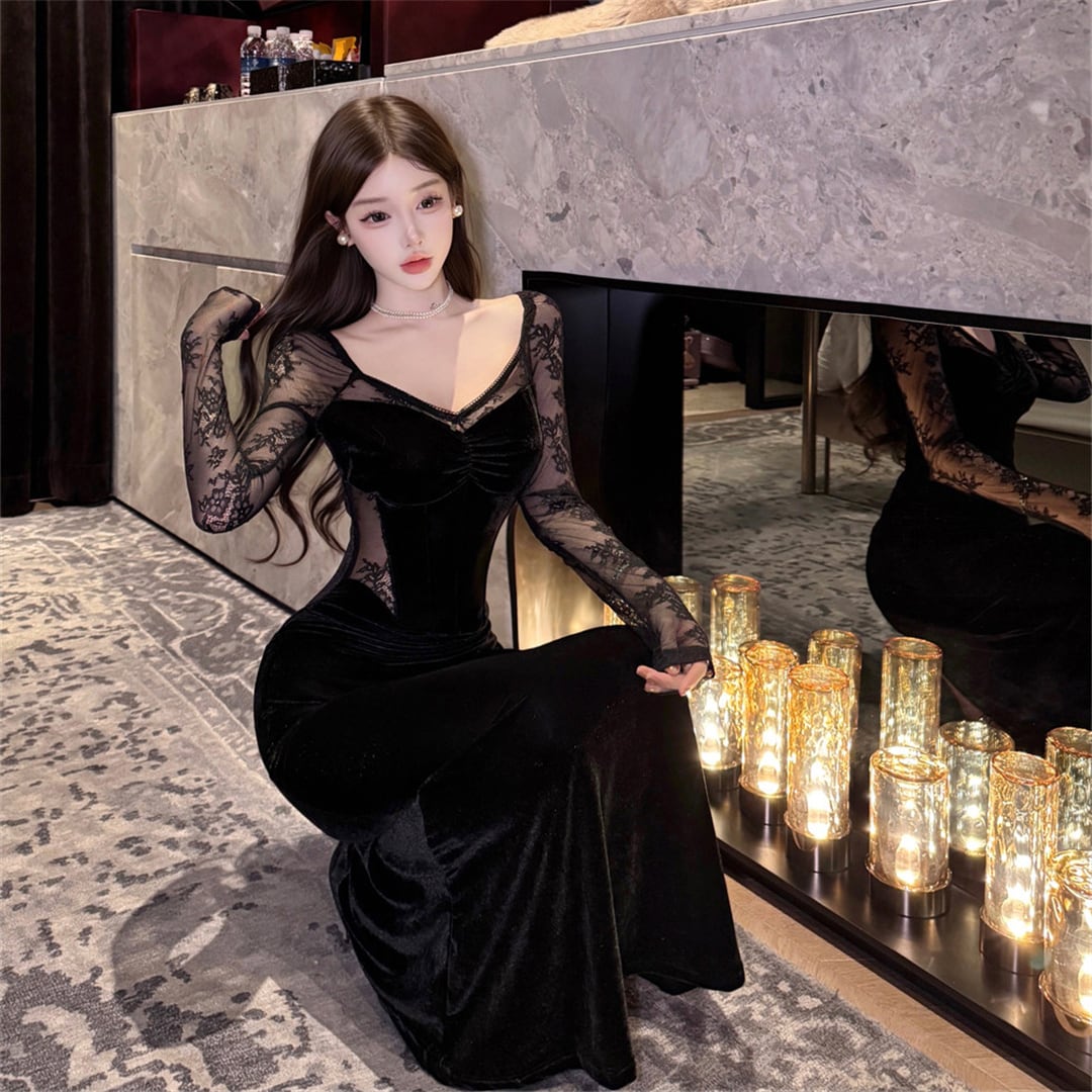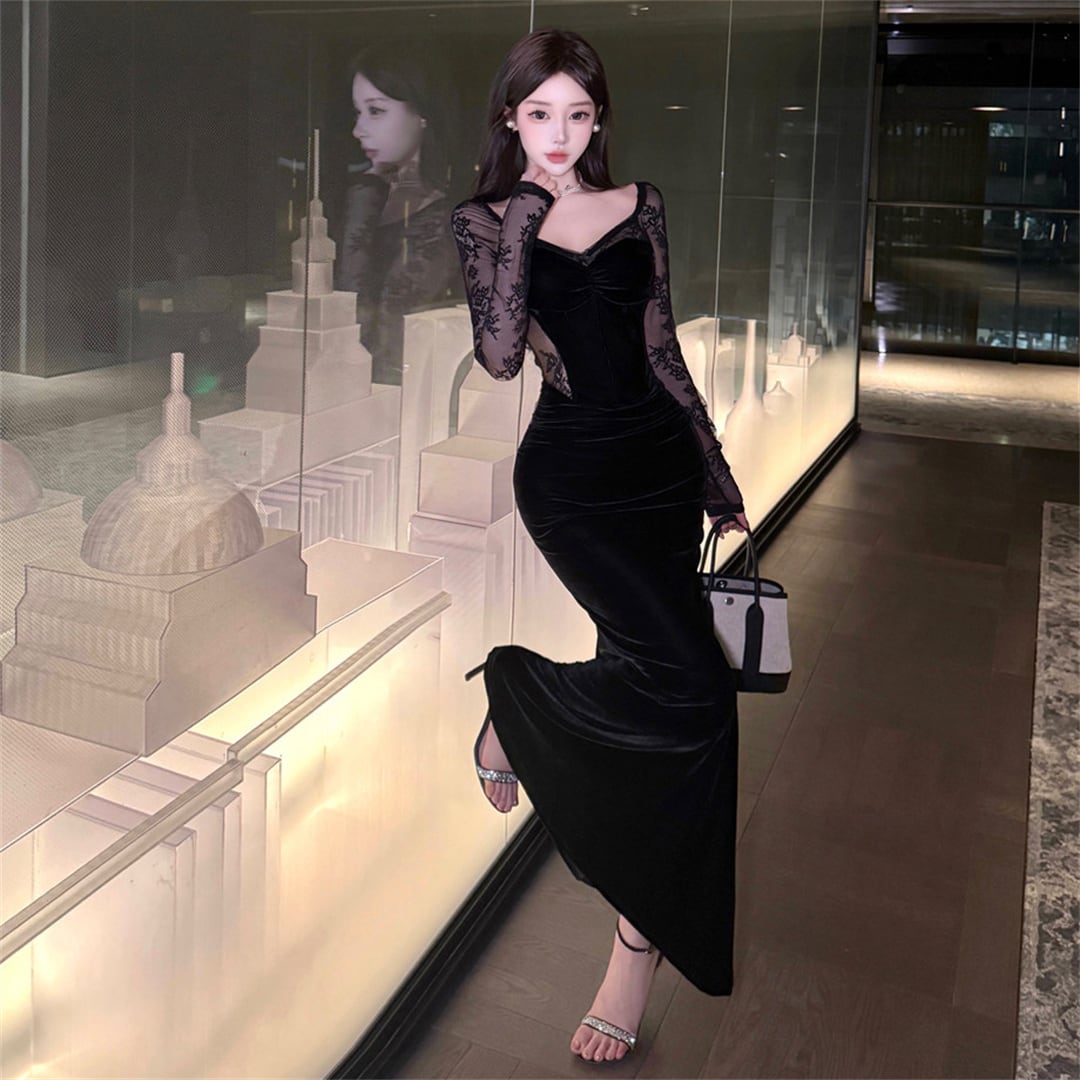 ワンピース ファッション 切り替え レース セクシー ブラック S M L
