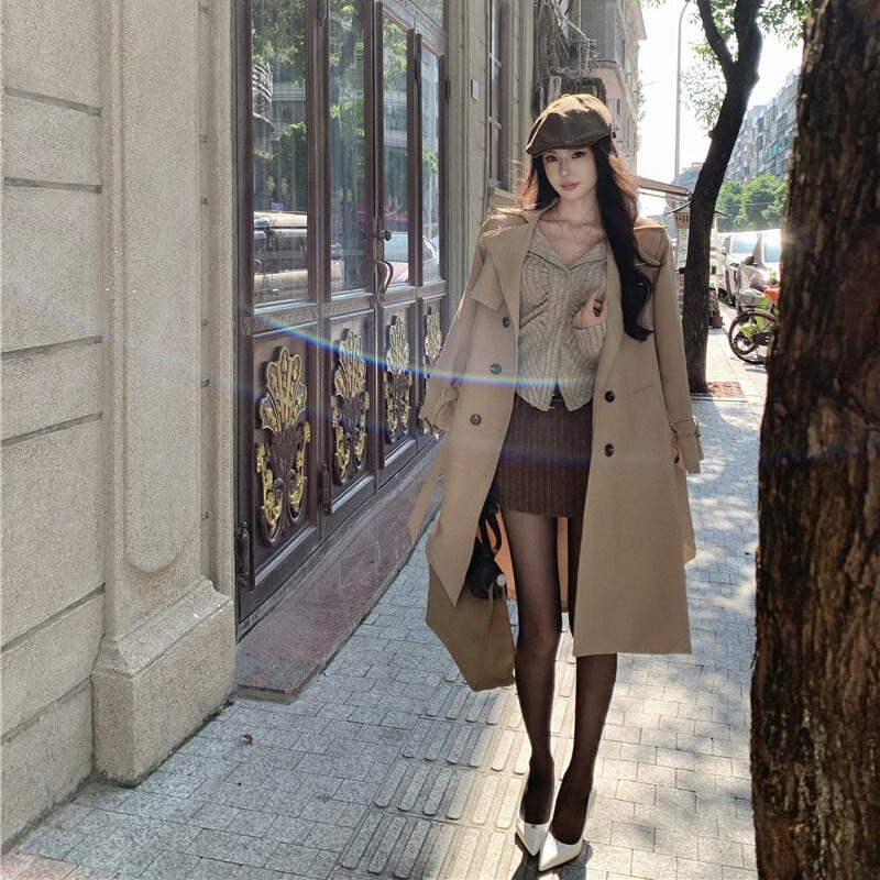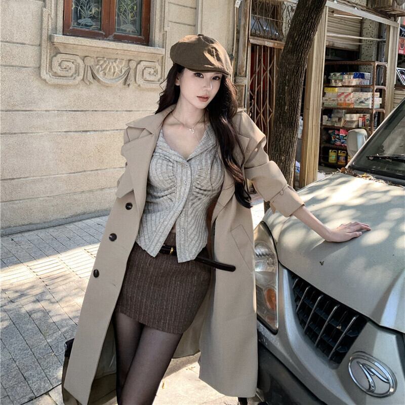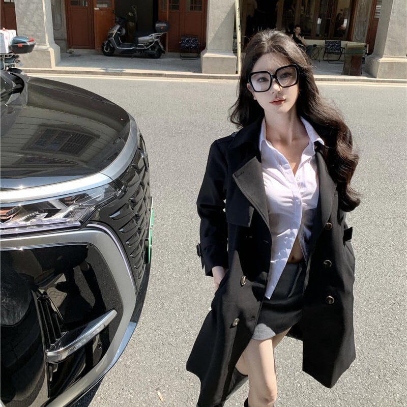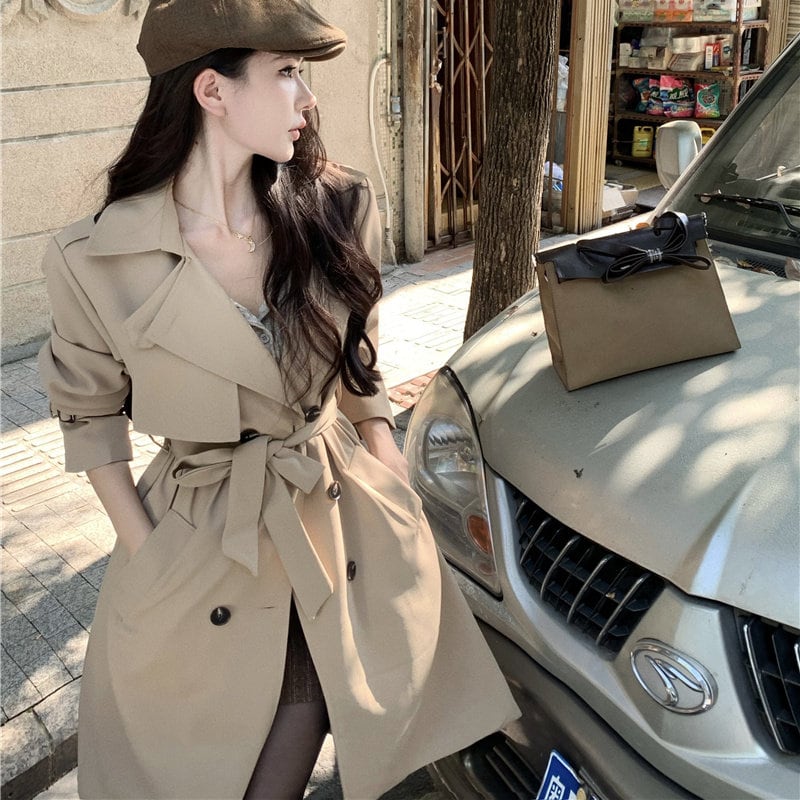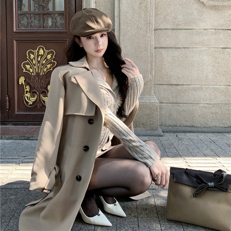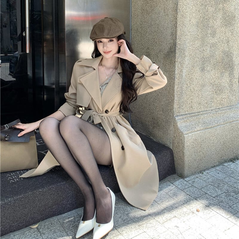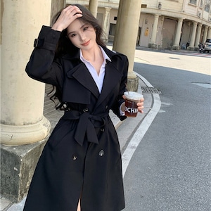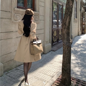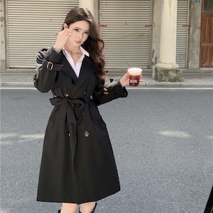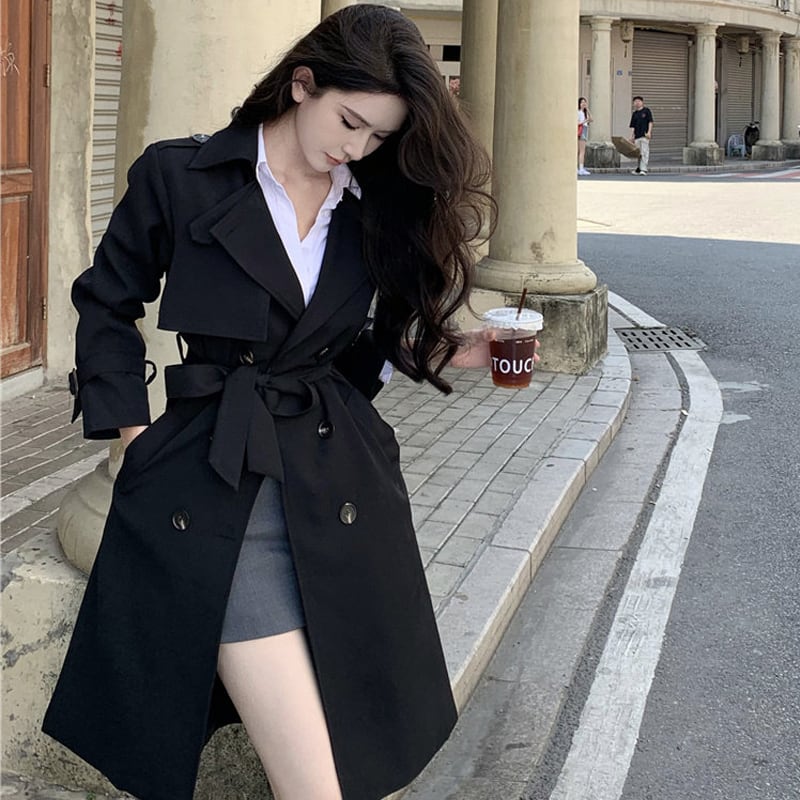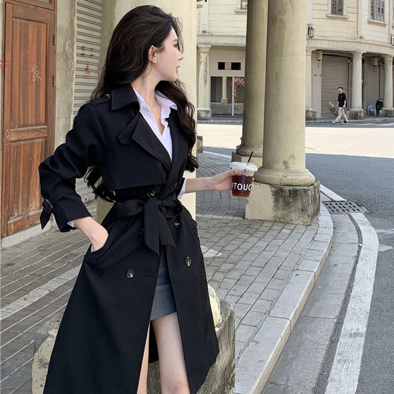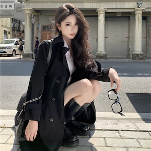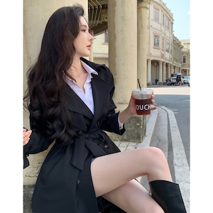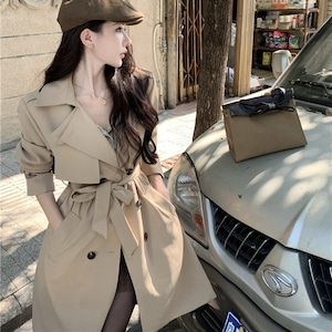 2colors アウター トレンチコート レトロ 視線集中 ベルト付き ライトブラウン ブラック S M L