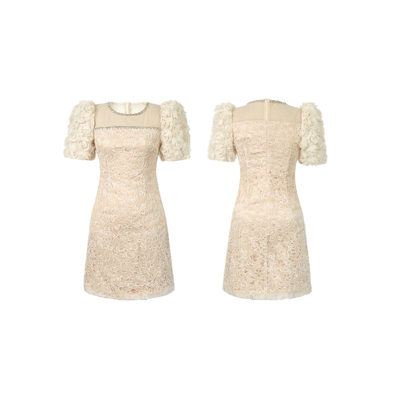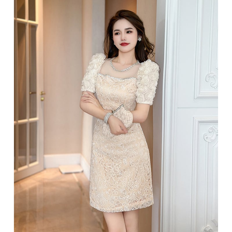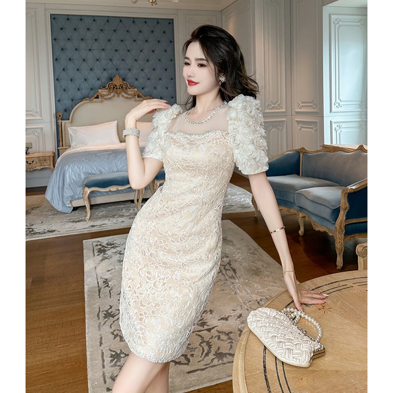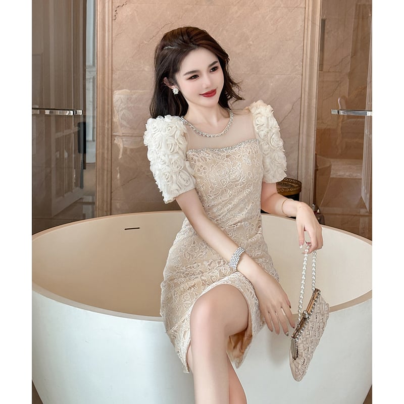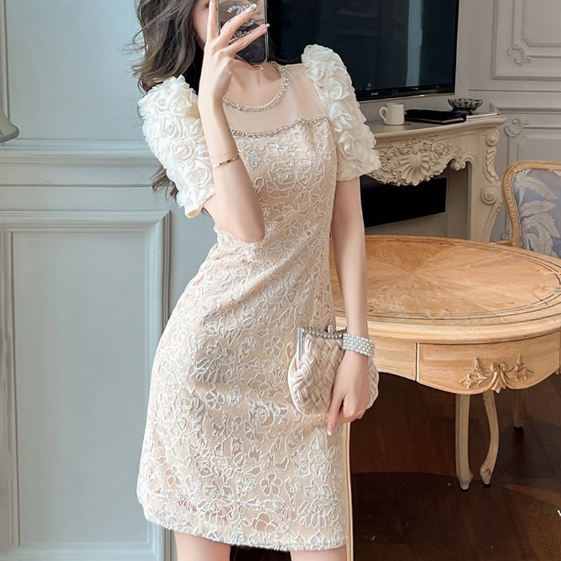 【夕暮薔薇シリーズ】ワンピース レース 膝上 おしゃれ 着まわし抜群 S M L