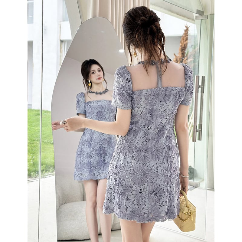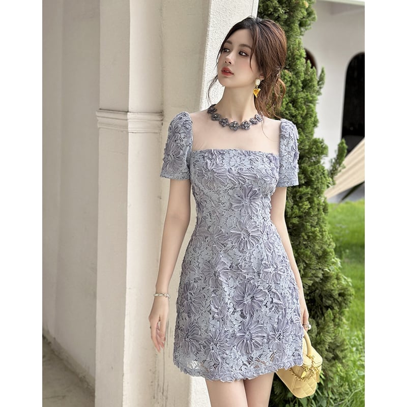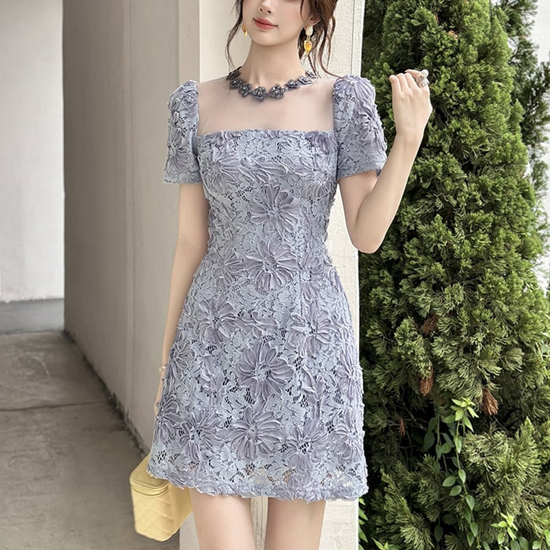 【夕暮薔薇シリーズ】ワンピース レース 透け感 ウエストマーク 美人度アップ S M L XL 2XL