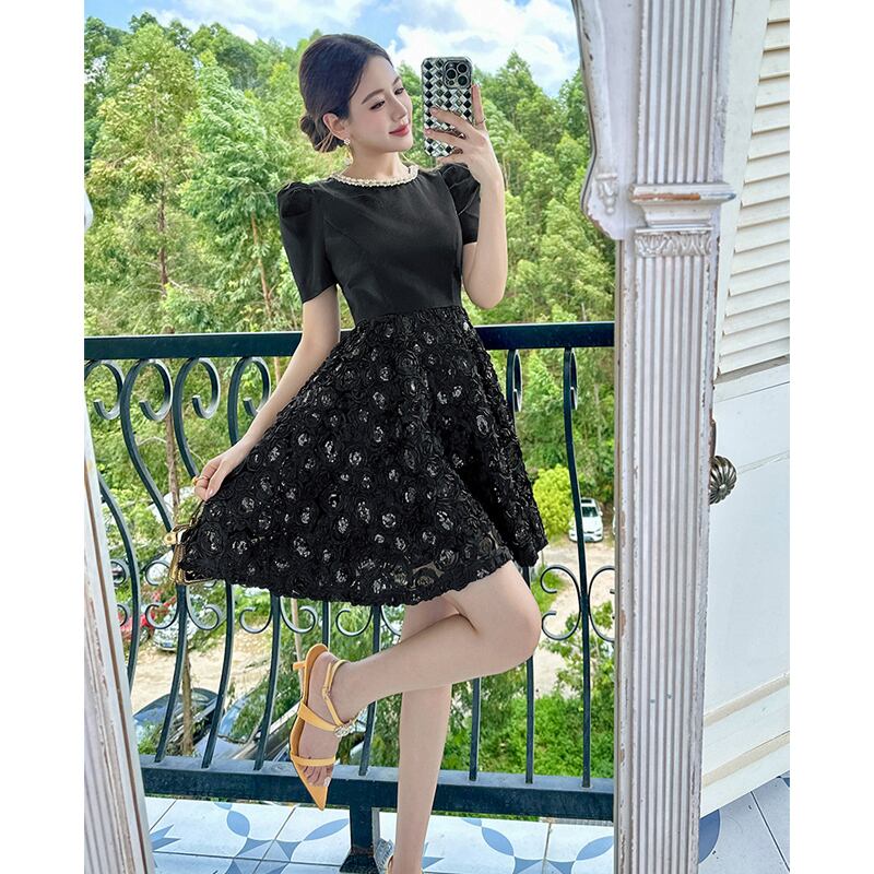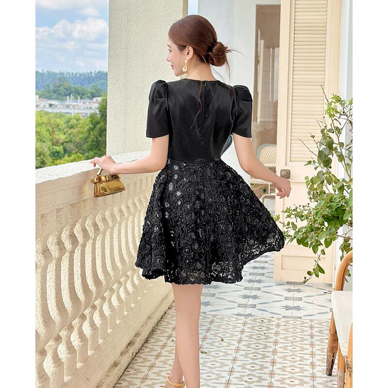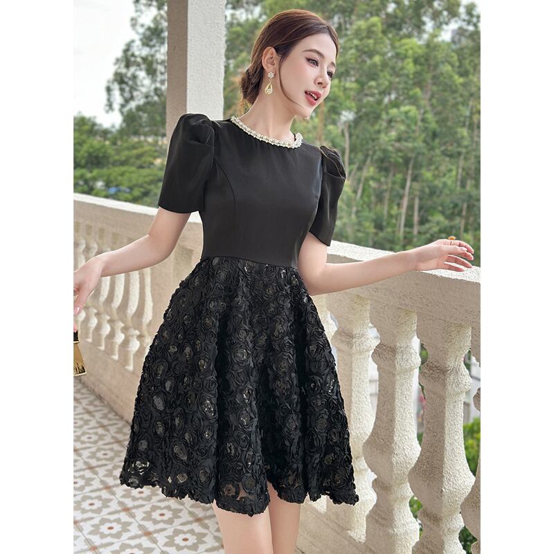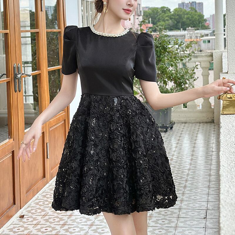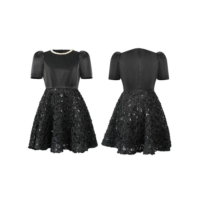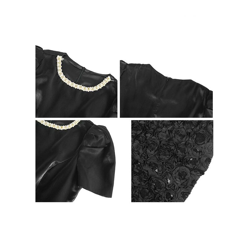 【夕暮薔薇シリーズ】ワンピース ラウンドネック スパンコール パーティー ブラック S M L XL 2XL