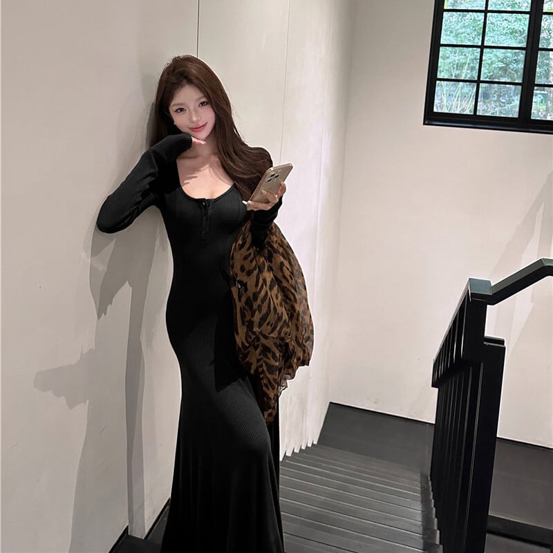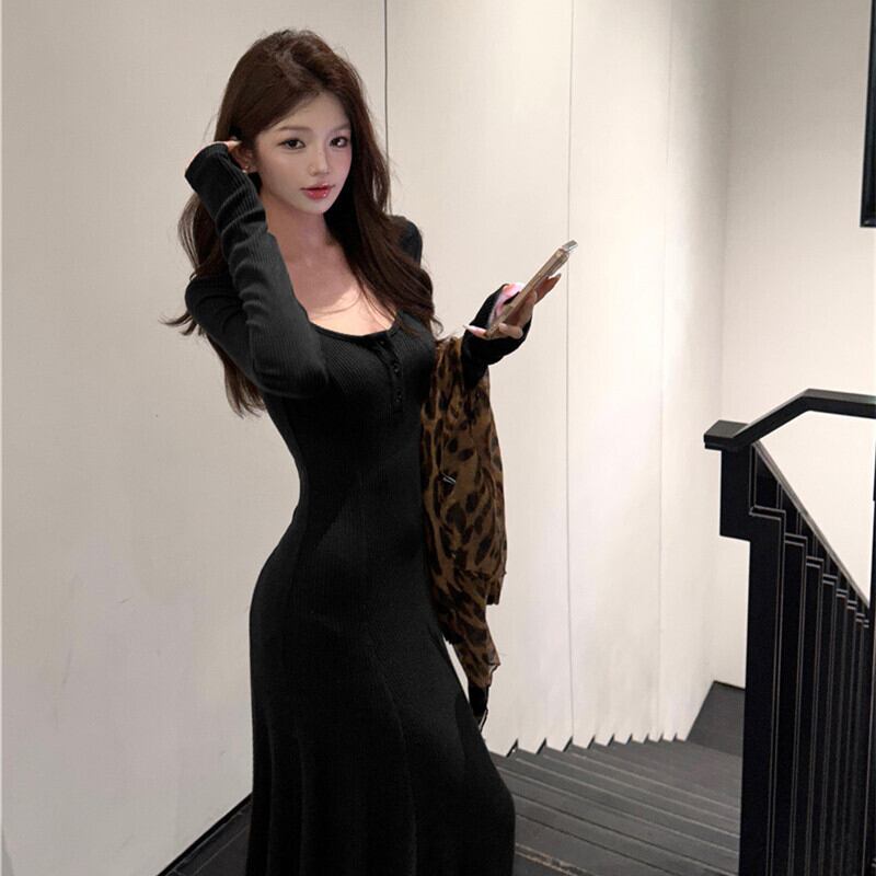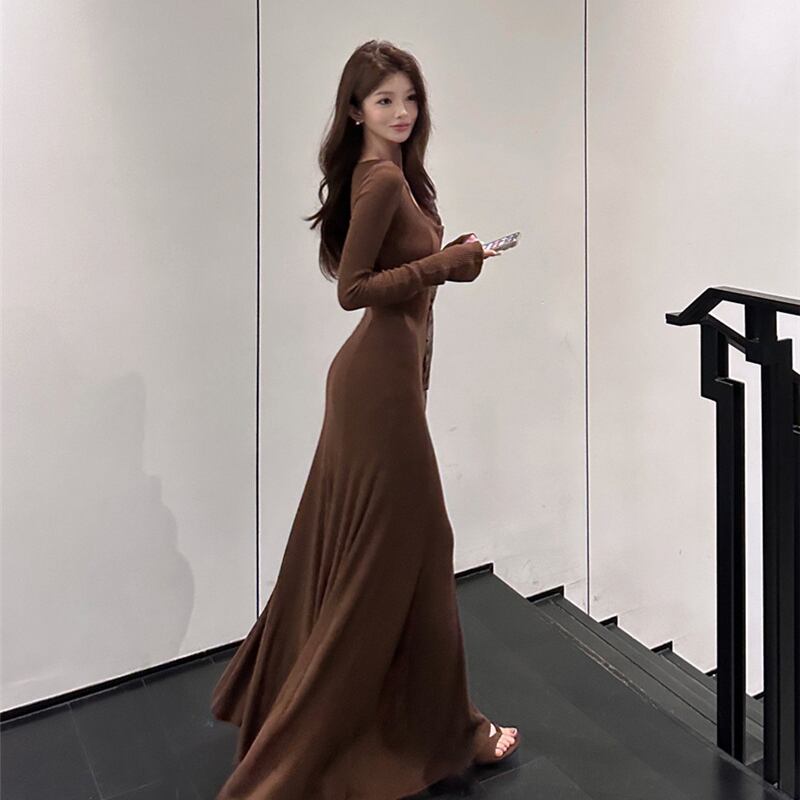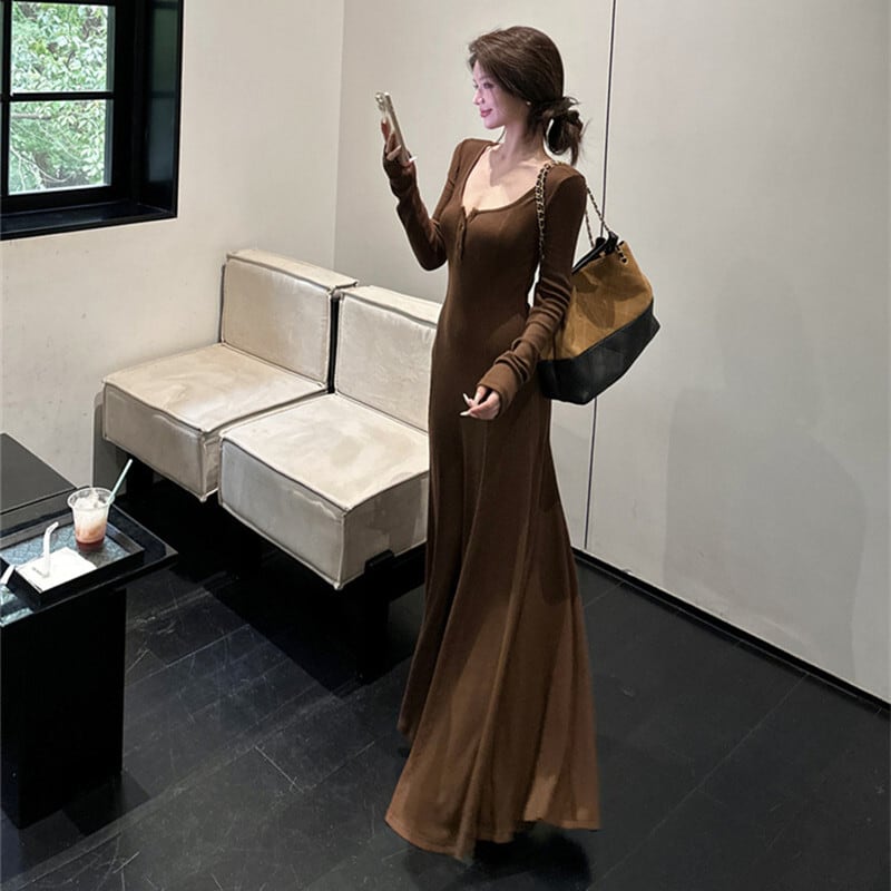 2colors ワンピース シンプル 無地 シルエット コーヒー色 ブラック