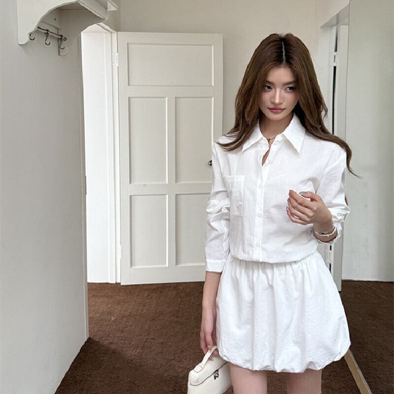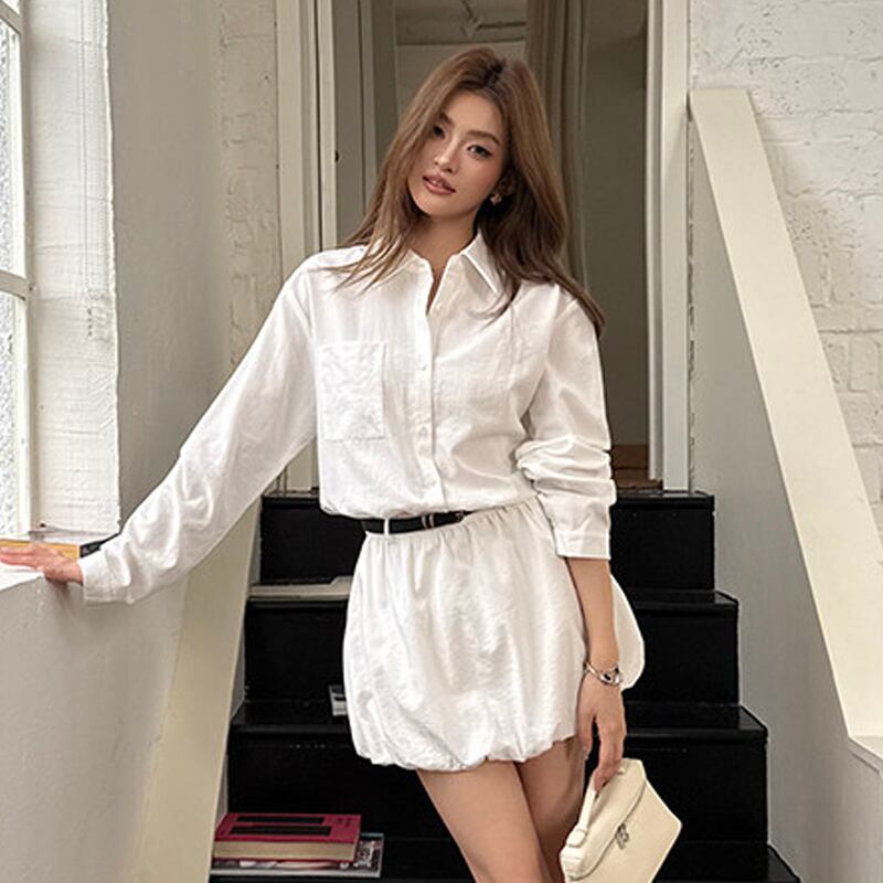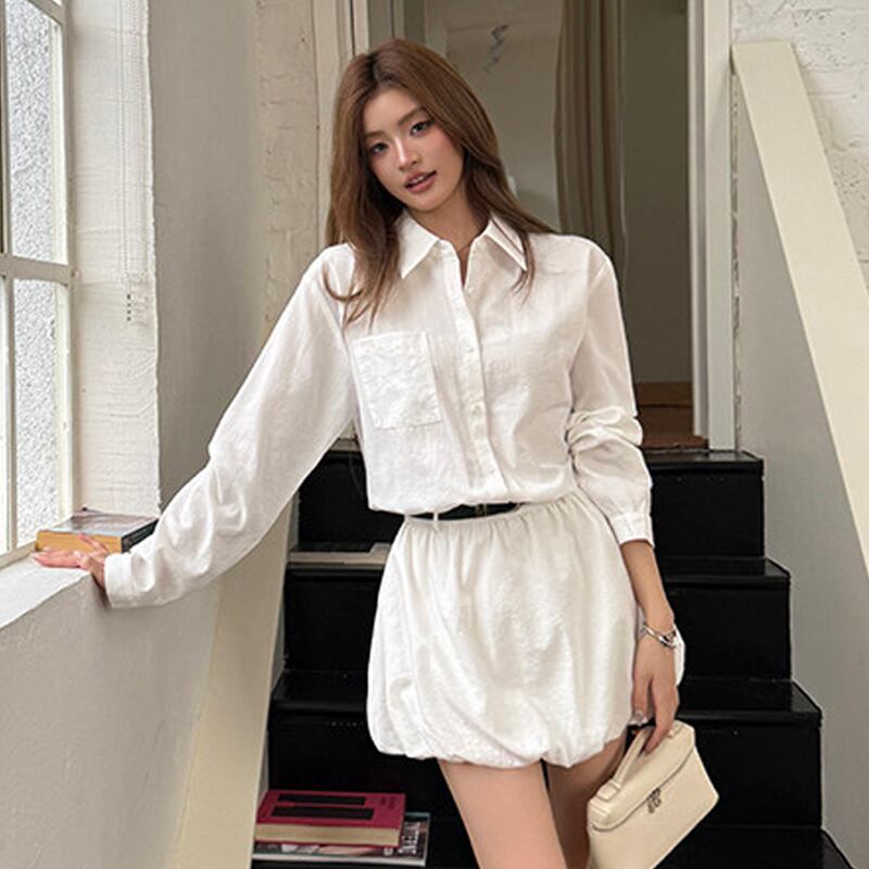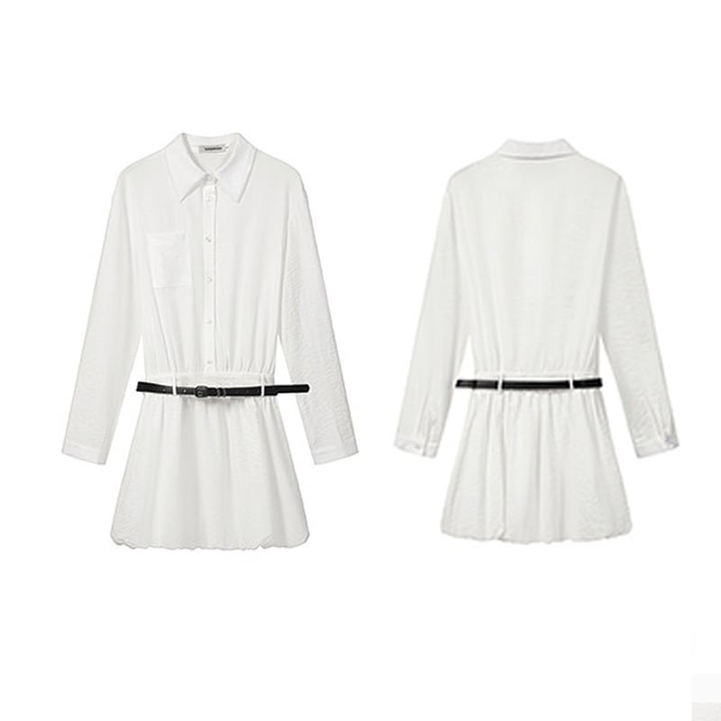 シャツワンピース 長袖 シンプル チューリップワンピース ホワイト S M L