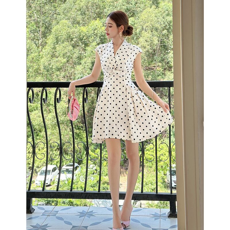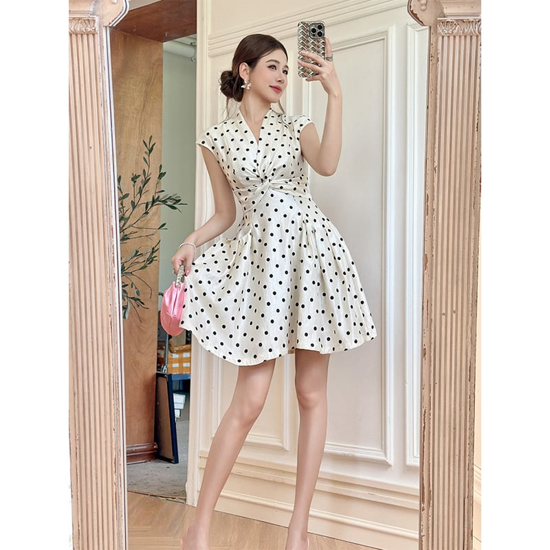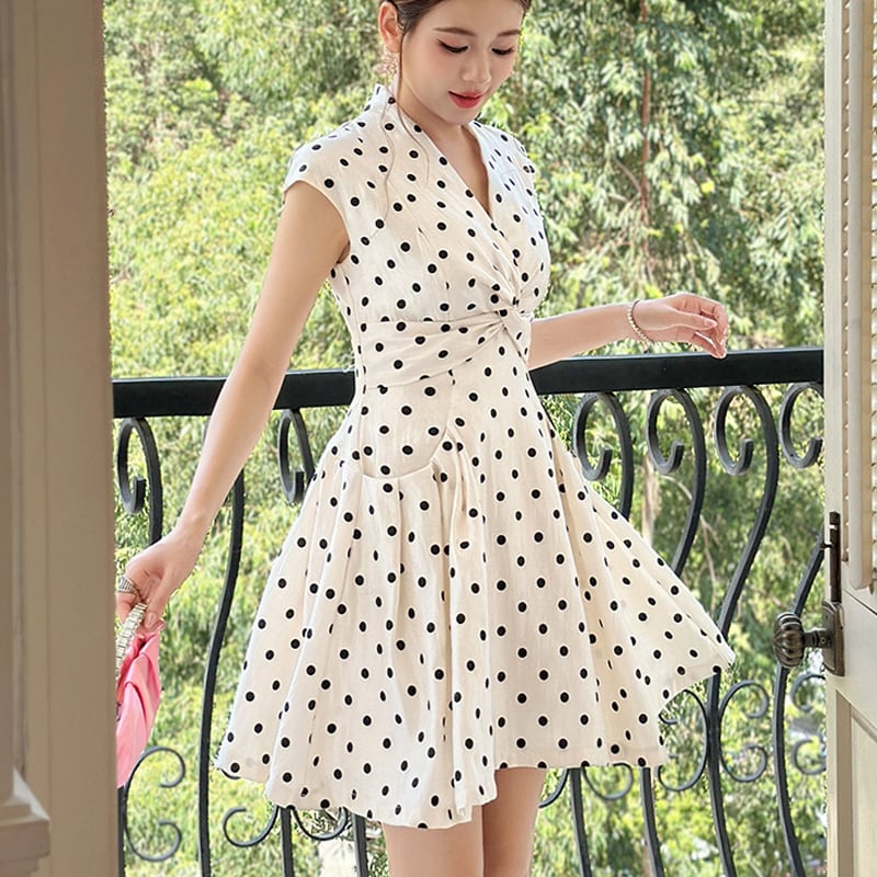 【夕暮薔薇シリーズ】ワンピース 水玉 フィットウエスト Aライン ドット柄 S M L XL