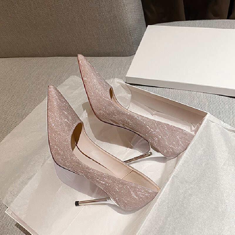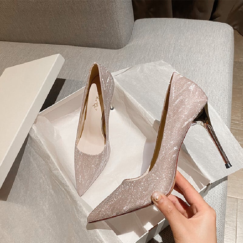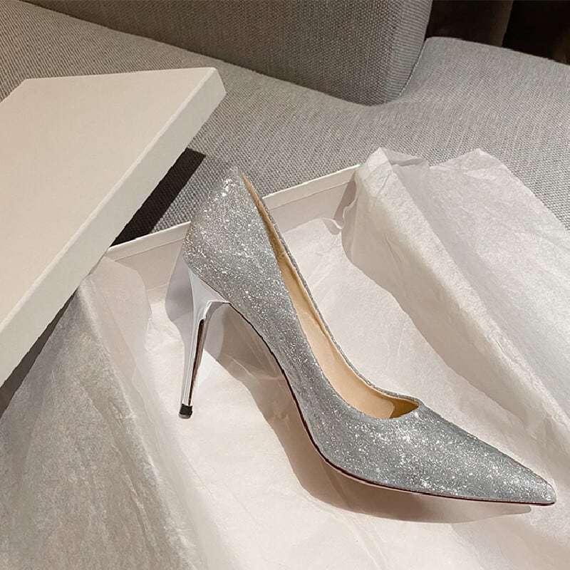 2colors シューズ パンプス キラキラ 飲み会 シャンパン色 シルバー色 7CM/9CM