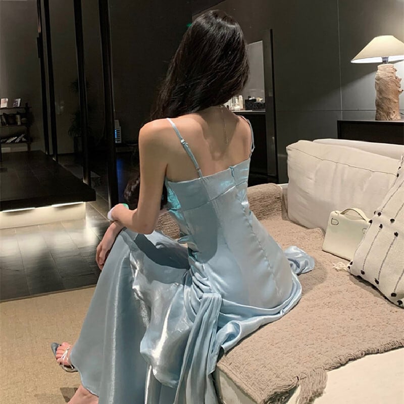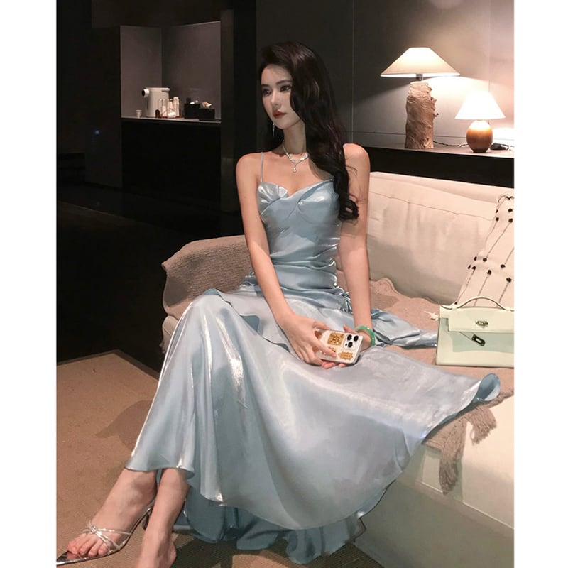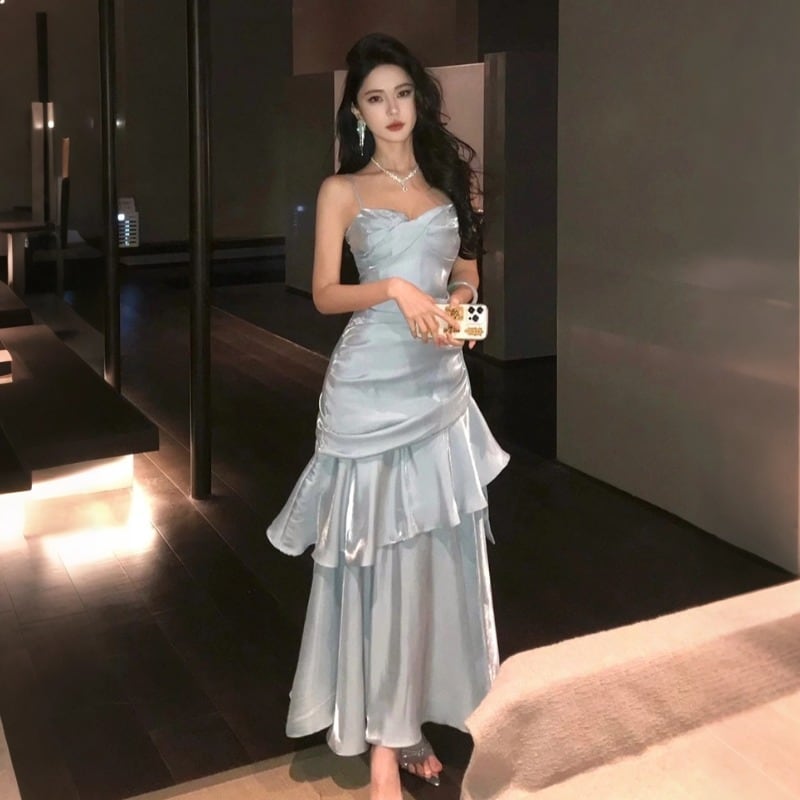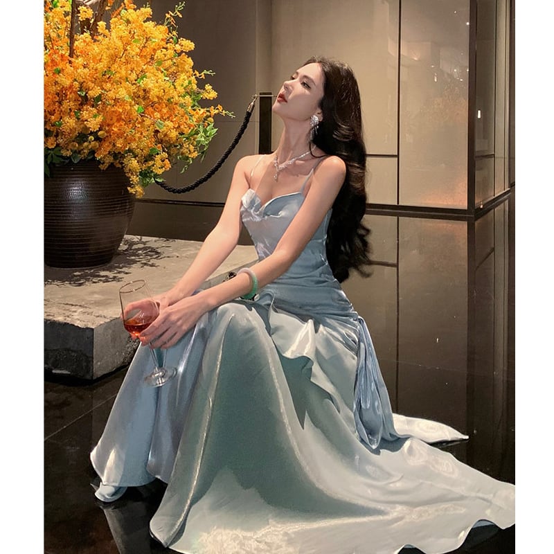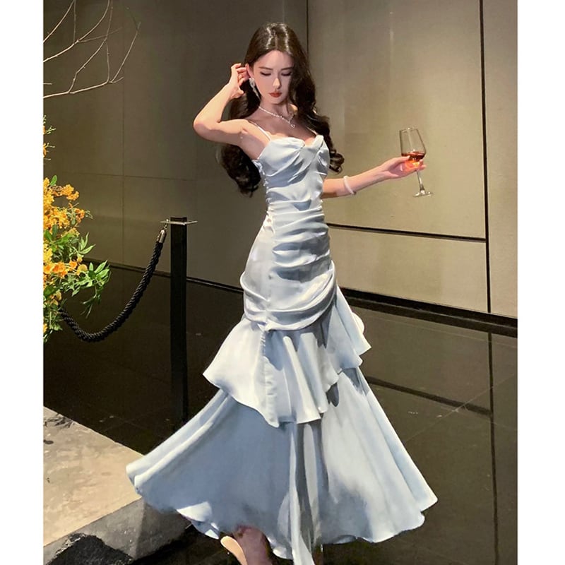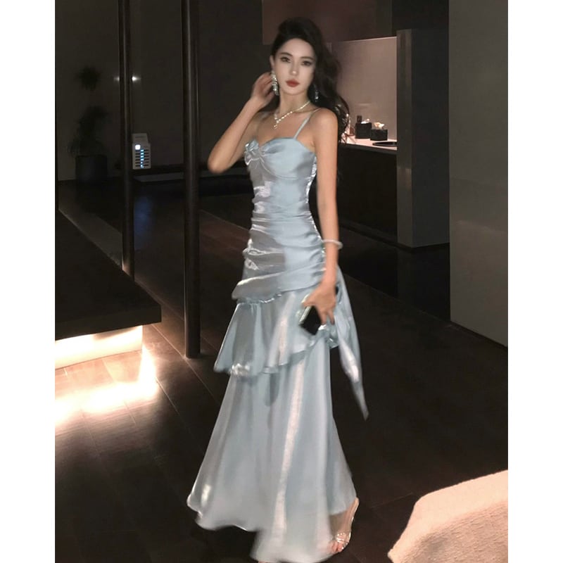 キャミソールドレス マーメイド風 目を奪われる ライトブルー S M L