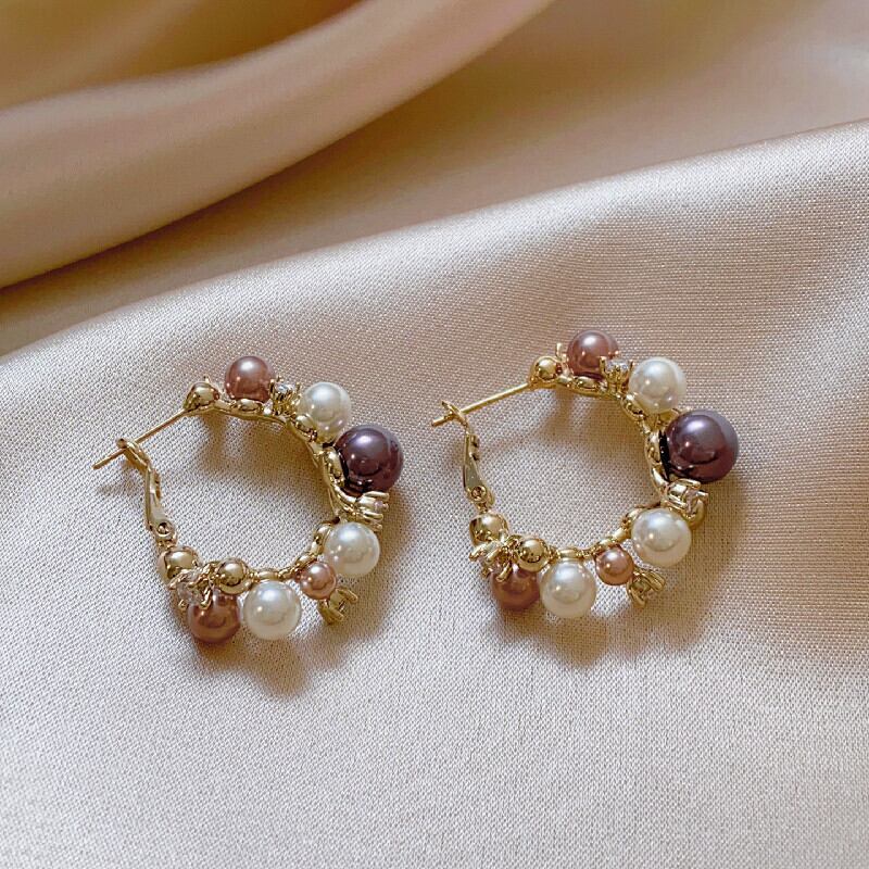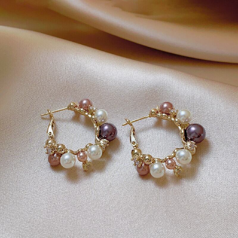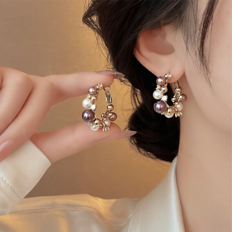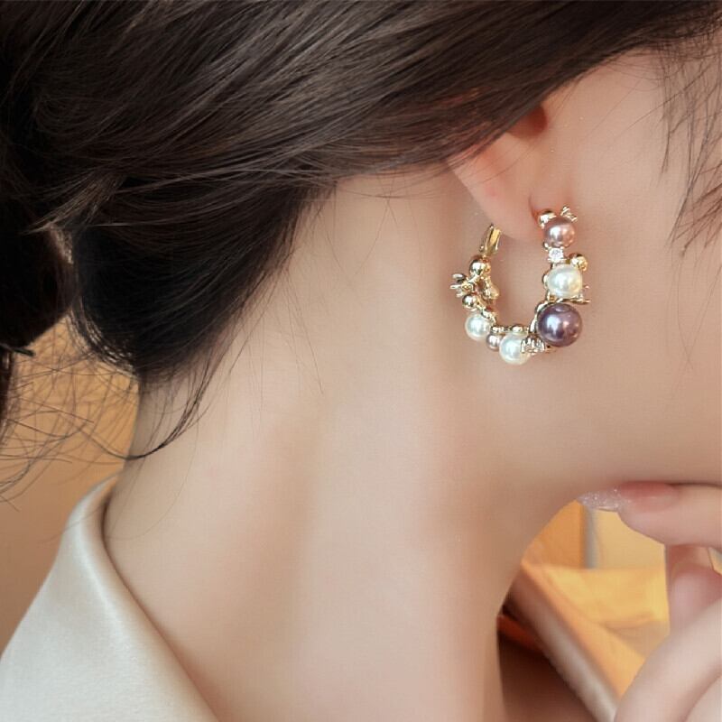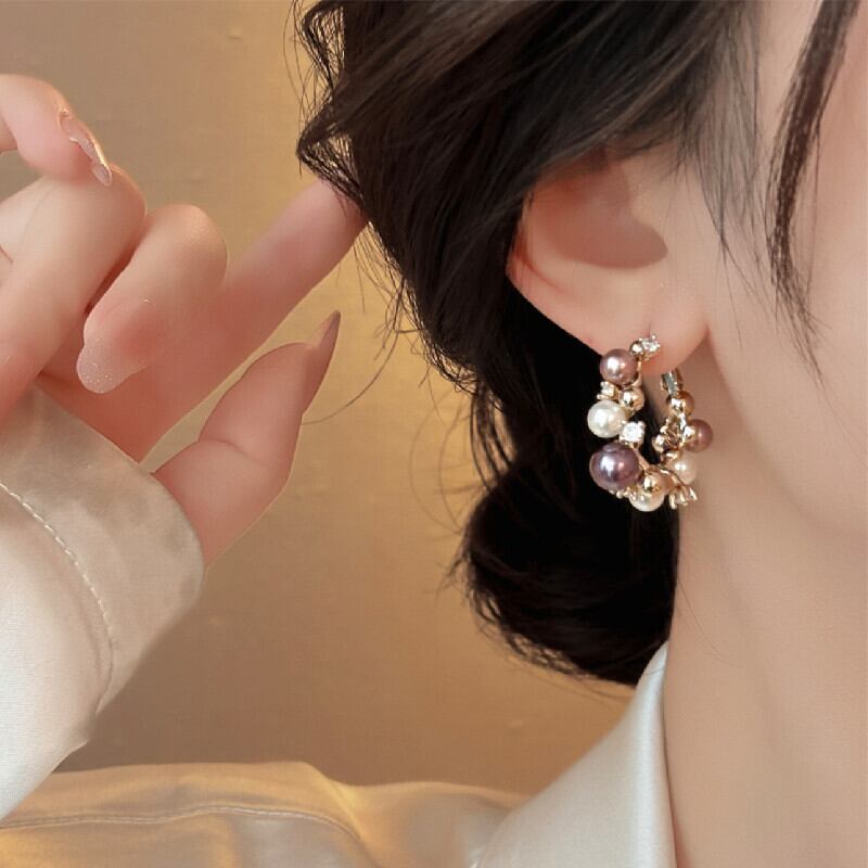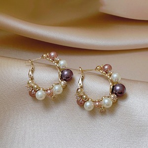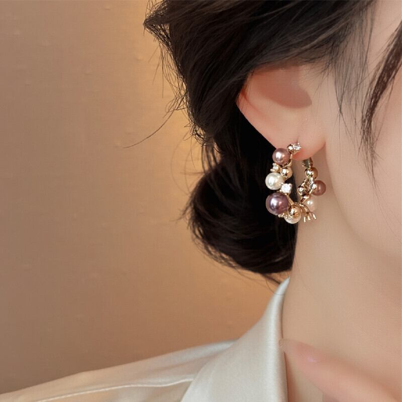 アクセサリー ピアス 高見え 個性派 小ぶり 多色パール×ジルコニア