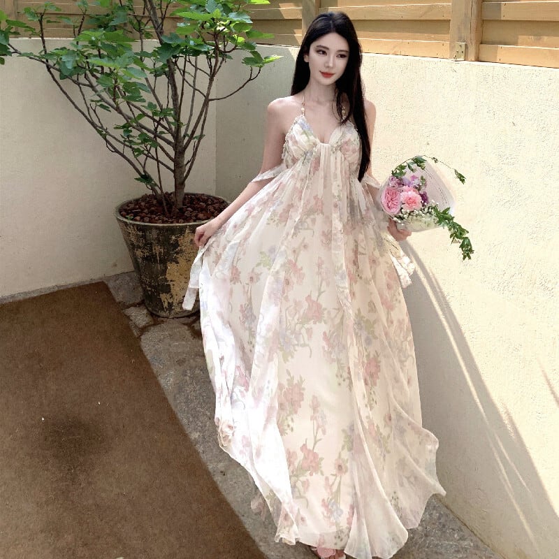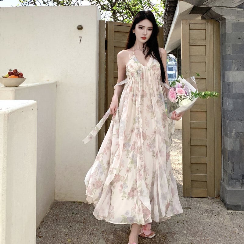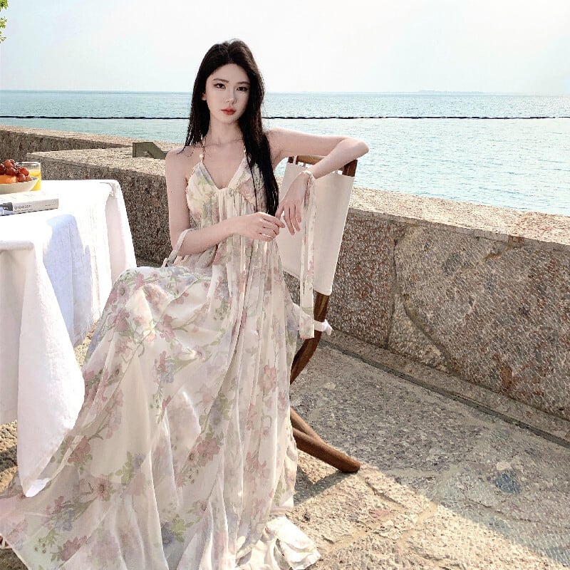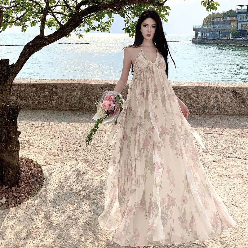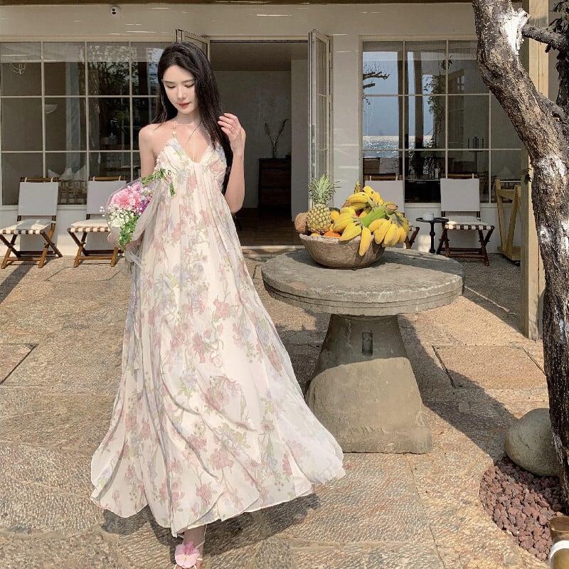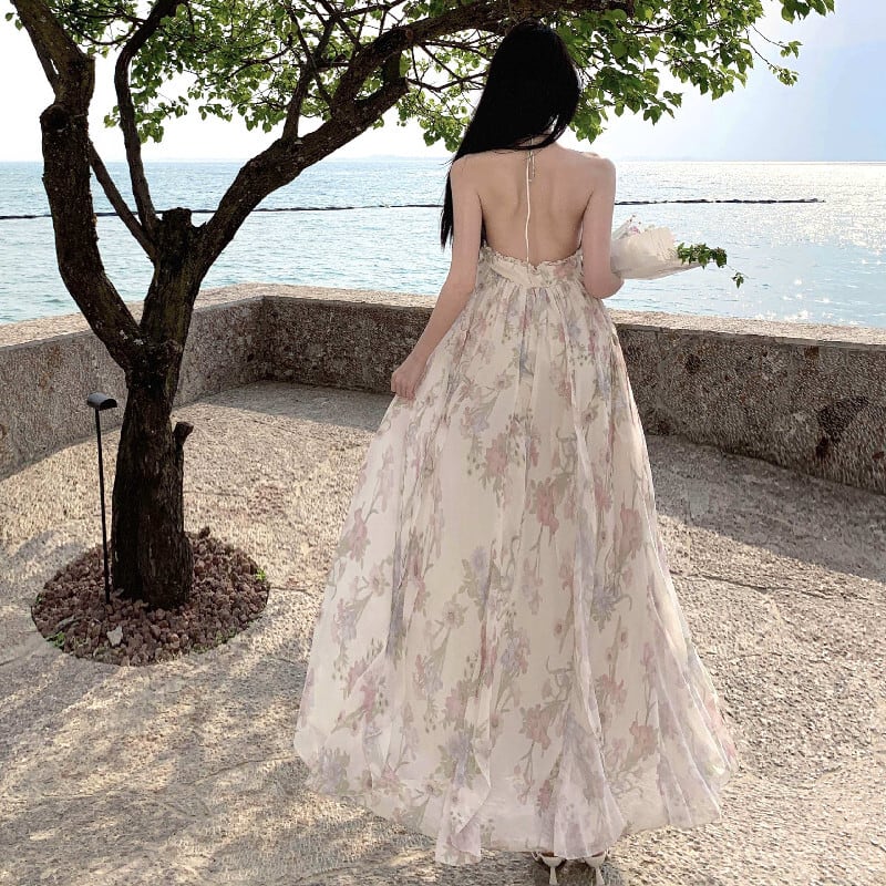 【SummerVacationシリーズ】ワンピース 花柄 バックレス 女っぽさが漂う S M L