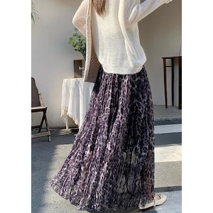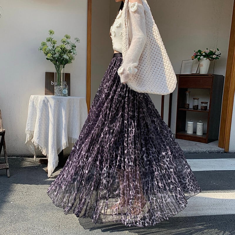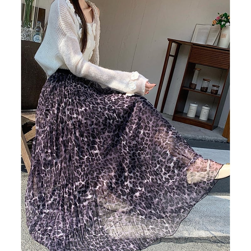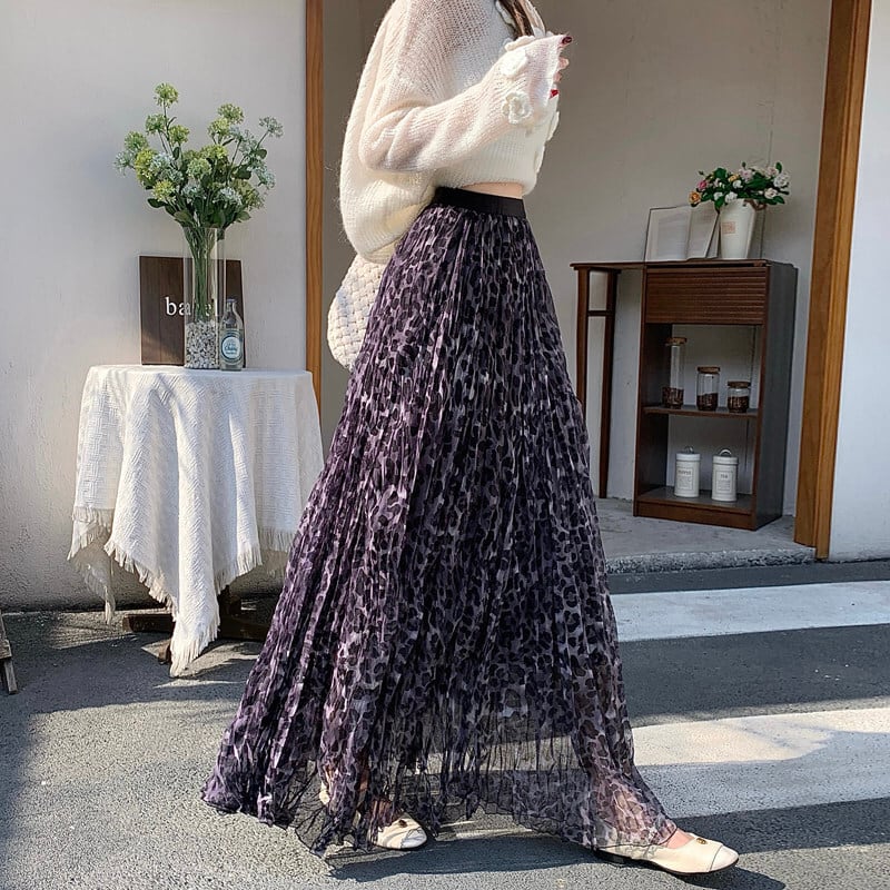 ボトムス スカート ハイウエスト カジュアル ロングスカート ヒョウ柄 メッシュ