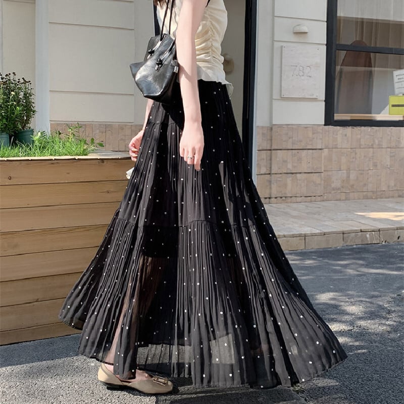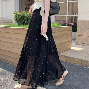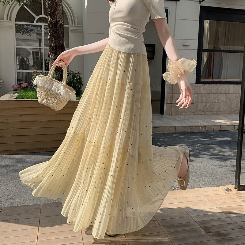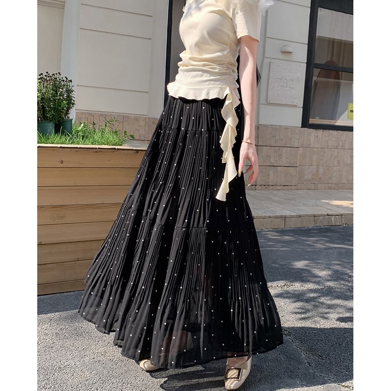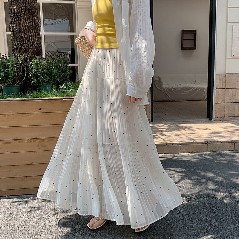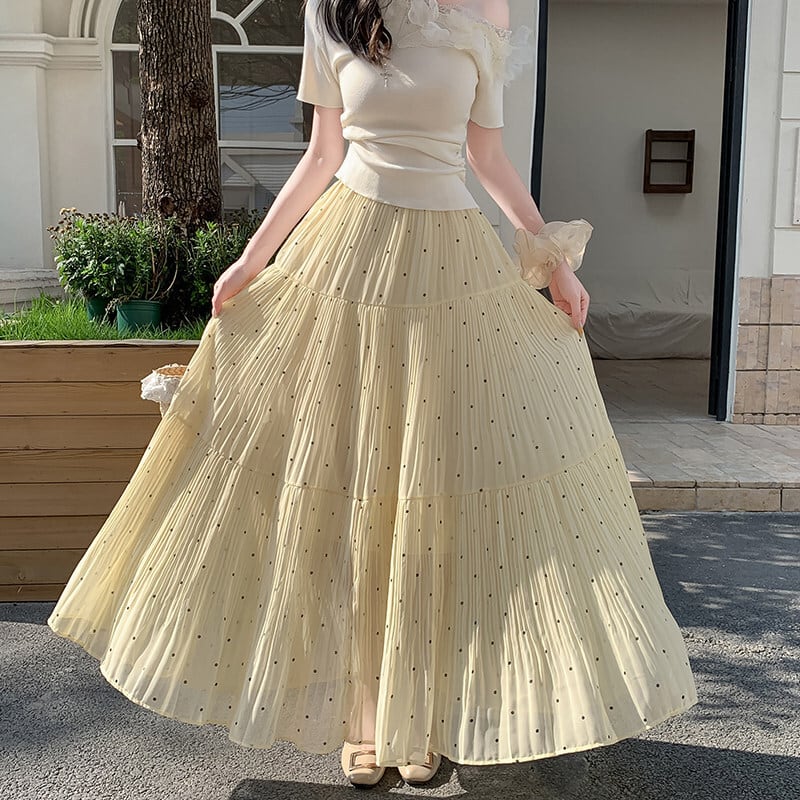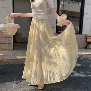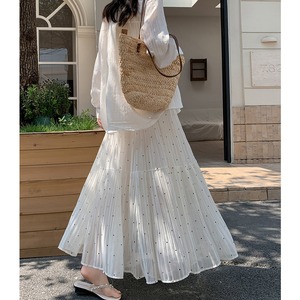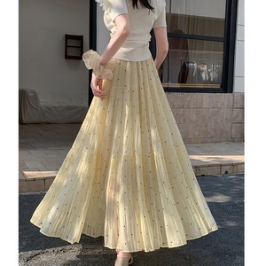 3colors ボトムス スカート ドット柄 落ち感 イエロー ホワイト ブラック